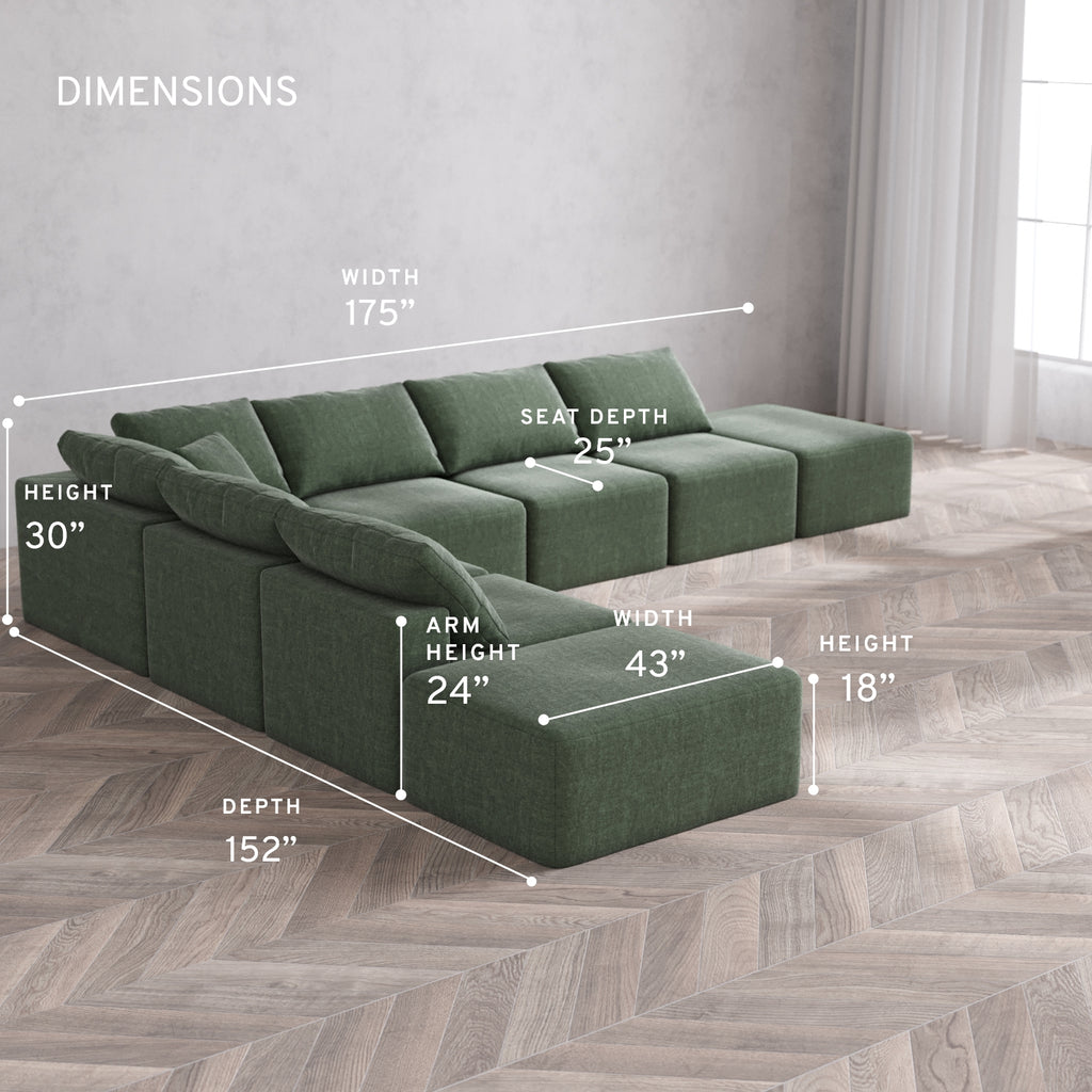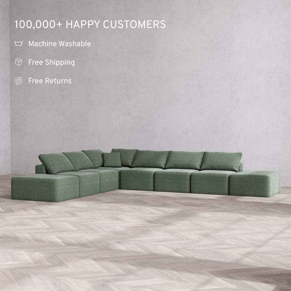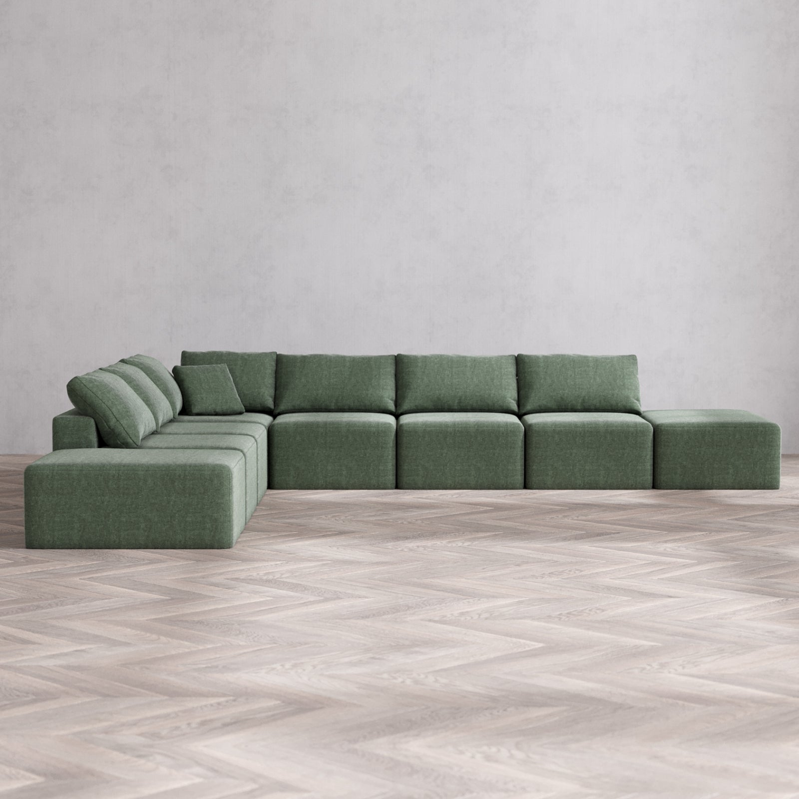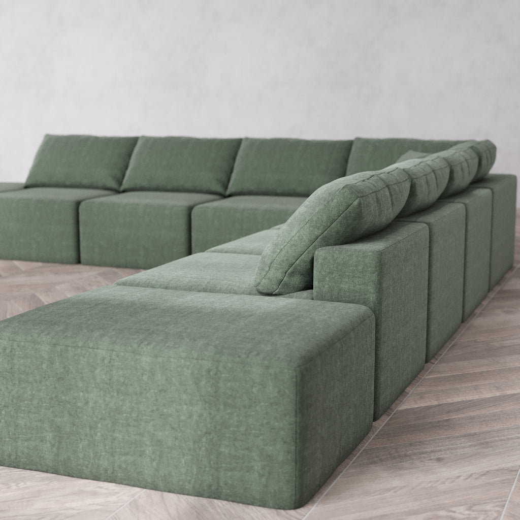 Modular Washable 8-Seater Open-Ends Corner Sectional Cloud Sofa | Heirloom Velvet in Sage