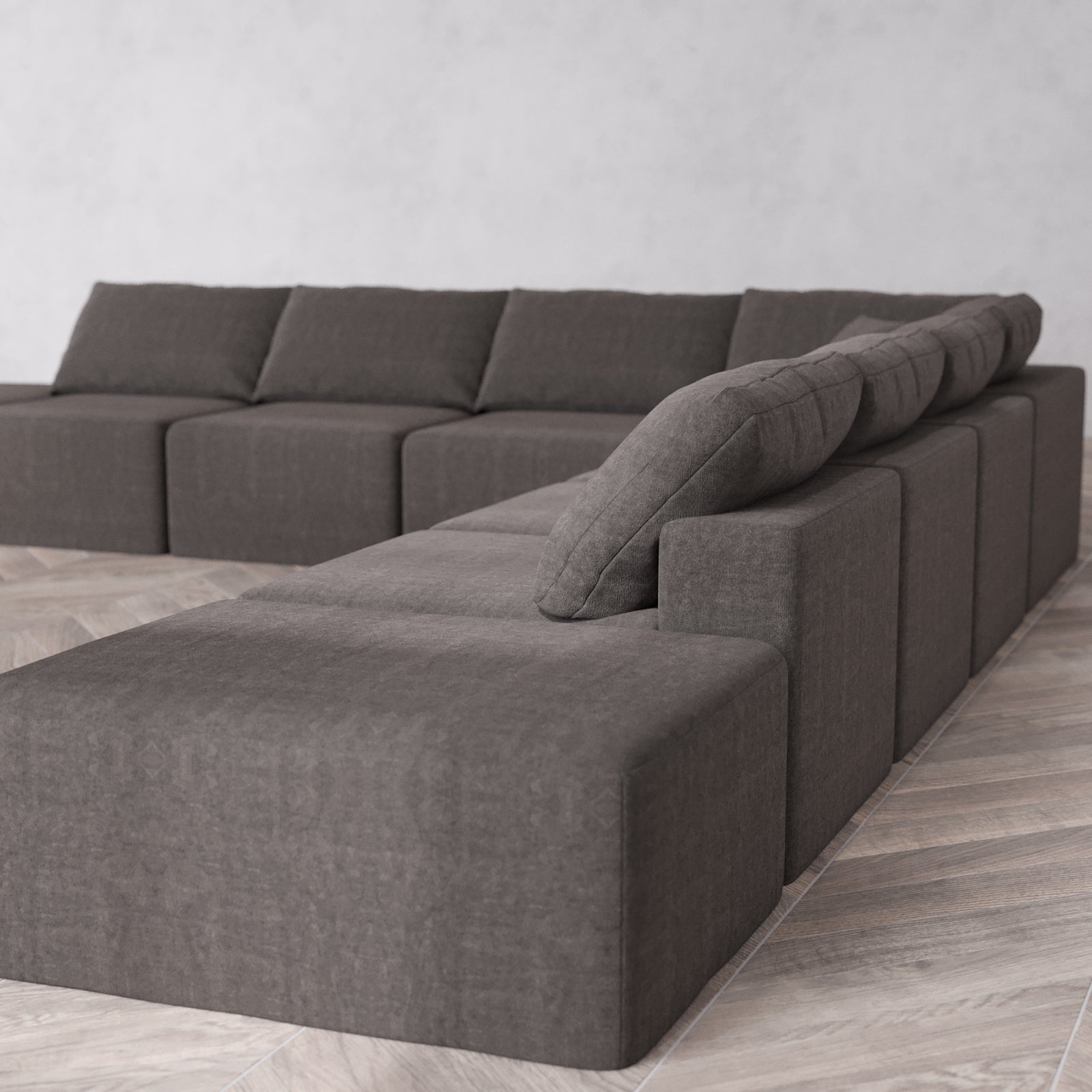 Modular Washable 8-Seater Open-Ends Corner Sectional Cloud Sofa | Heirloom Velvet in Truffle