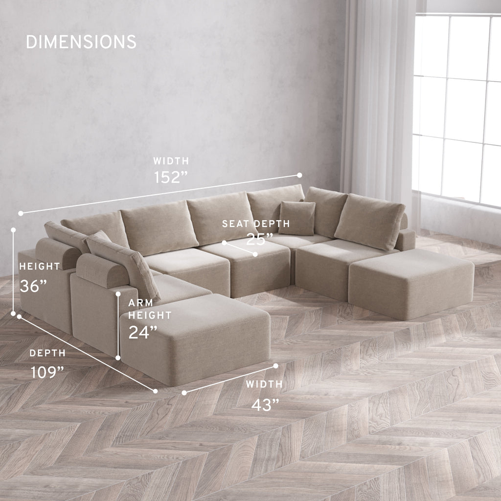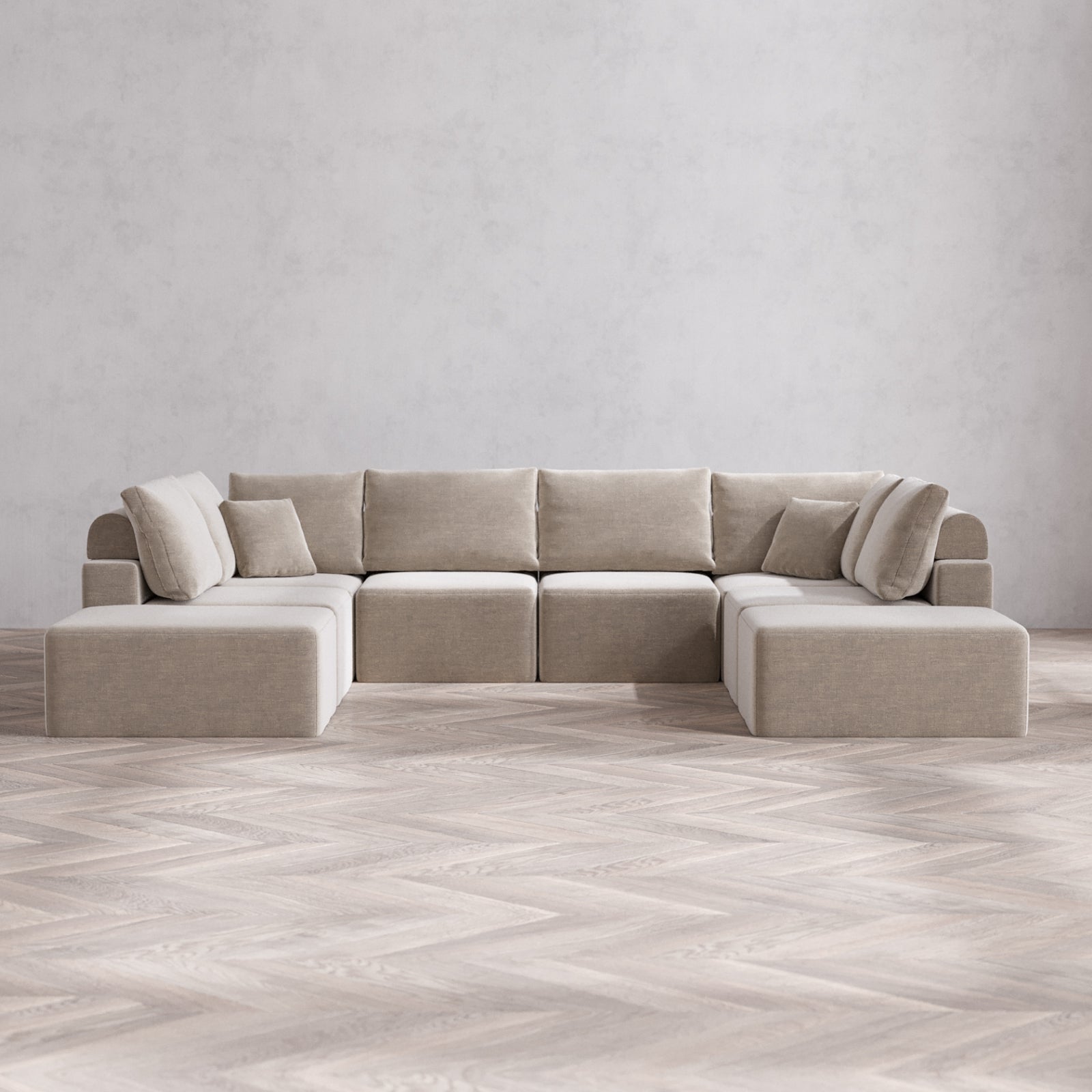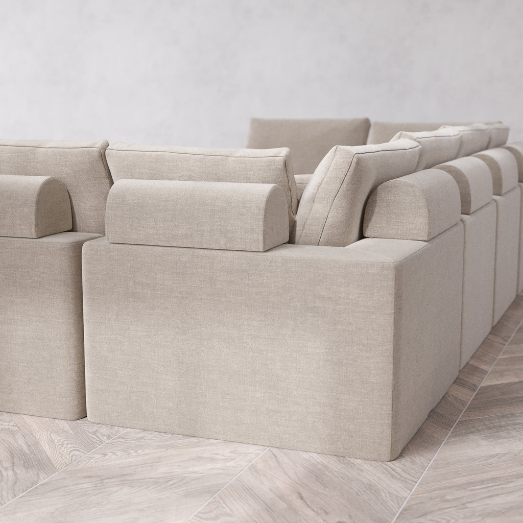 Modular Washable 8-Seater Open-Ends U Sectional Cloud + Bolster Sofa | Satin Velvet in Caraway