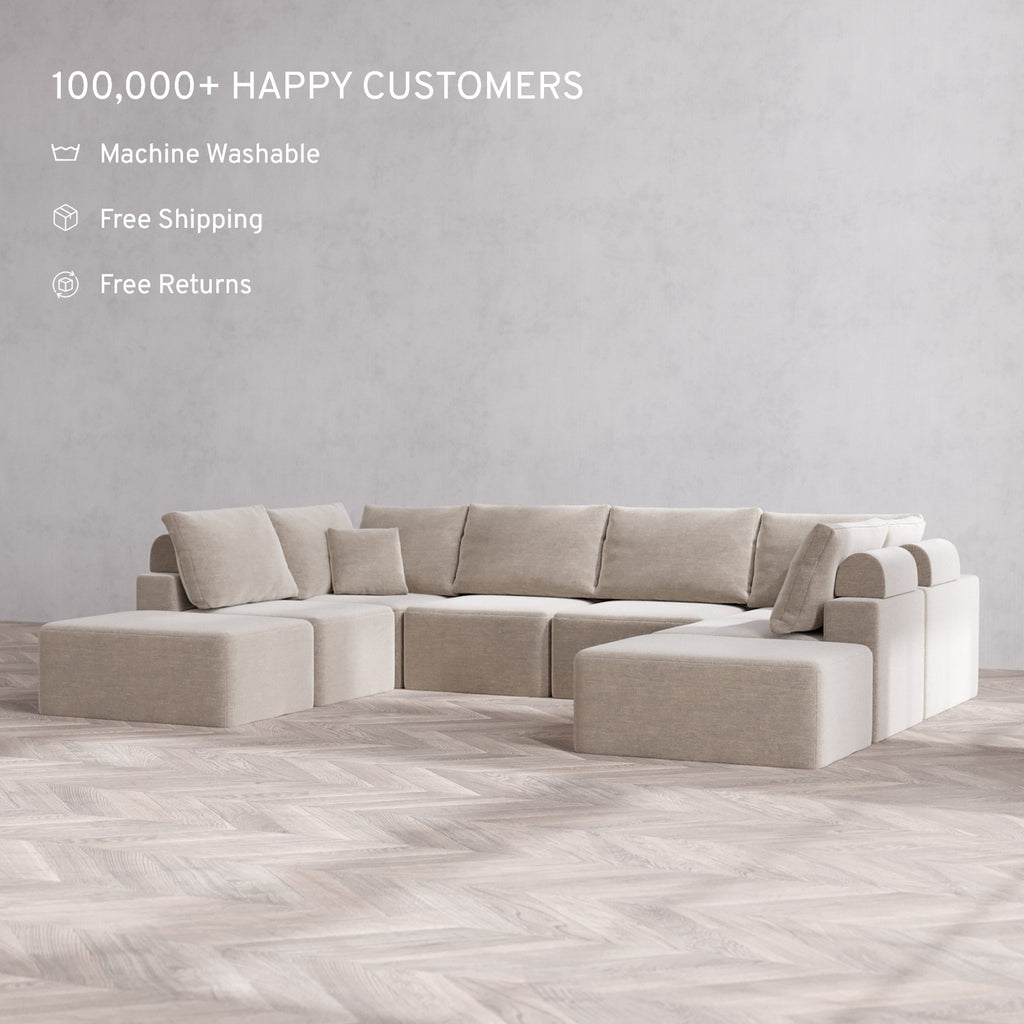 The Only Washable Cloud Sofa: With a waterproof frame and fabrics that resist pets, stains, and spills, this sofa is made to handle everyday messes. Our patent-pending covers are machine washable and fully interchangeable—buy extra sets to change up your look anytime.