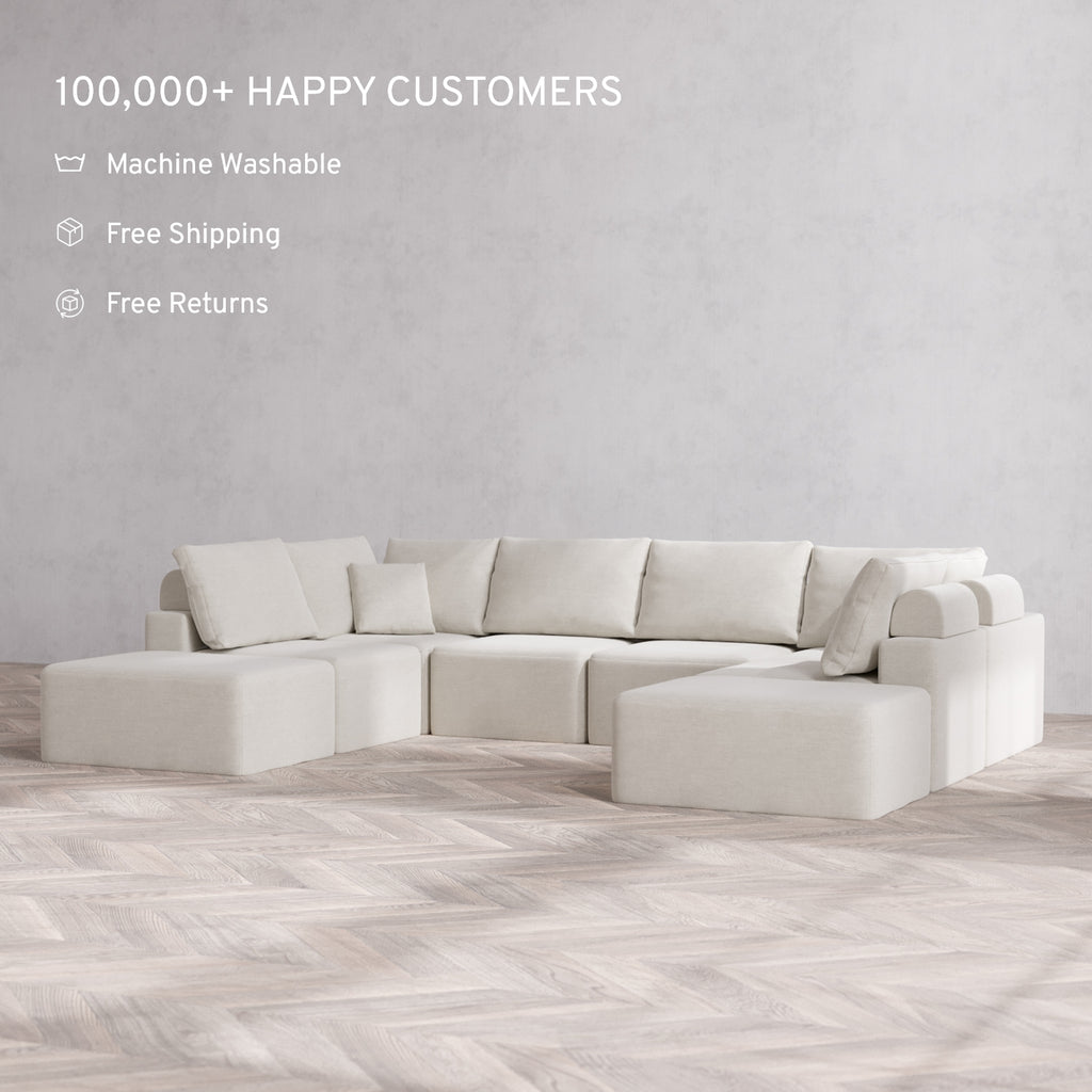 The Only Washable Cloud Sofa: With a waterproof frame and fabrics that resist pets, stains, and spills, this sofa is made to handle everyday messes. Our patent-pending covers are machine washable and fully interchangeable—buy extra sets to change up your look anytime.