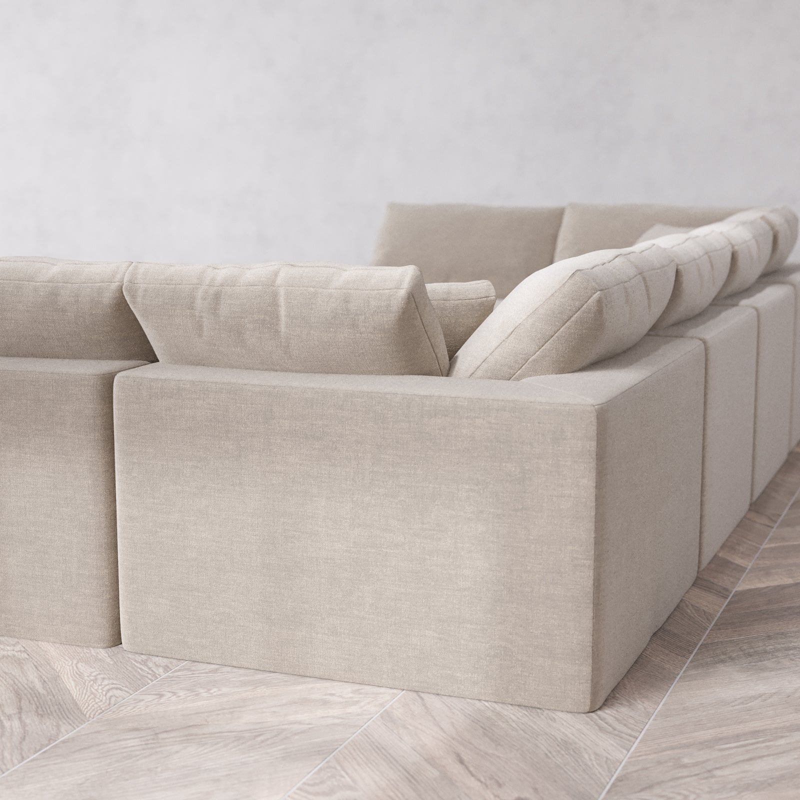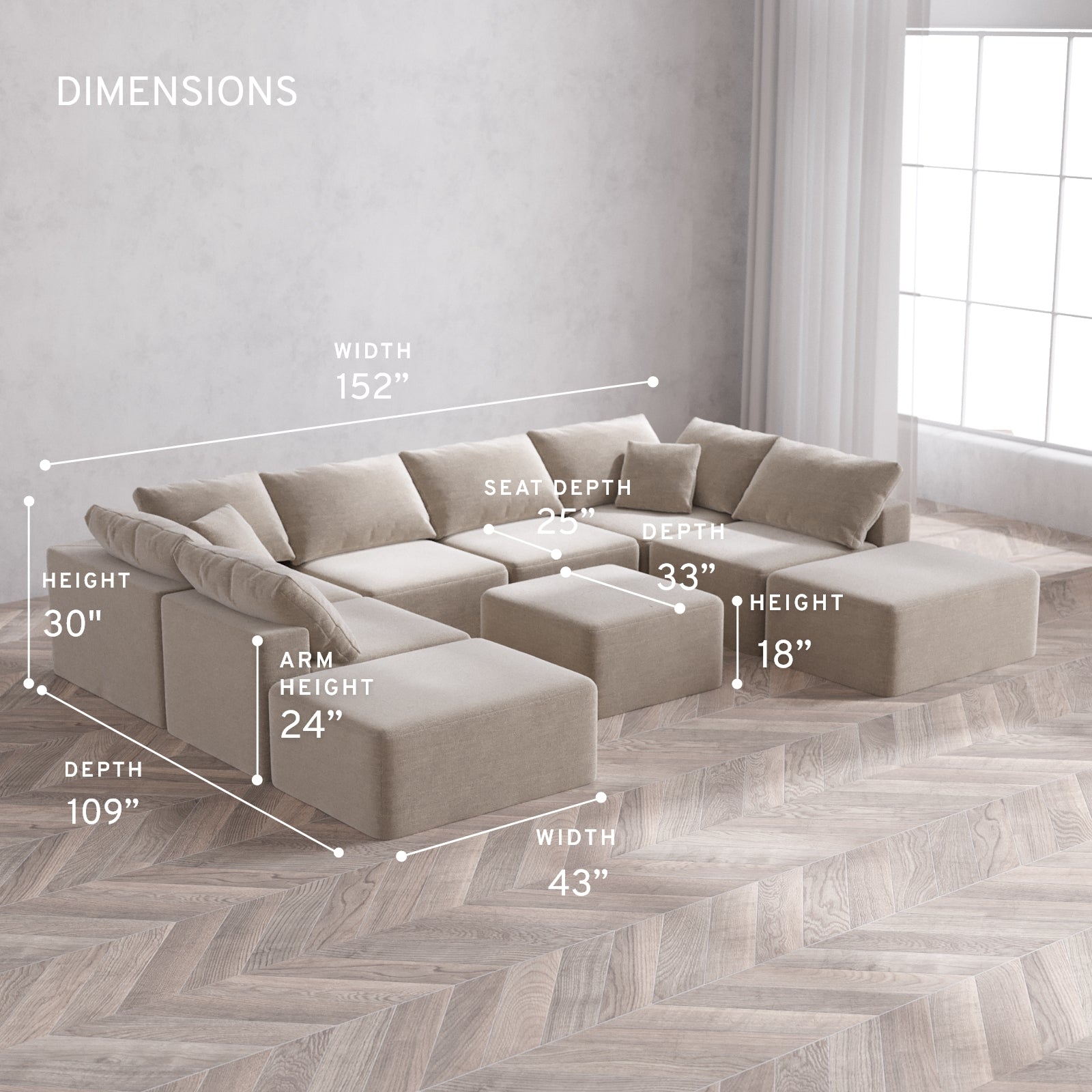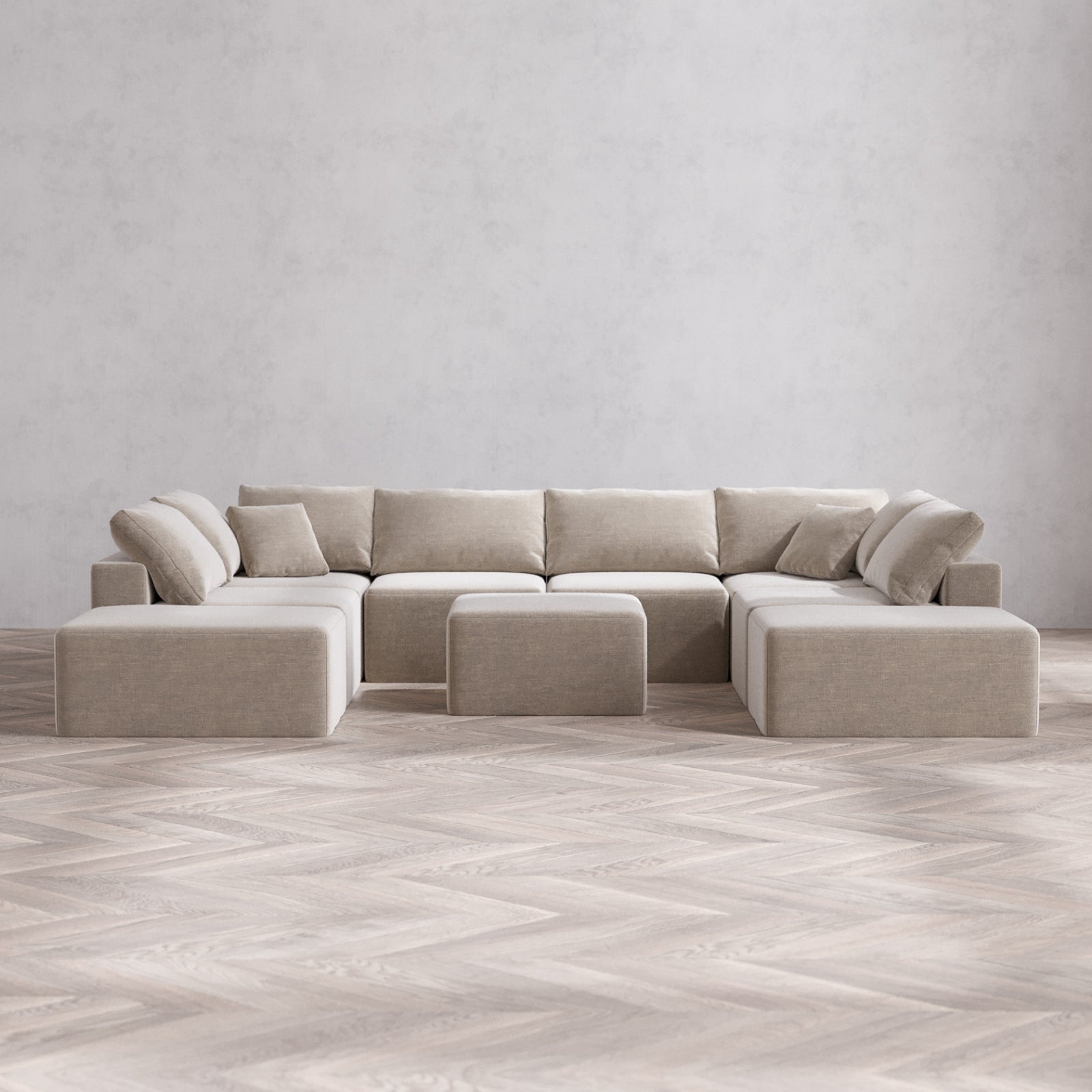 Modular Washable 8-Seater Open-Ends U Sectional + Ottoman Cloud Sofa | Satin Velvet in Caraway