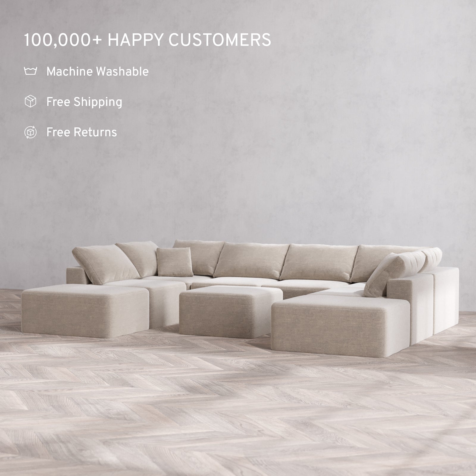 The Only Washable Cloud Sofa: With a waterproof frame and fabrics that resist pets, stains, and spills, this sofa is made to handle everyday messes. Our patent-pending covers are machine washable and fully interchangeable—buy extra sets to change up your look anytime.