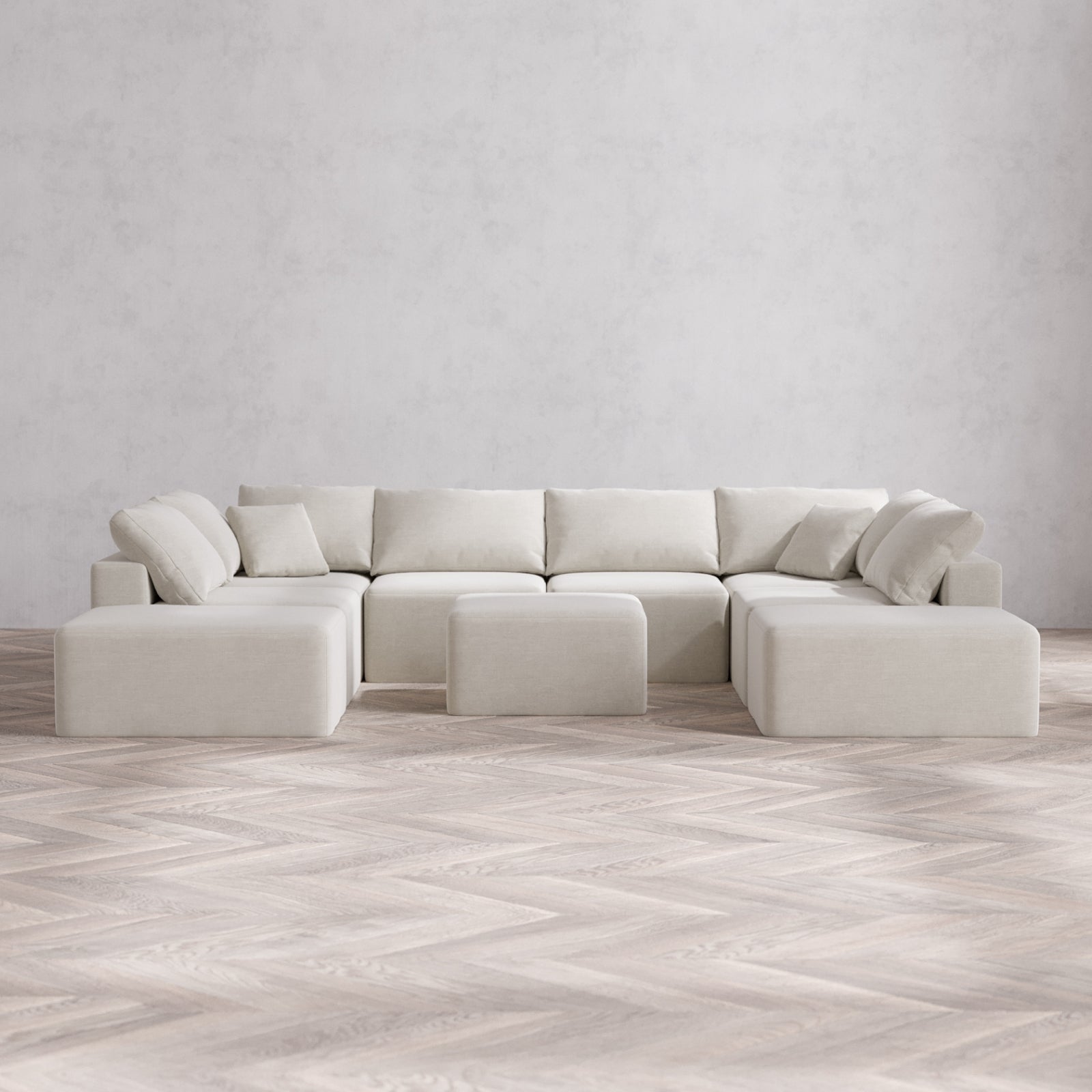 Modular Washable 8-Seater Open-Ends U Sectional + Ottoman Cloud Sofa | Satin Velvet in Cashew