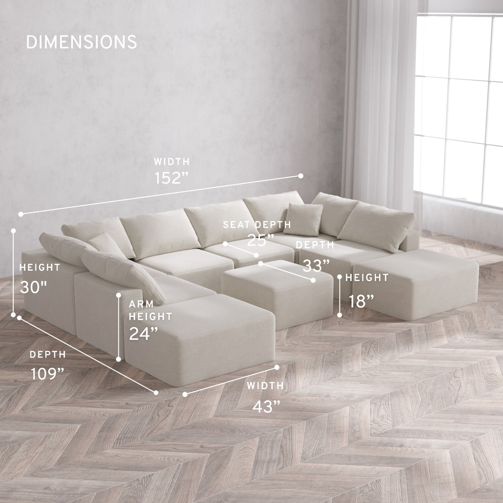 Machine Washable: Every piece of fabric—including the internal quilted duvet—is fully removable and machine washable. It’s the only Cloud-style sofa you can truly deep clean, effortlessly.