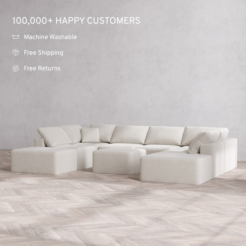 The Only Washable Cloud Sofa: With a waterproof frame and fabrics that resist pets, stains, and spills, this sofa is made to handle everyday messes. Our patent-pending covers are machine washable and fully interchangeable—buy extra sets to change up your look anytime.