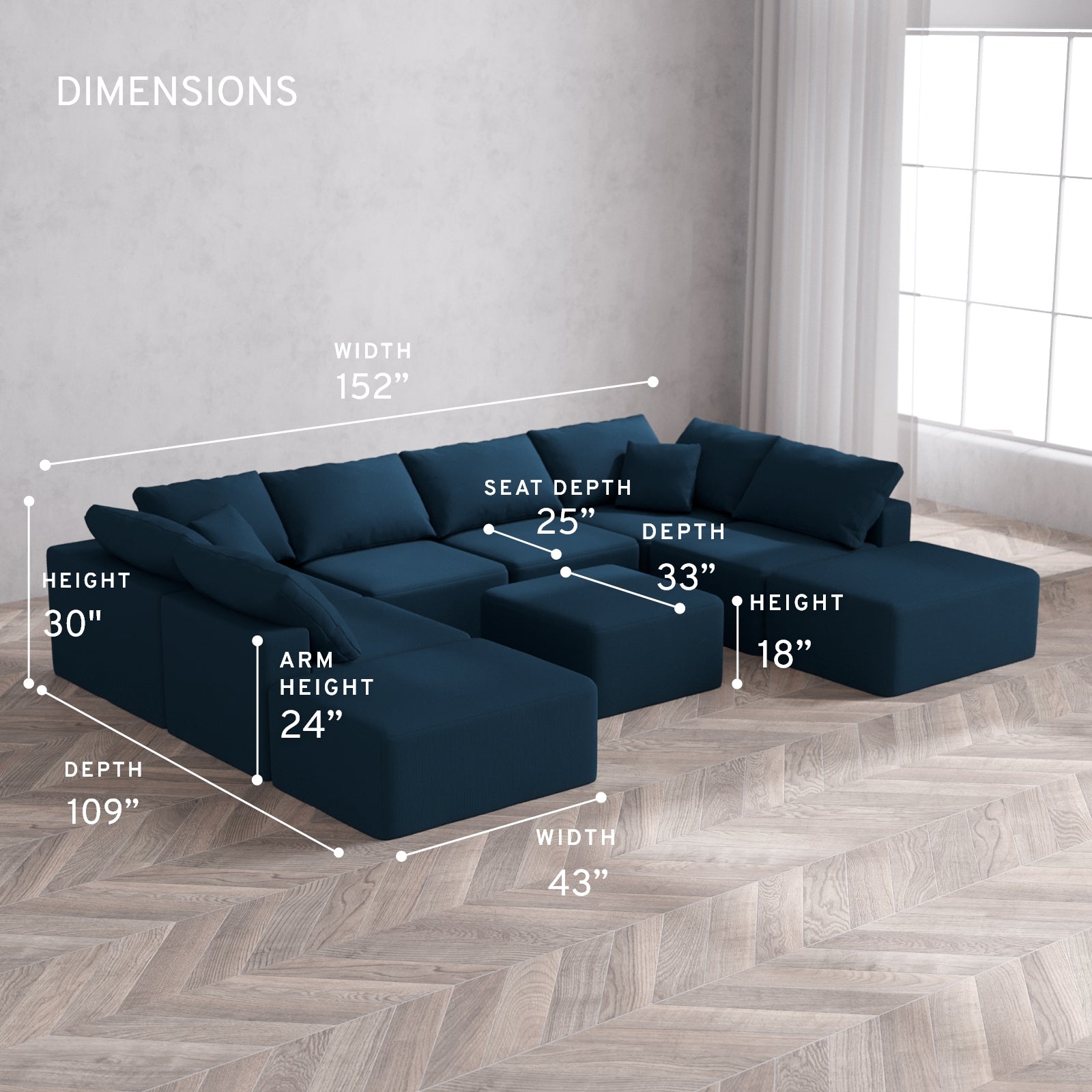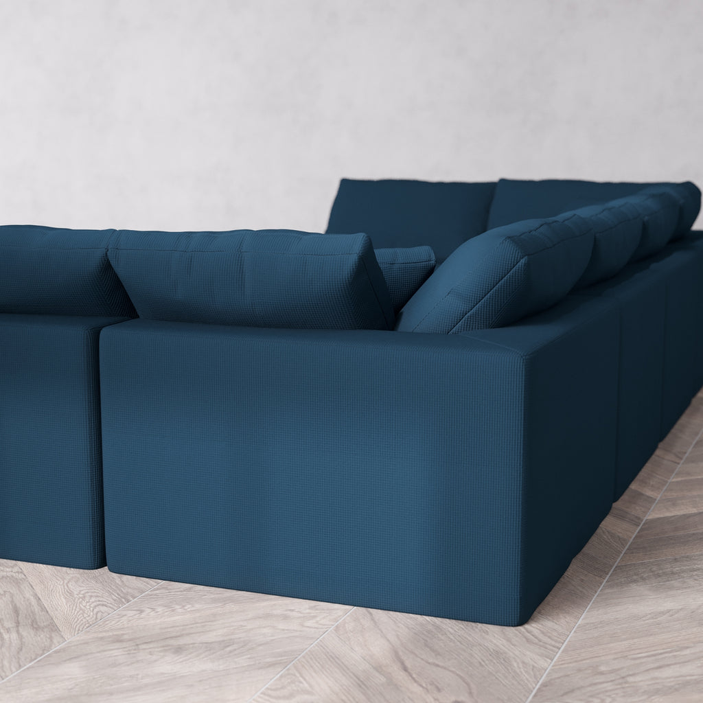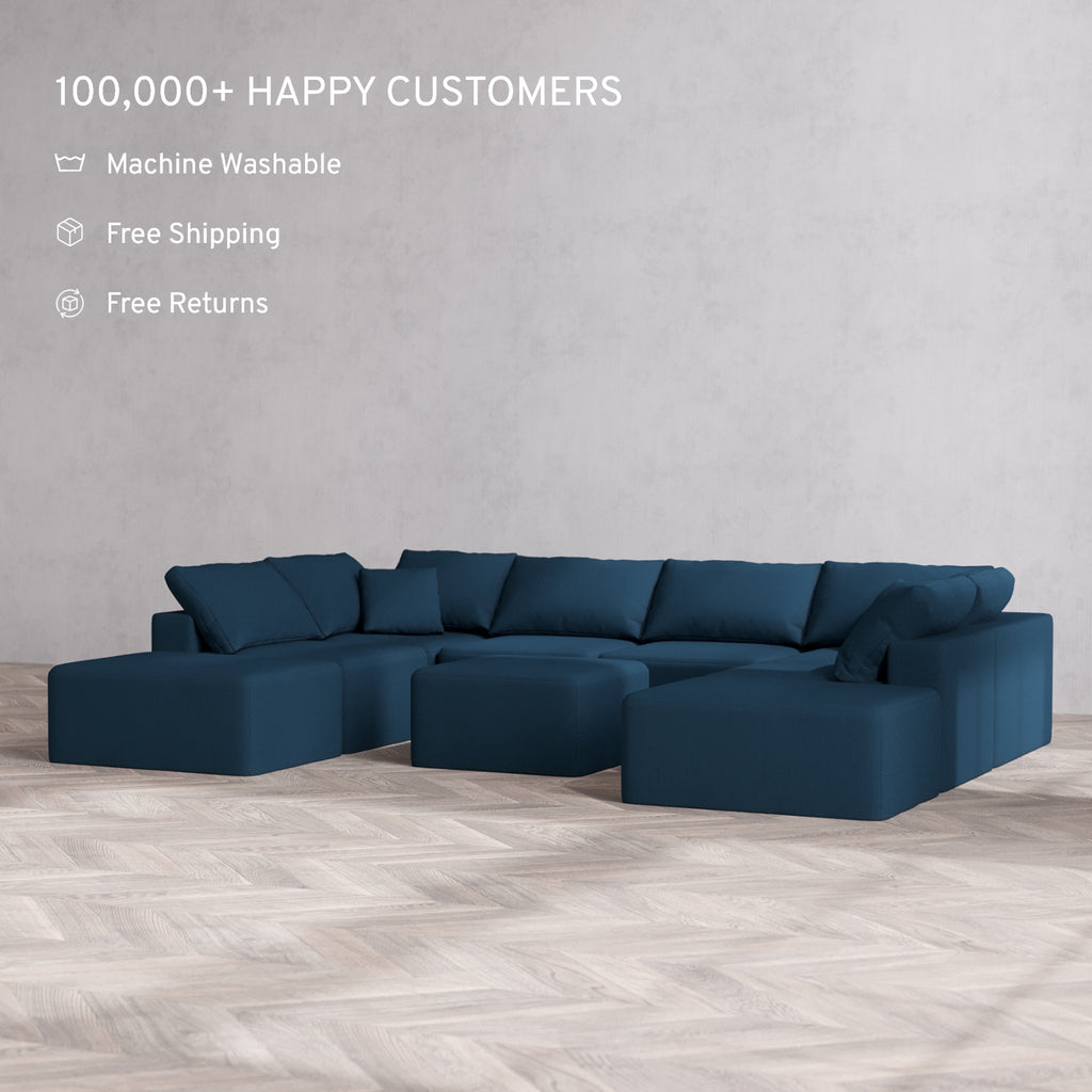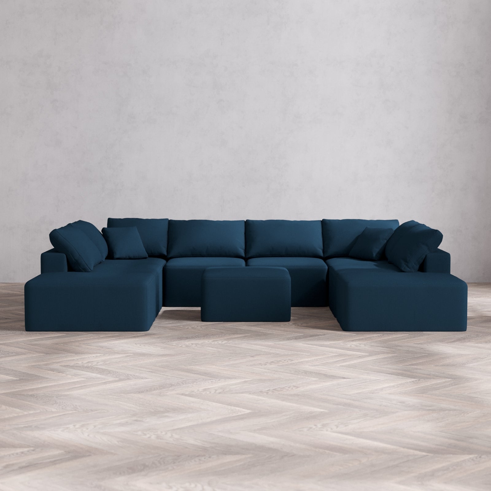 Modular Washable 8-Seater Open-Ends U Sectional + Ottoman Cloud Sofa | Arden Weave in Lazuli