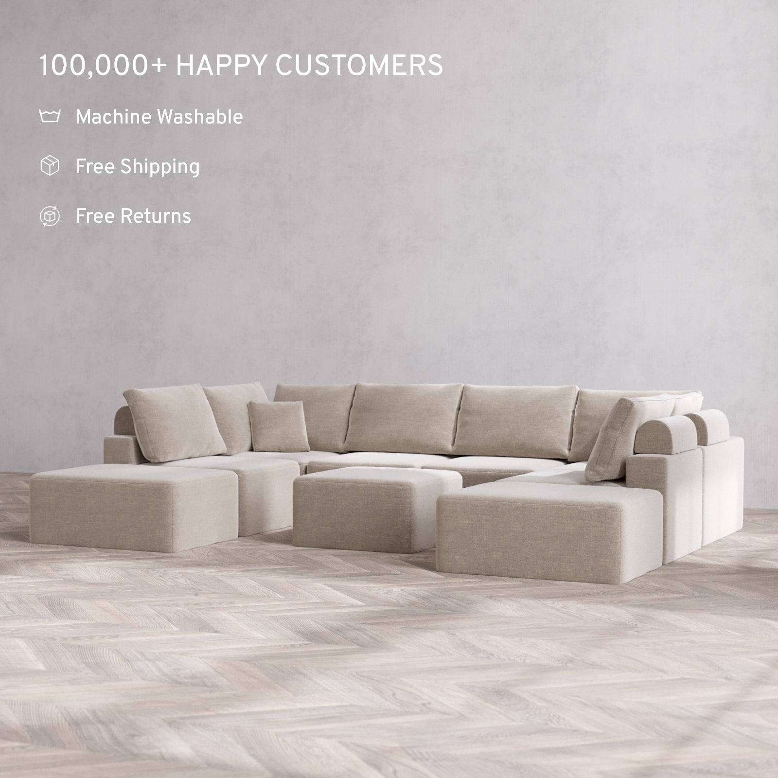 Machine Washable: Every piece of fabric—including the internal quilted duvet—is fully removable and machine washable. It’s the only Cloud-style sofa you can truly deep clean, effortlessly.