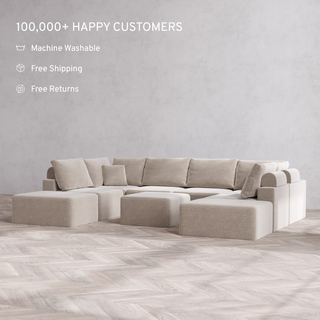 The Only Washable Cloud Sofa: With a waterproof frame and fabrics that resist pets, stains, and spills, this sofa is made to handle everyday messes. Our patent-pending covers are machine washable and fully interchangeable—buy extra sets to change up your look anytime.