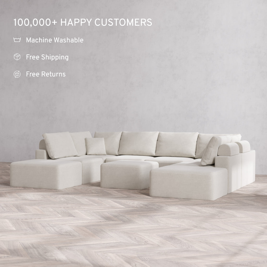The Only Washable Cloud Sofa: With a waterproof frame and fabrics that resist pets, stains, and spills, this sofa is made to handle everyday messes. Our patent-pending covers are machine washable and fully interchangeable—buy extra sets to change up your look anytime.