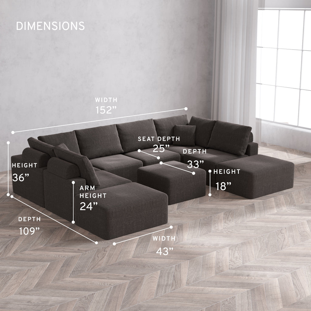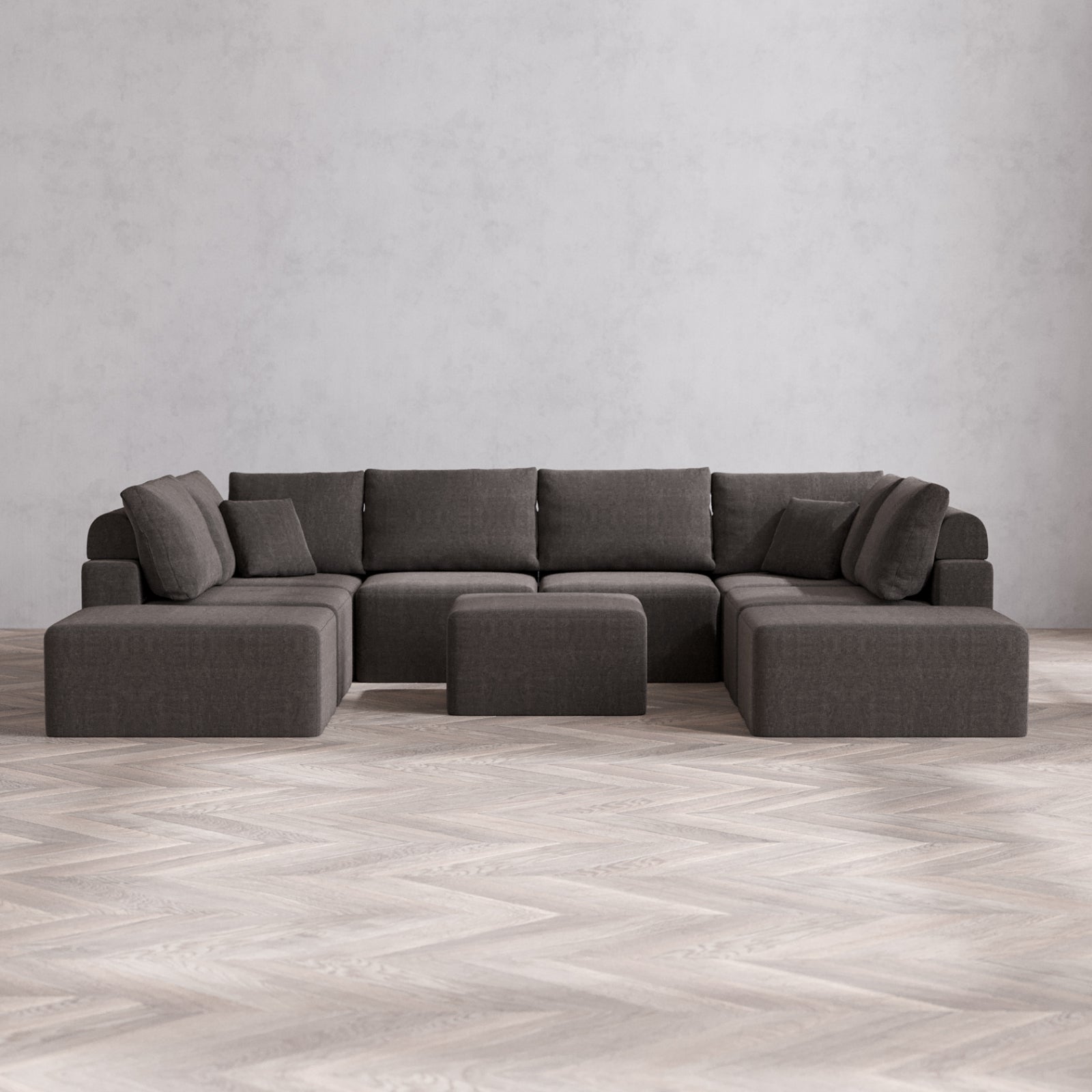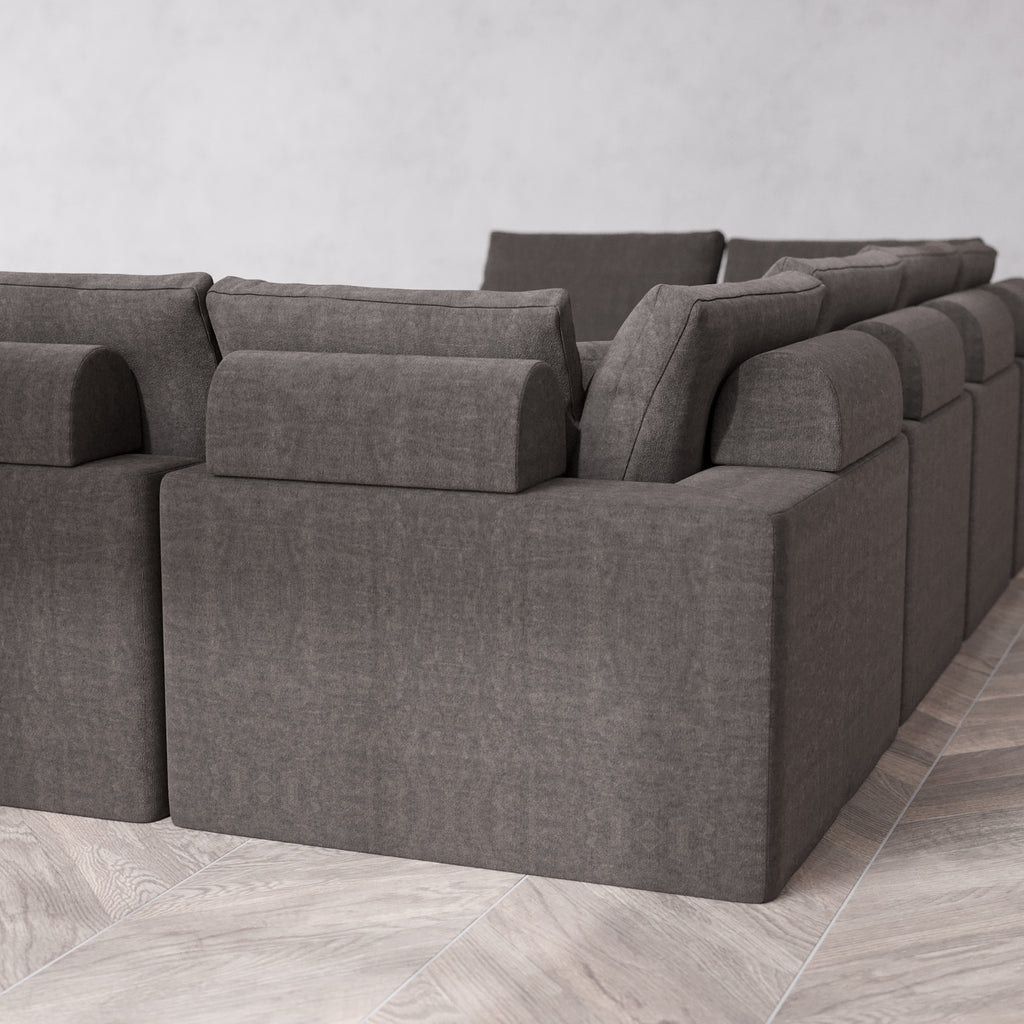 Modular Washable 8-Seater Open-Ends U Sectional + Ottoman Cloud + Bolster Sofa | Heirloom Velvet in Truffle