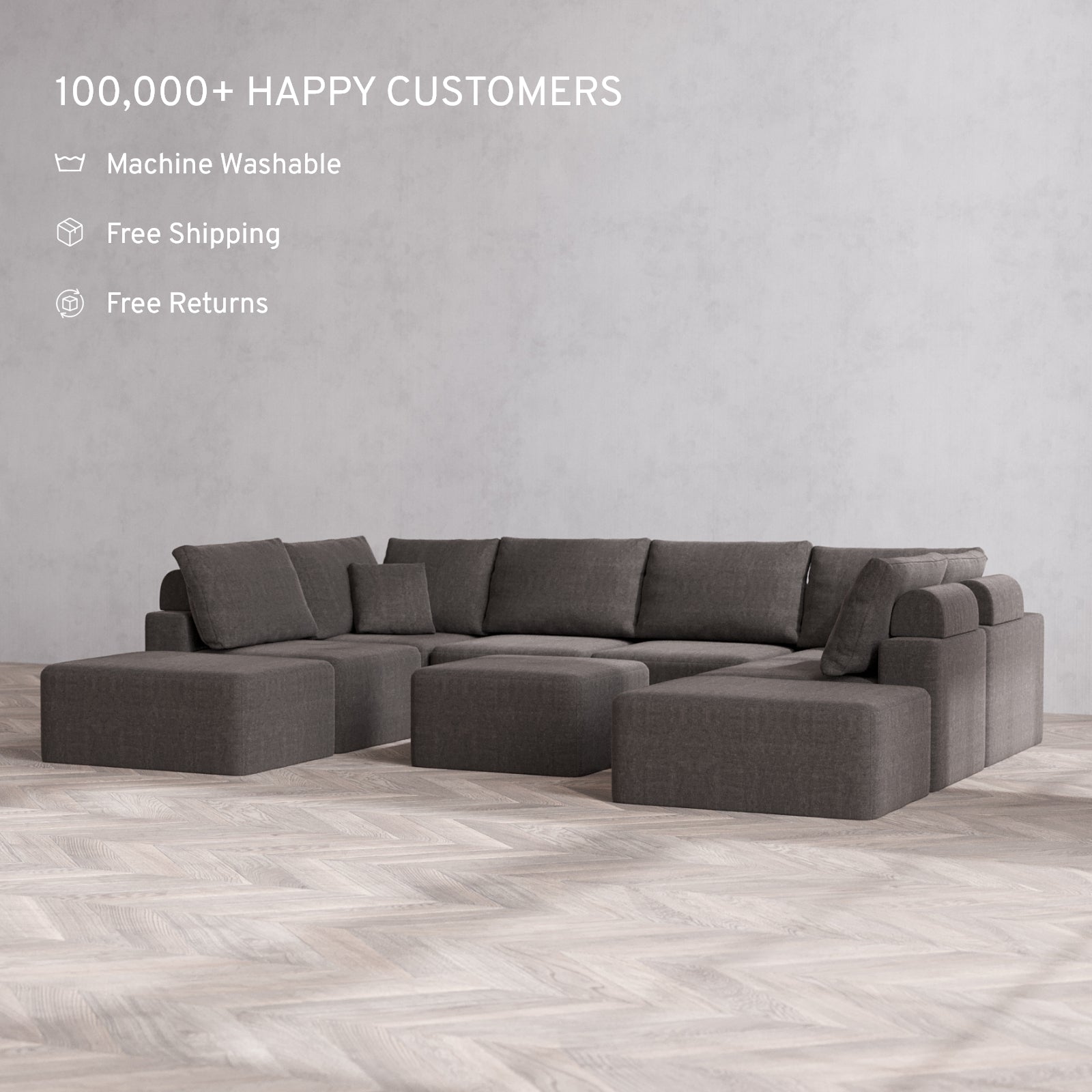 The Only Washable Cloud Sofa: With a waterproof frame and fabrics that resist pets, stains, and spills, this sofa is made to handle everyday messes. Our patent-pending covers are machine washable and fully interchangeable—buy extra sets to change up your look anytime.