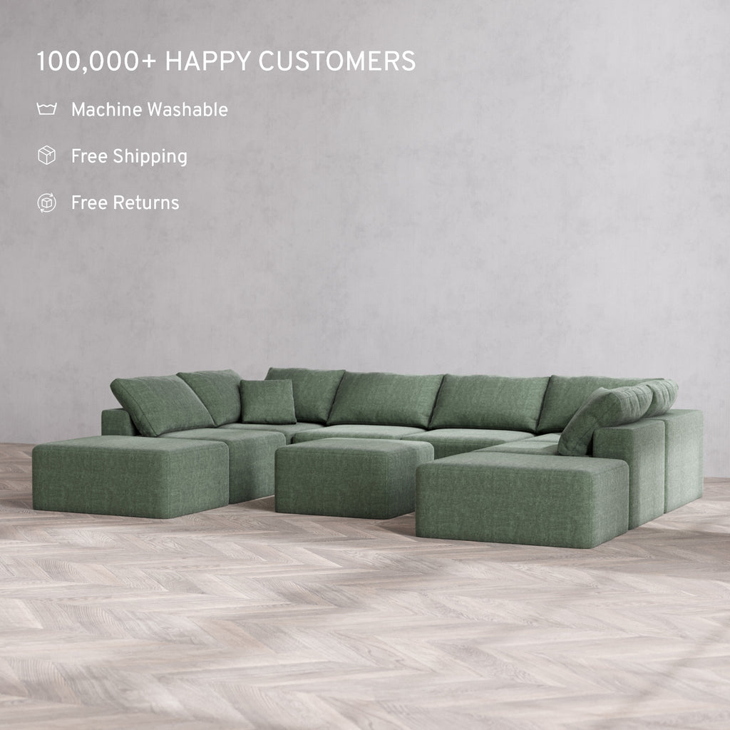 Machine Washable: Every piece of fabric—including the internal quilted duvet—is fully removable and machine washable. It’s the only Cloud-style sofa you can truly deep clean, effortlessly.