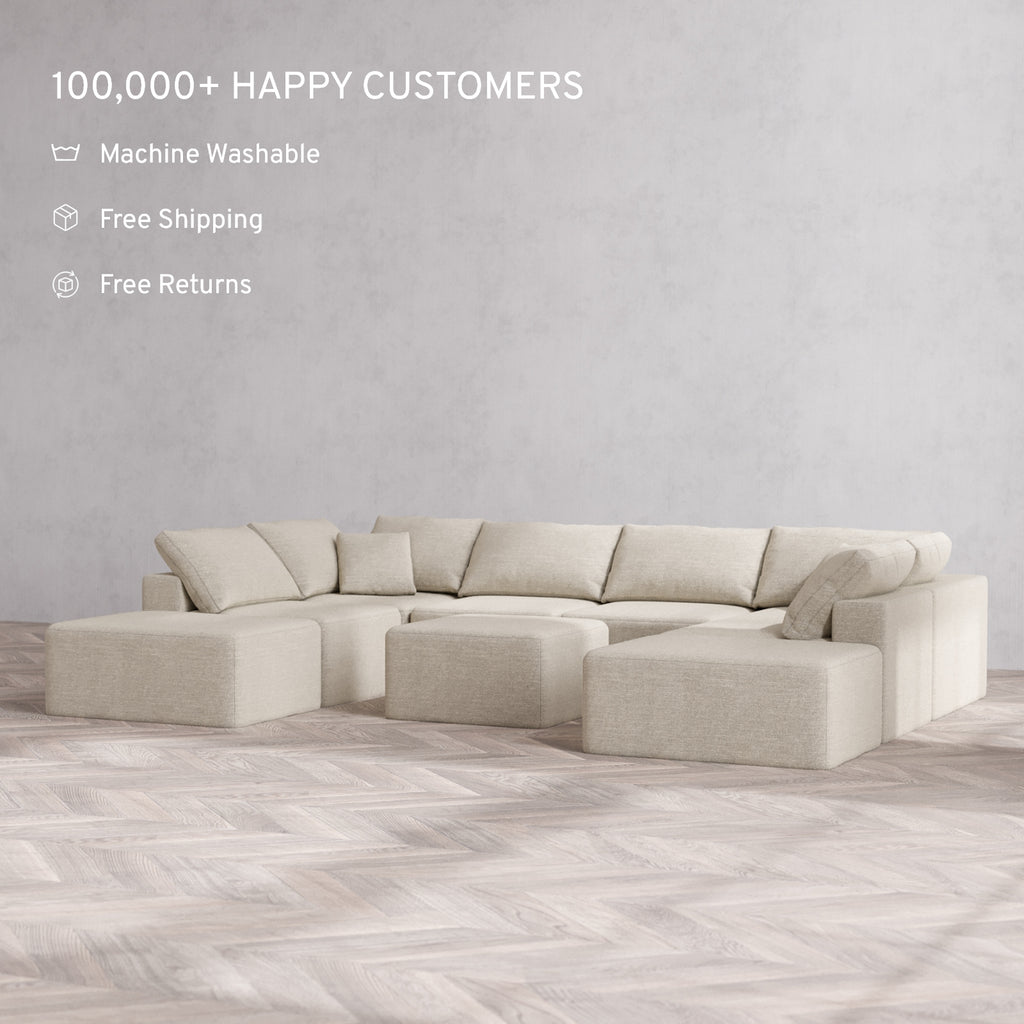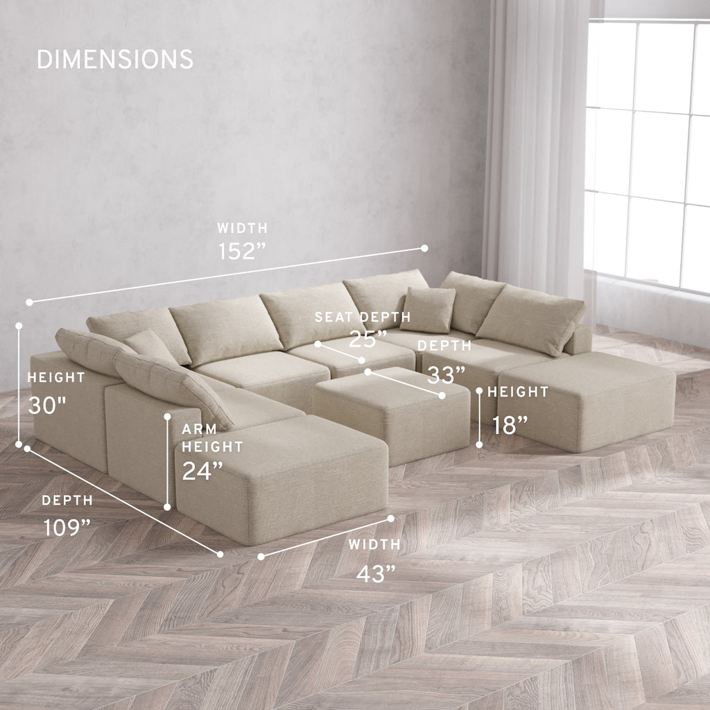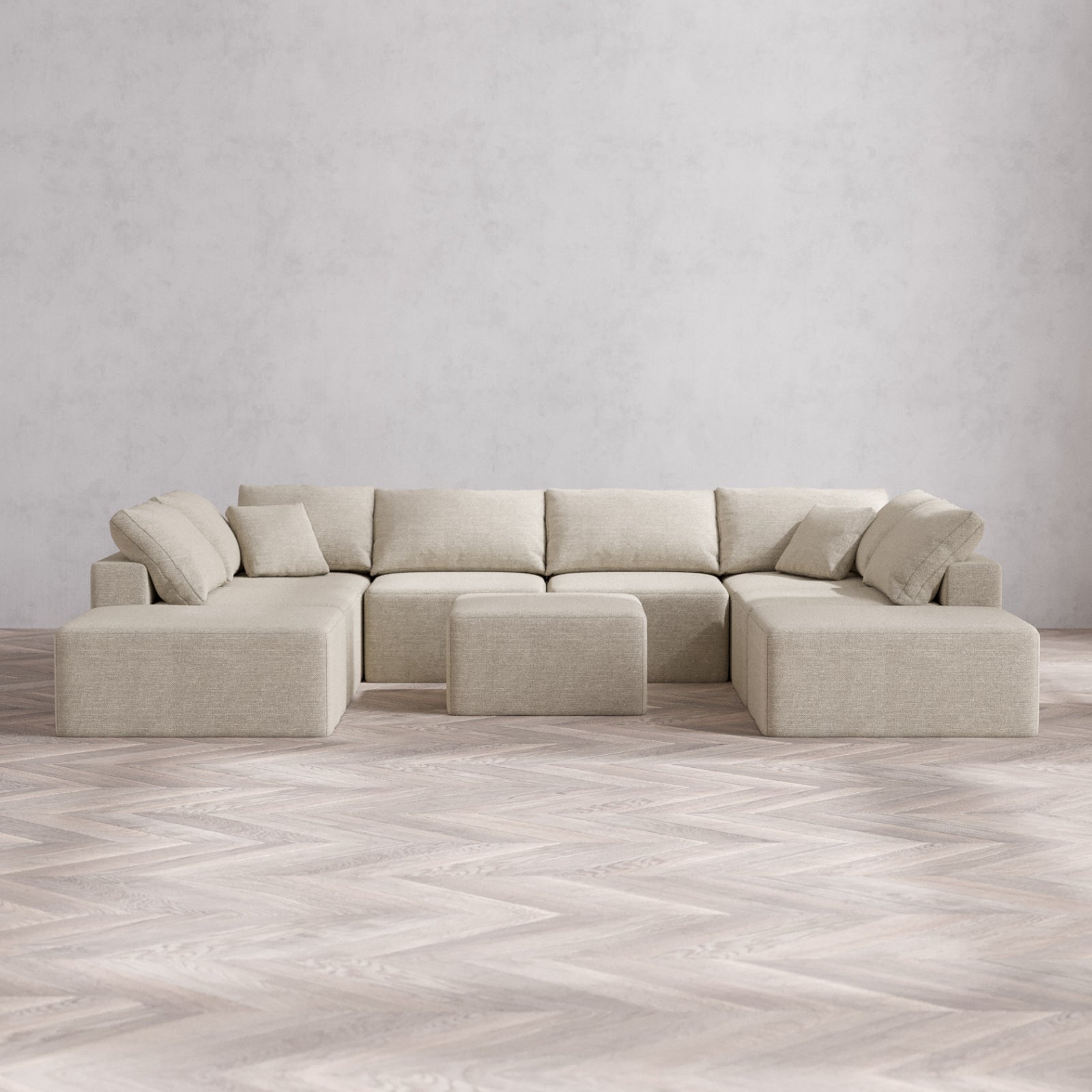 Modular Washable 8-Seater Open-Ends U Sectional + Ottoman Cloud Sofa | Plush Twill in Sandstone