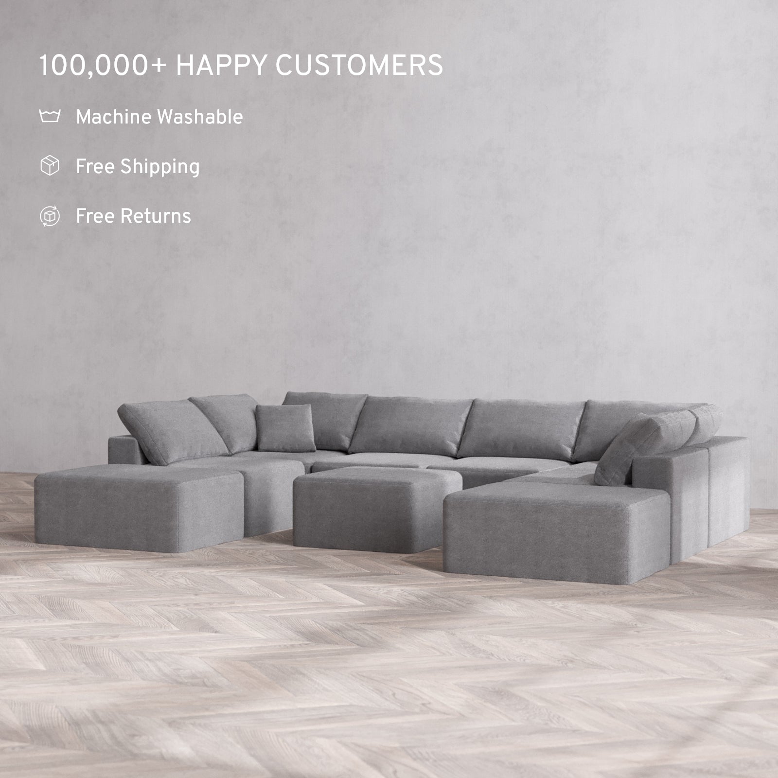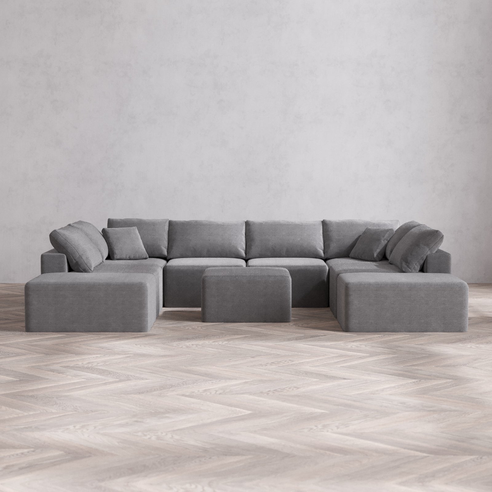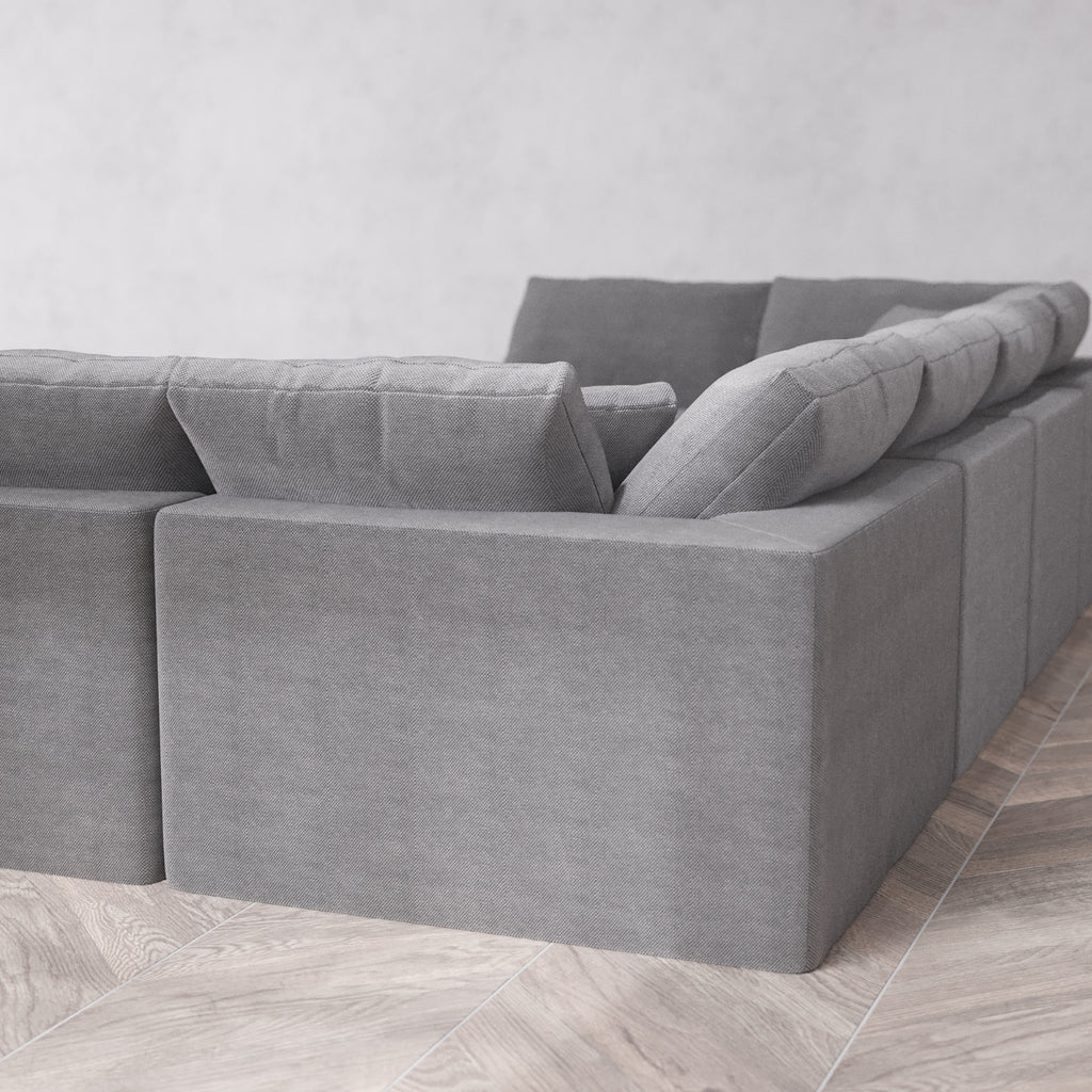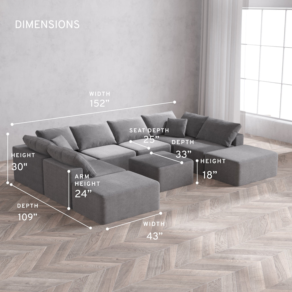 Modular Washable 8-Seater Open-Ends U Sectional + Ottoman Cloud Sofa | Lux Weave in Slate