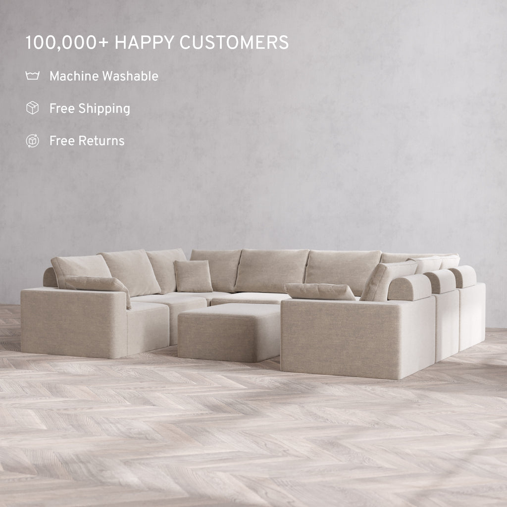 The Only Washable Cloud Sofa: With a waterproof frame and fabrics that resist pets, stains, and spills, this sofa is made to handle everyday messes. Our patent-pending covers are machine washable and fully interchangeable—buy extra sets to change up your look anytime.