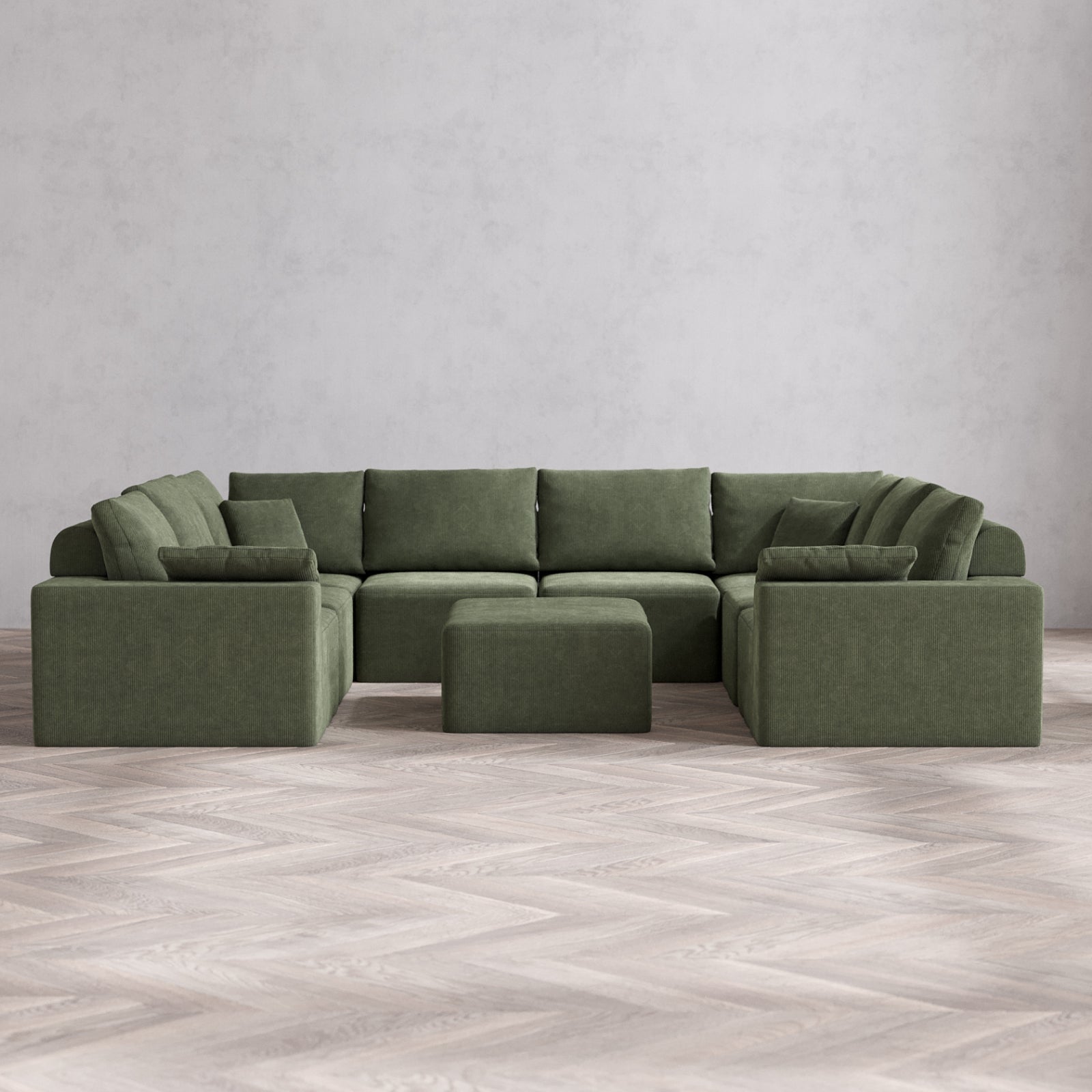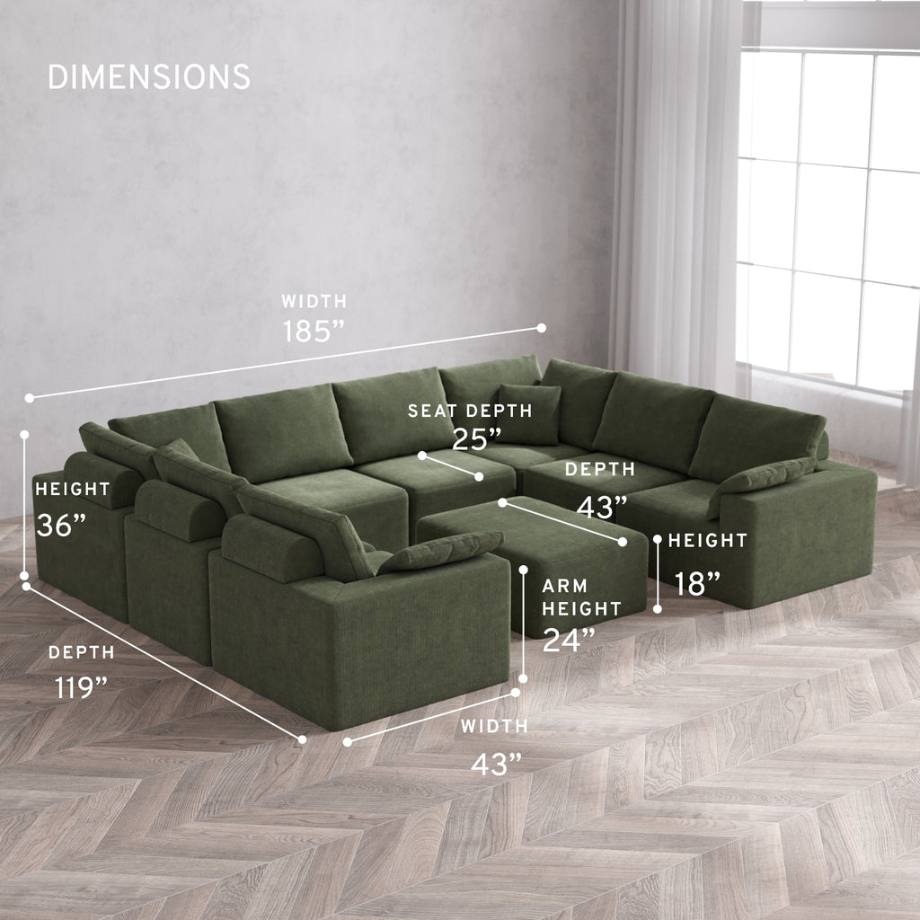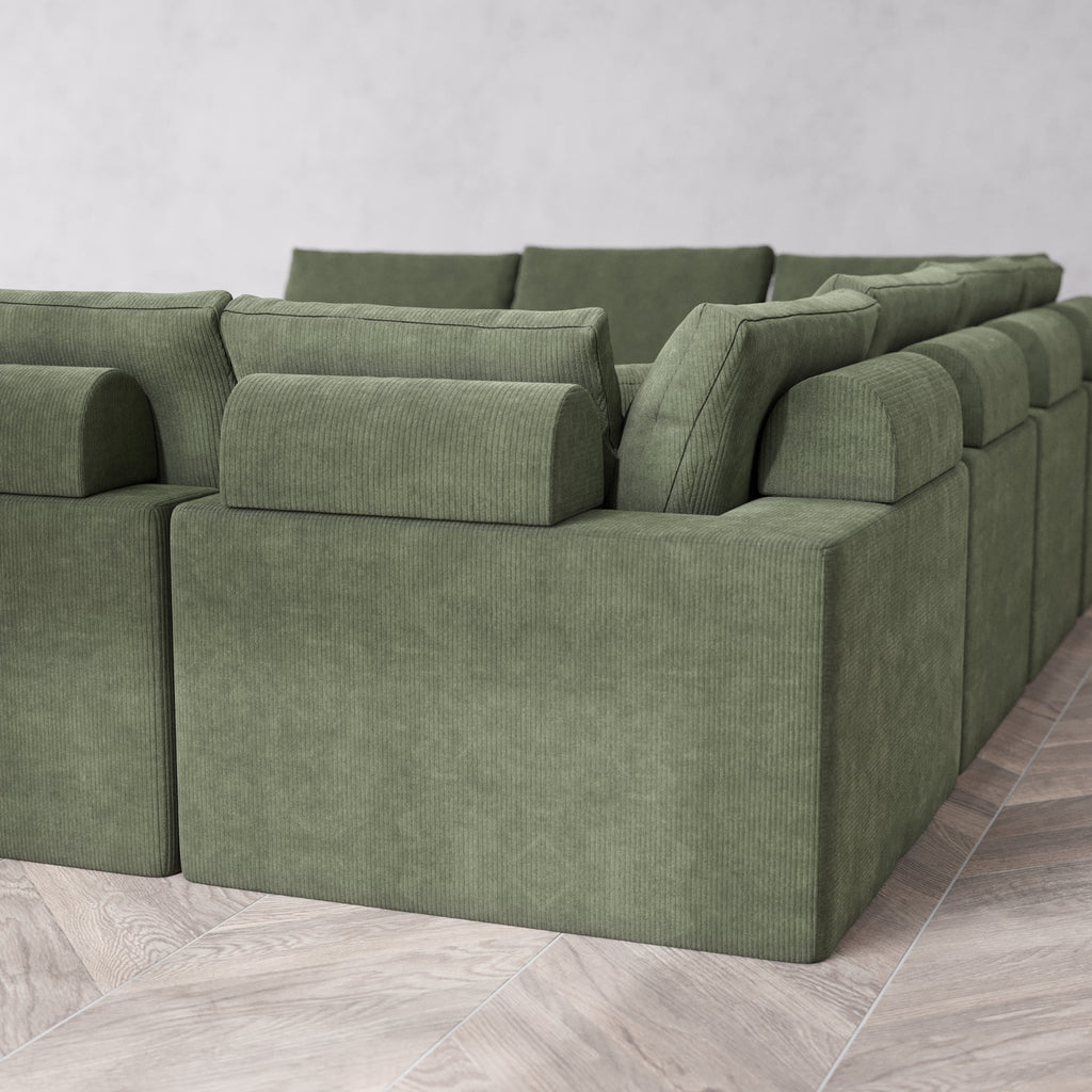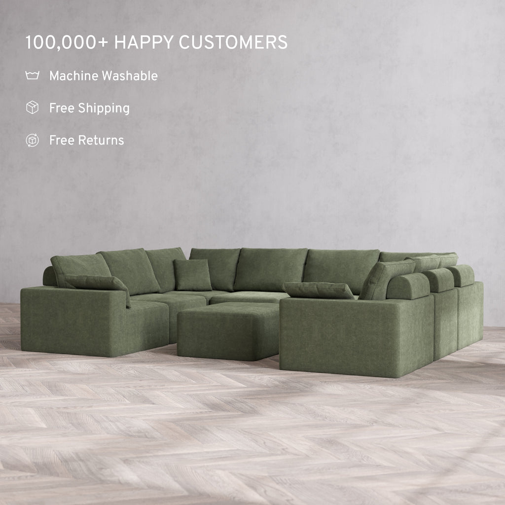 Modular Washable 8-Seater U Sectional + Chaise Ottoman Cloud + Bolster Sofa | Luxe Corduroy in Juniper