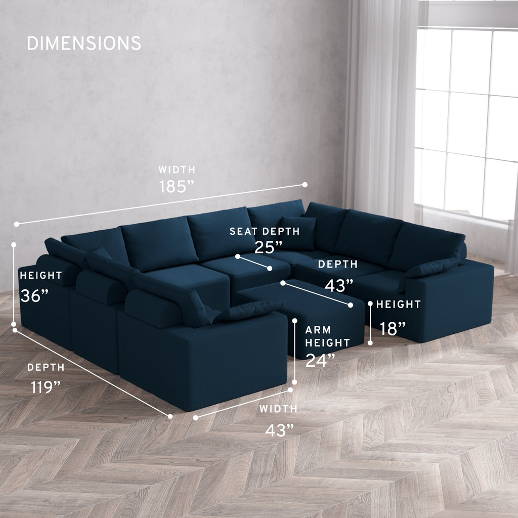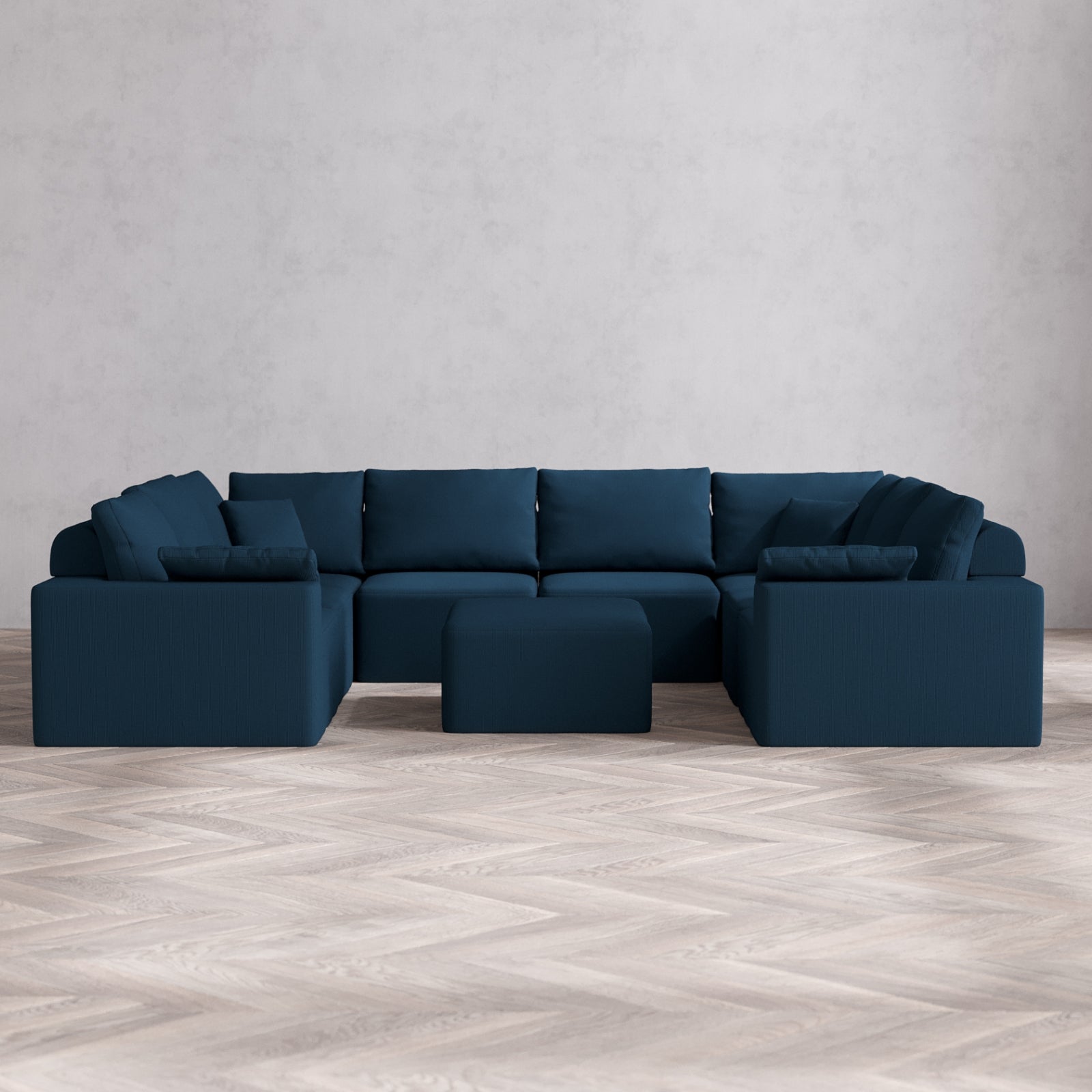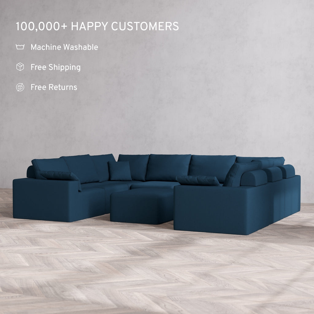 Modular Washable 8-Seater U Sectional + Chaise Ottoman Cloud + Bolster Sofa | Arden Weave in Lazuli