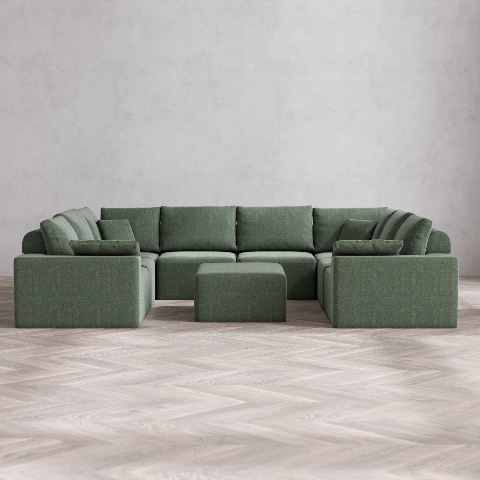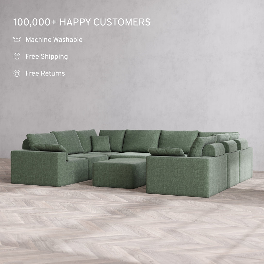 Modular Washable 8-Seater U Sectional + Chaise Ottoman Cloud + Bolster Sofa | Heirloom Velvet in Sage