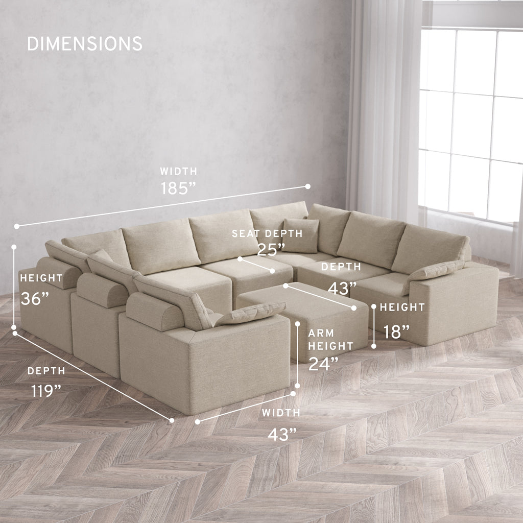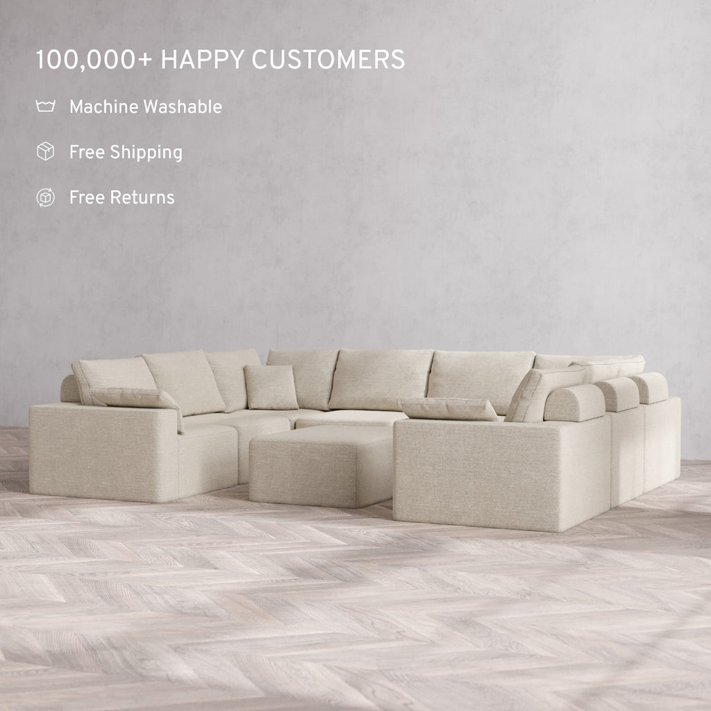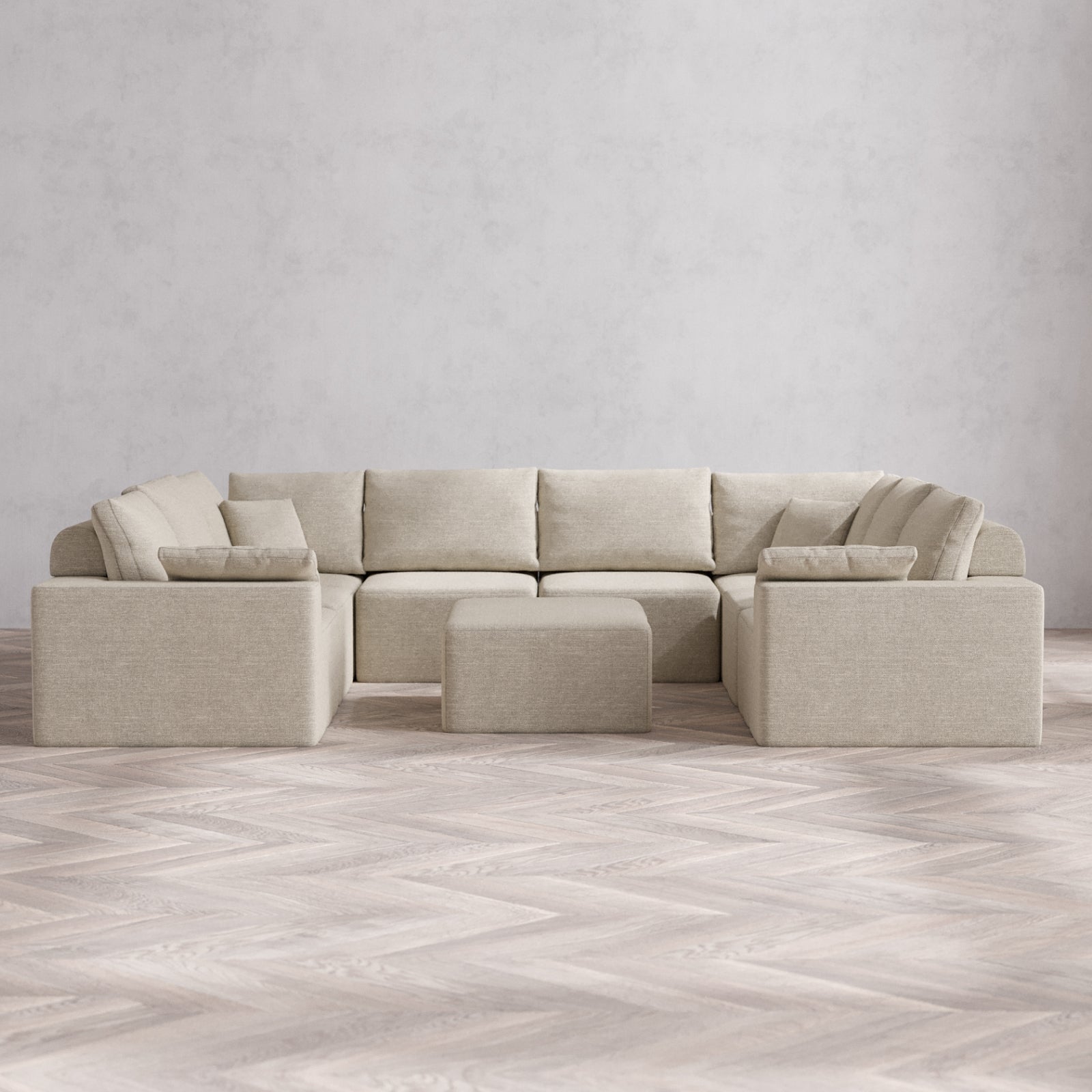 Modular Washable 8-Seater U Sectional + Chaise Ottoman Cloud + Bolster Sofa | Plush Twill in Sandstone