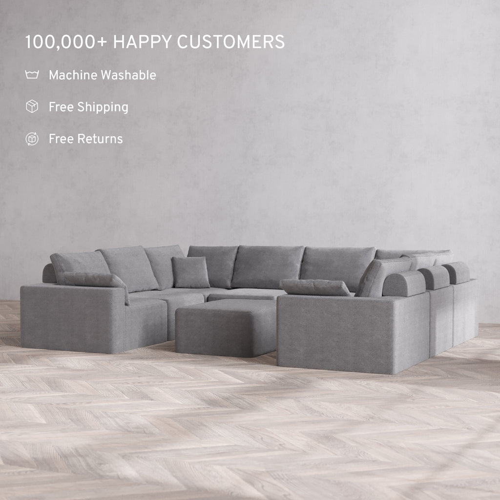The Only Washable Cloud Sofa: With a waterproof frame and fabrics that resist pets, stains, and spills, this sofa is made to handle everyday messes. Our patent-pending covers are machine washable and fully interchangeable—buy extra sets to change up your look anytime.