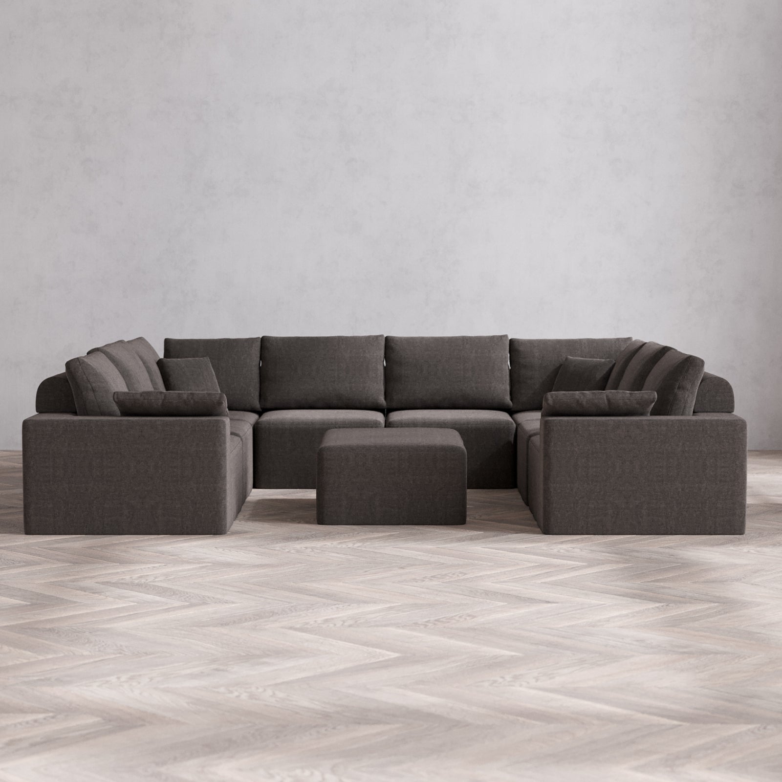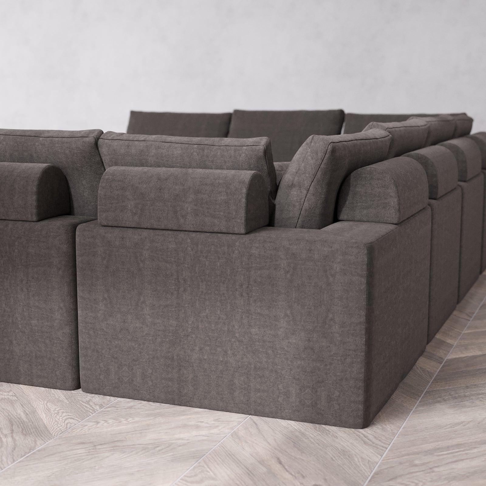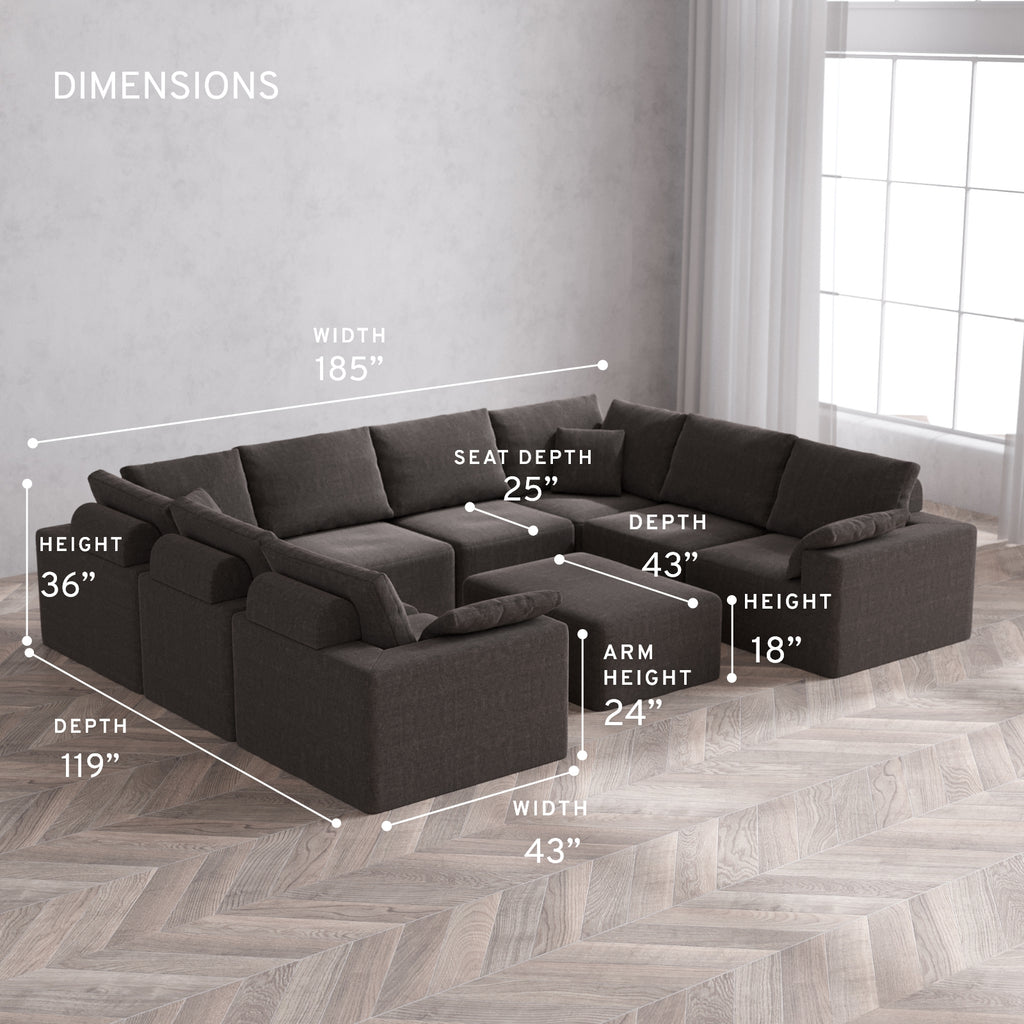 Modular Washable 8-Seater U Sectional + Chaise Ottoman Cloud + Bolster Sofa | Heirloom Velvet in Truffle