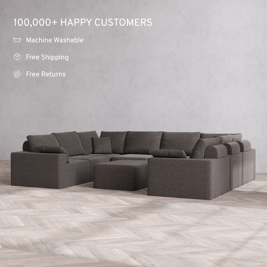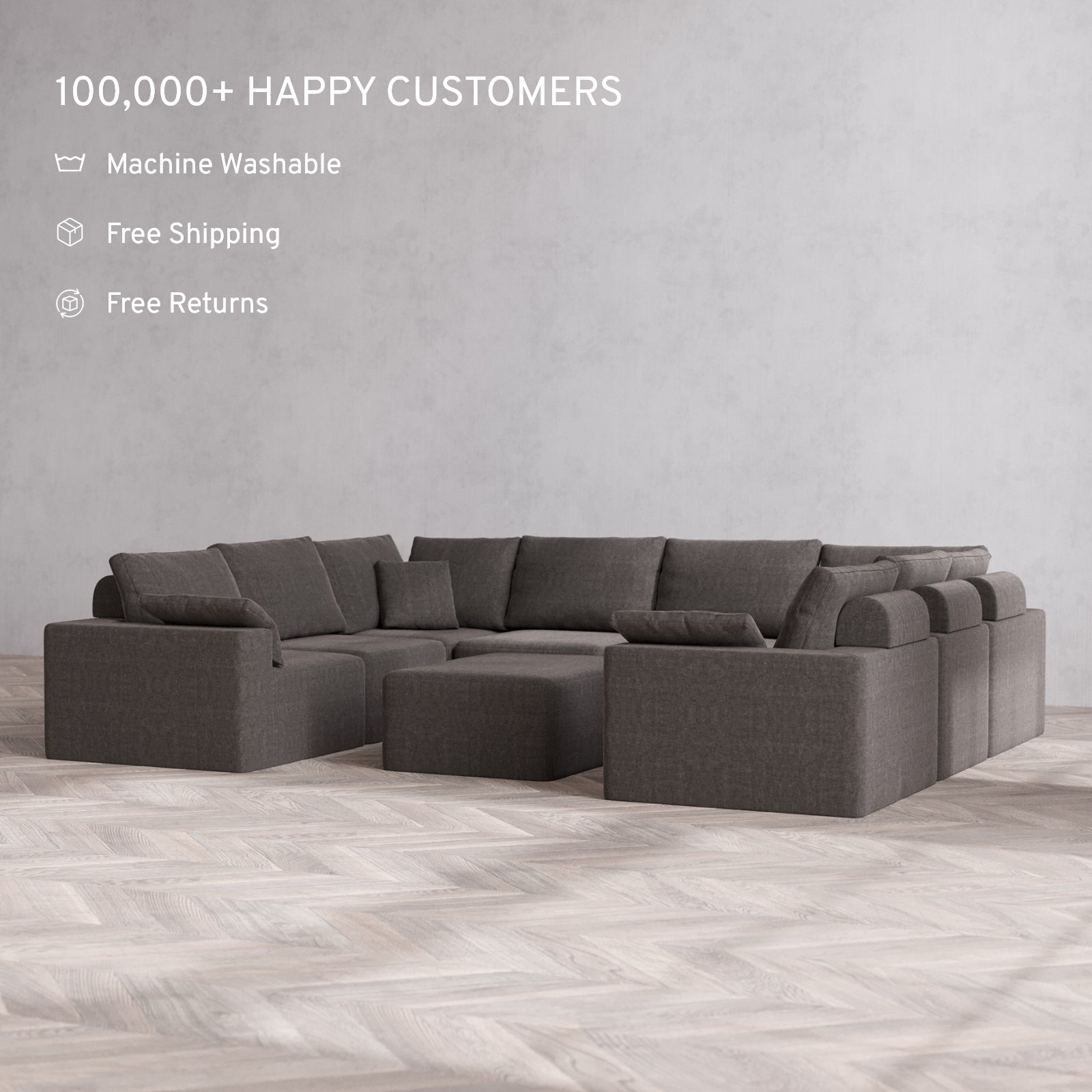 The Only Washable Cloud Sofa: With a waterproof frame and fabrics that resist pets, stains, and spills, this sofa is made to handle everyday messes. Our patent-pending covers are machine washable and fully interchangeable—buy extra sets to change up your look anytime.