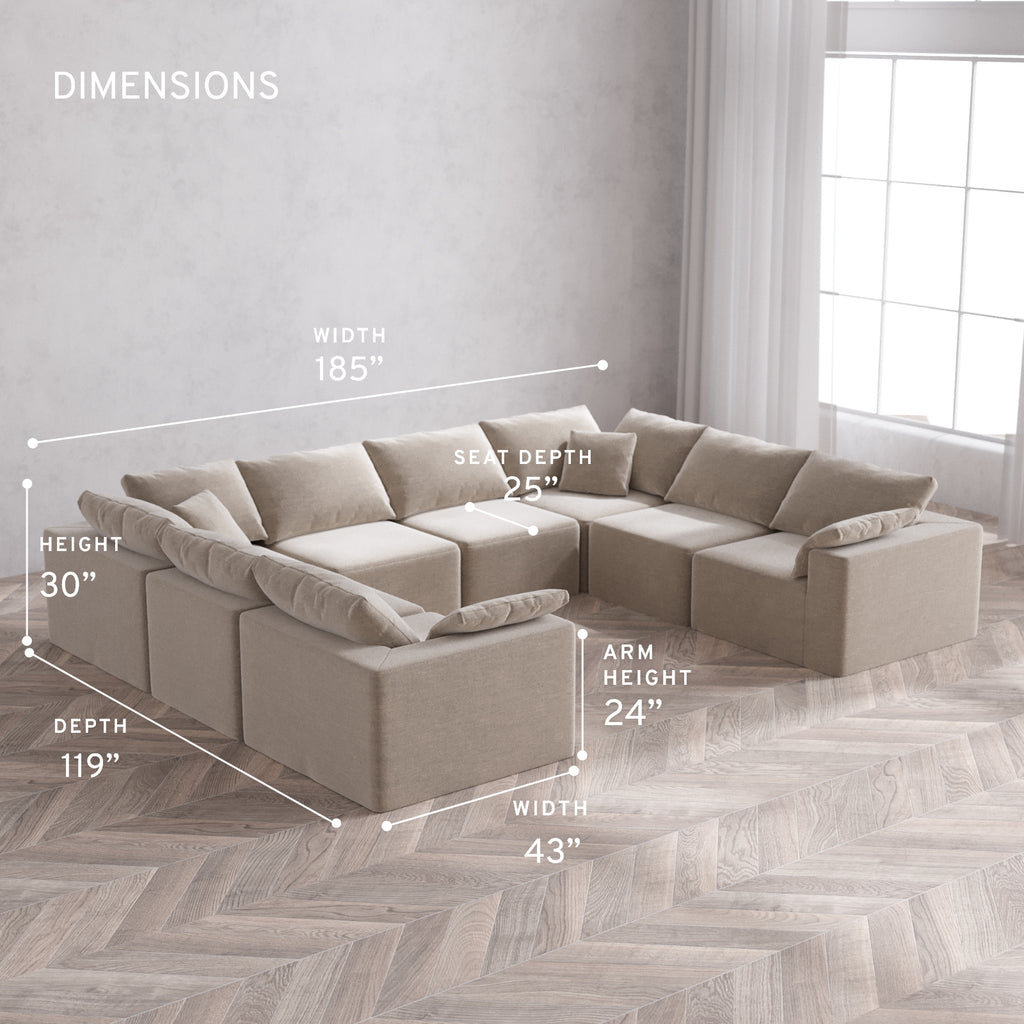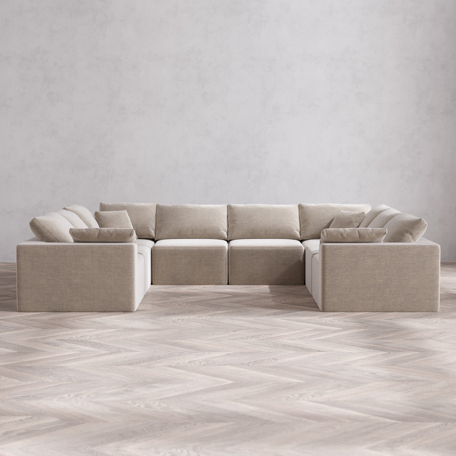 Modular Washable 8-Seater U Sectional Cloud Sofa | Satin Velvet in Caraway