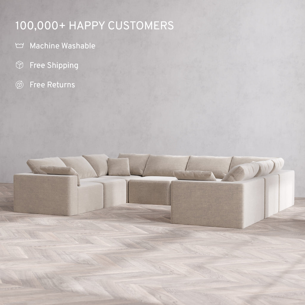 The Only Washable Cloud Sofa: With a waterproof frame and fabrics that resist pets, stains, and spills, this sofa is made to handle everyday messes. Our patent-pending covers are machine washable and fully interchangeable—buy extra sets to change up your look anytime.
