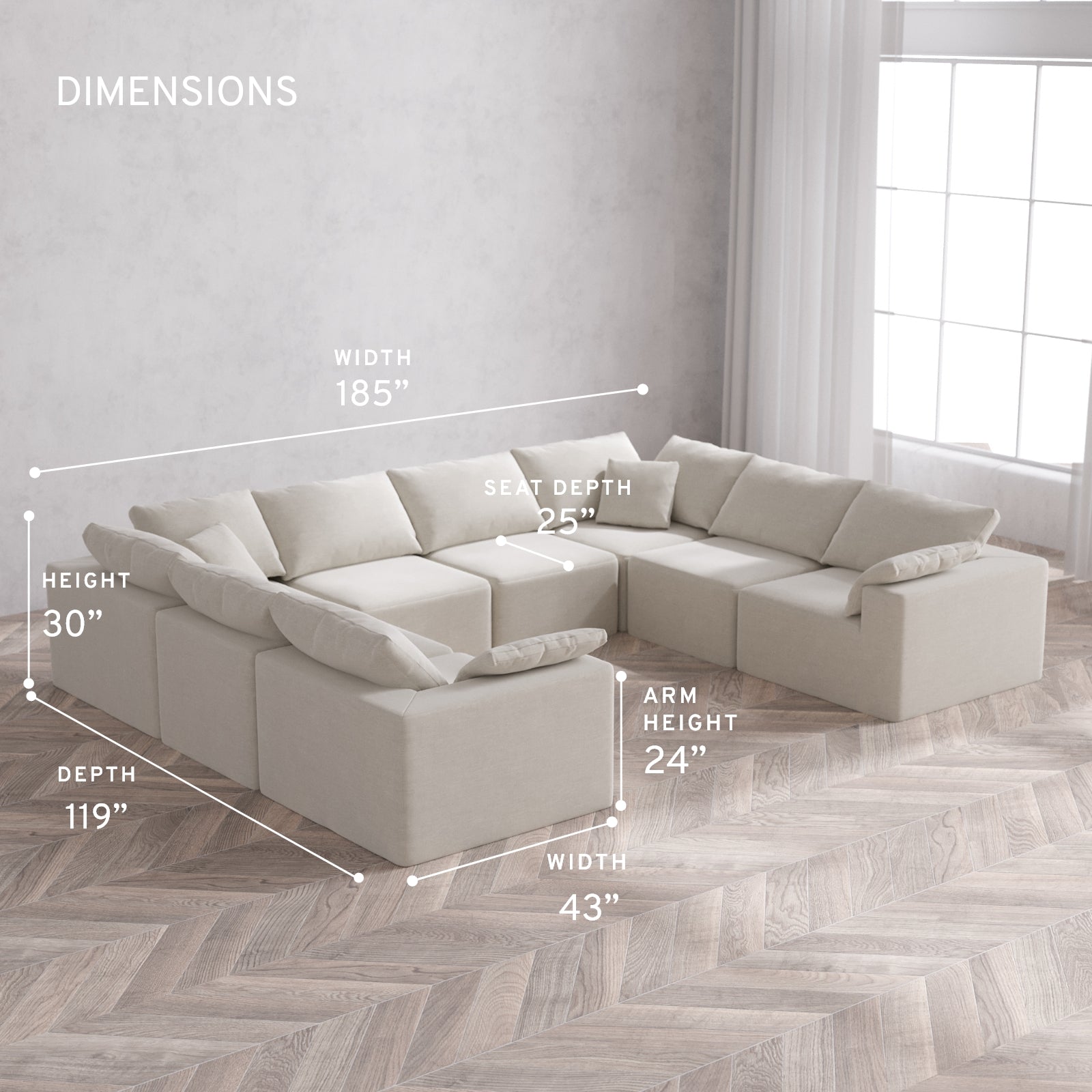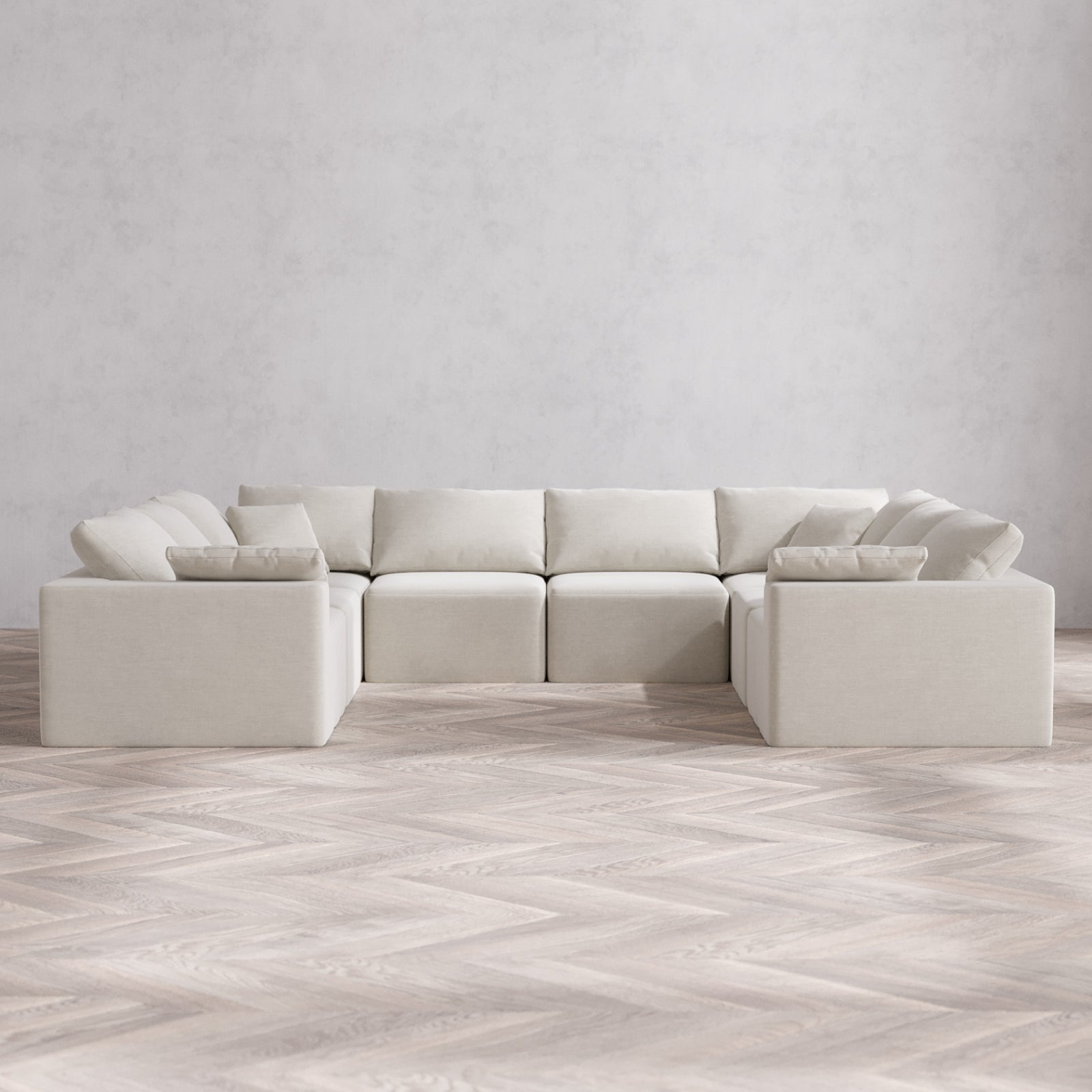 Modular Washable 8-Seater U Sectional Cloud Sofa | Satin Velvet in Cashew