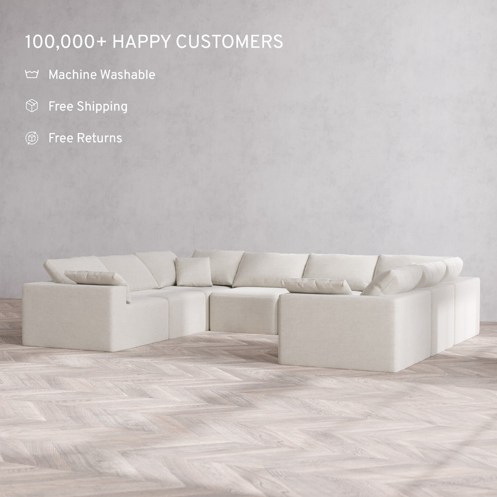 The Only Washable Cloud Sofa: With a waterproof frame and fabrics that resist pets, stains, and spills, this sofa is made to handle everyday messes. Our patent-pending covers are machine washable and fully interchangeable—buy extra sets to change up your look anytime.