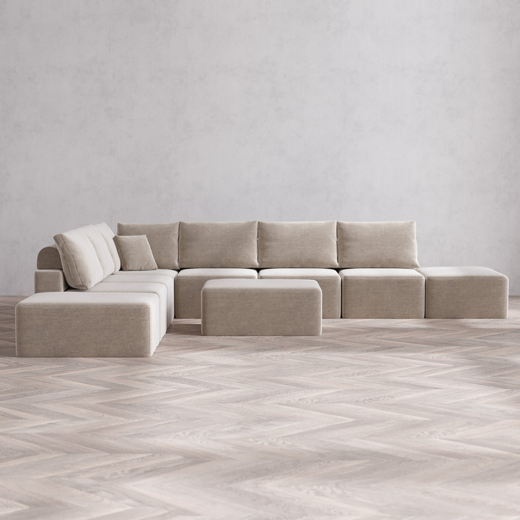 Designed with true flexibility in mind, our modular system adapts to your space and your lifestyle. Whether you're expanding, downsizing, or simply reimagining your layout, each piece connects effortlessly to create a configuration that works for you—today, and as life changes.
