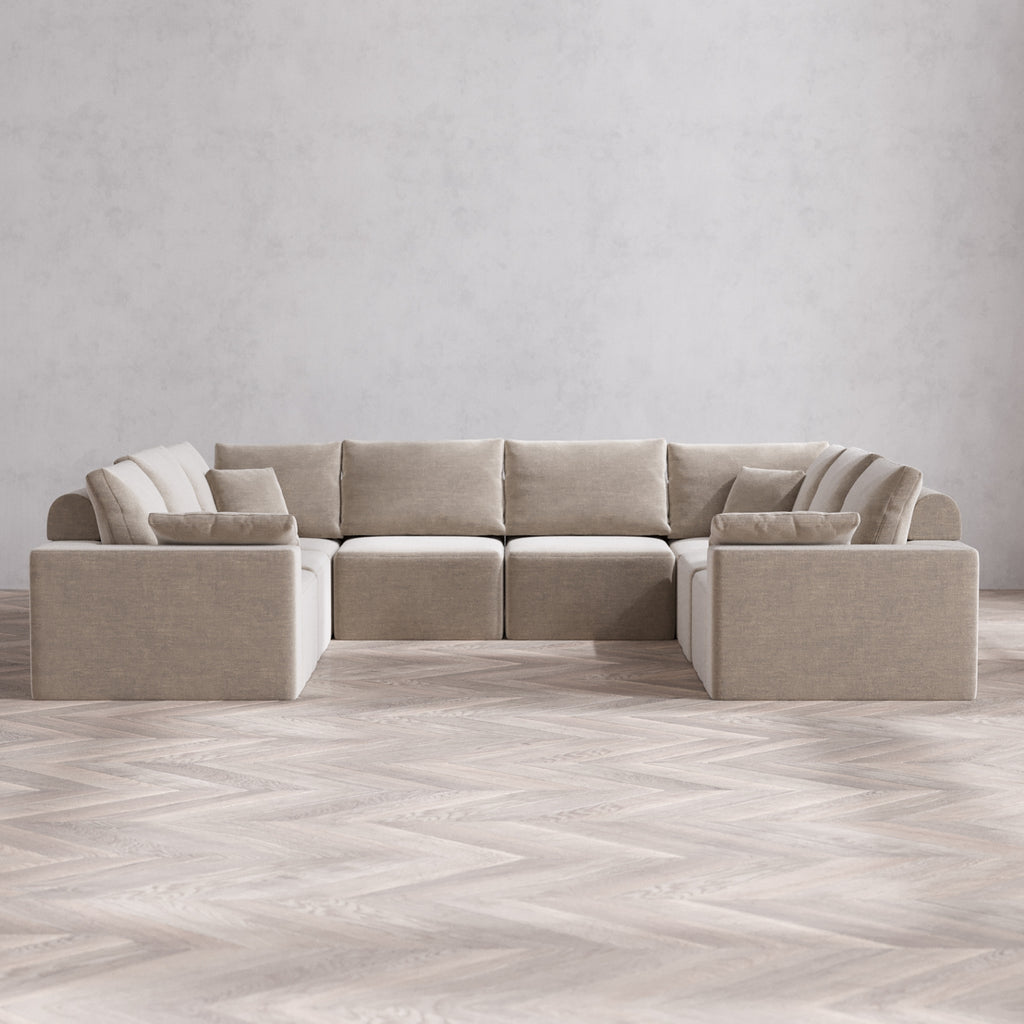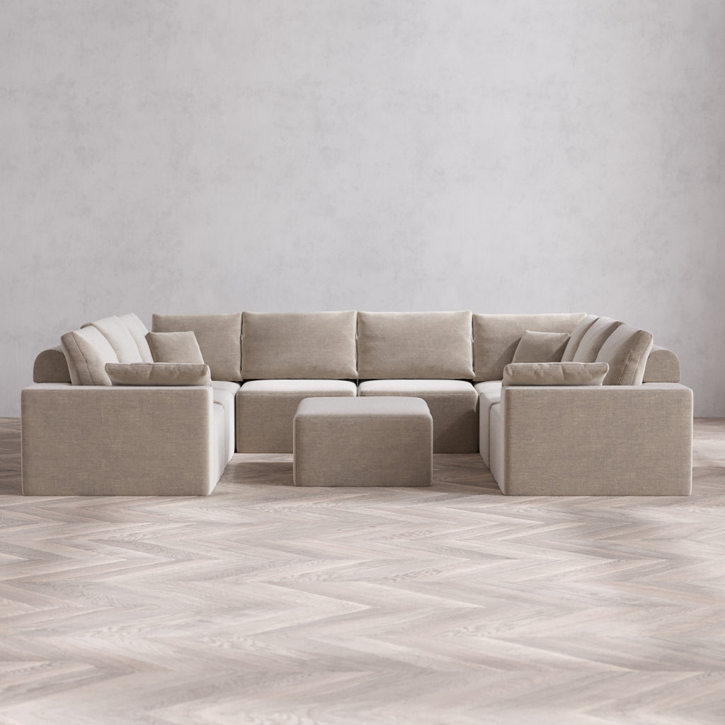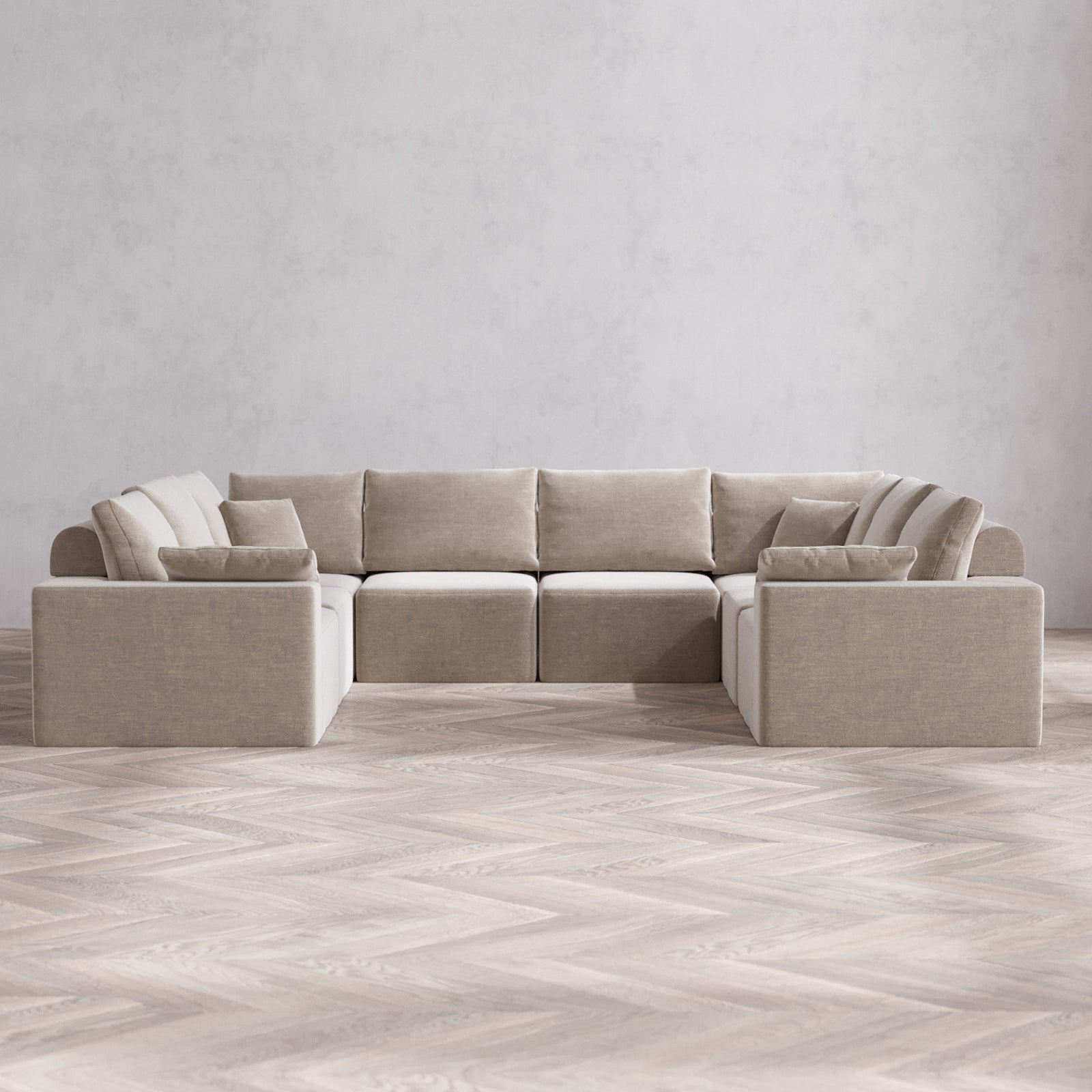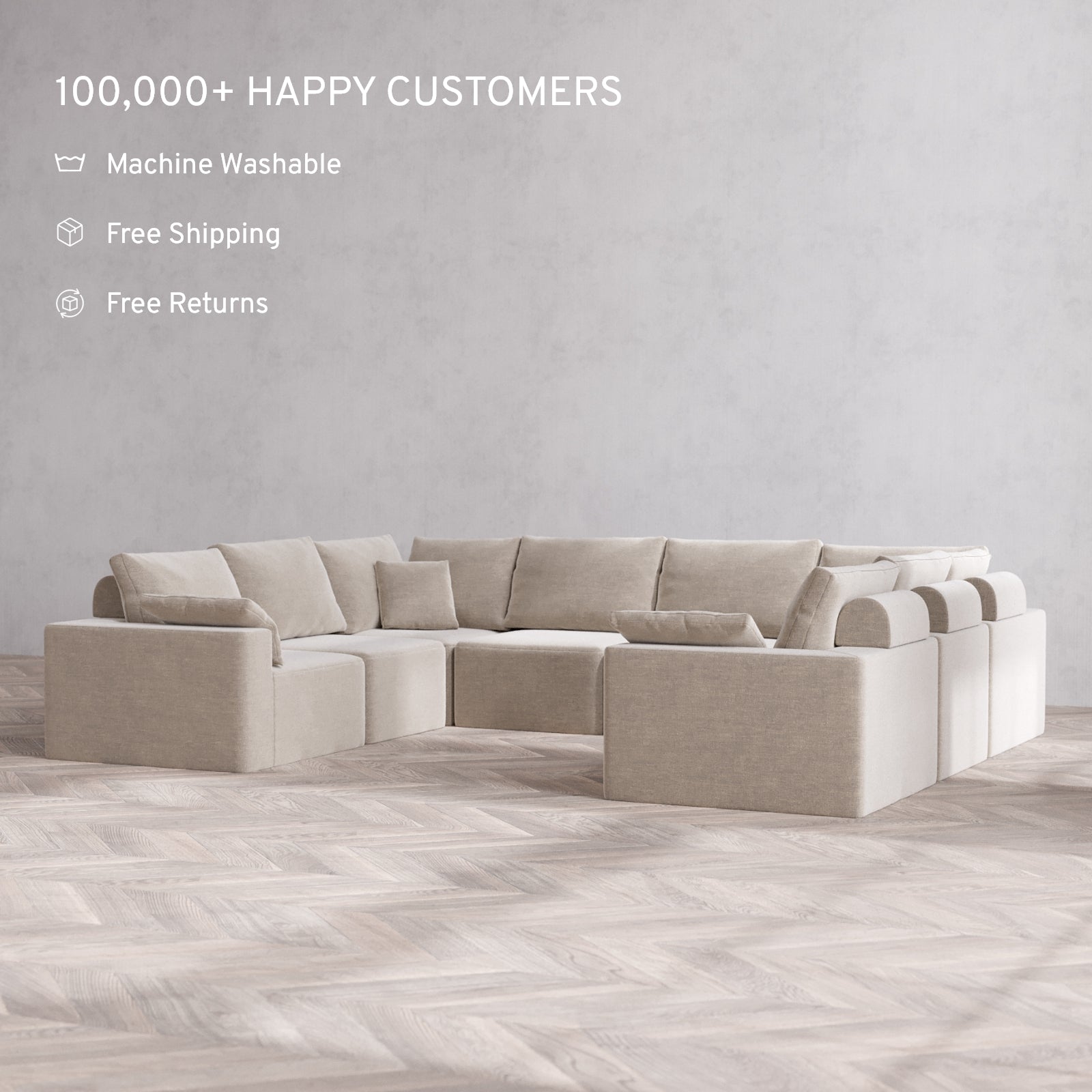 Modular Washable 8-Seater U Sectional Cloud + Bolster Sofa | Satin Velvet in Caraway