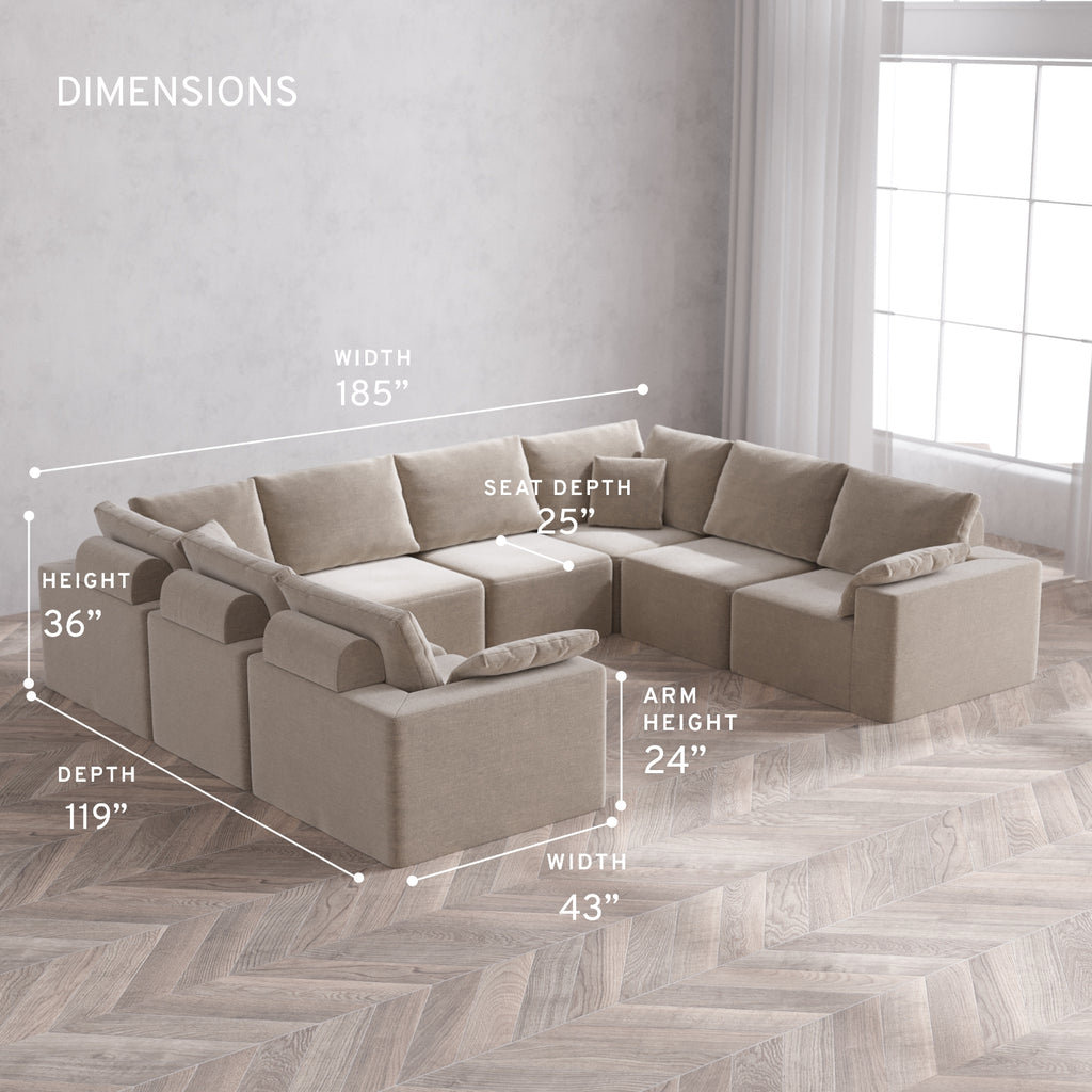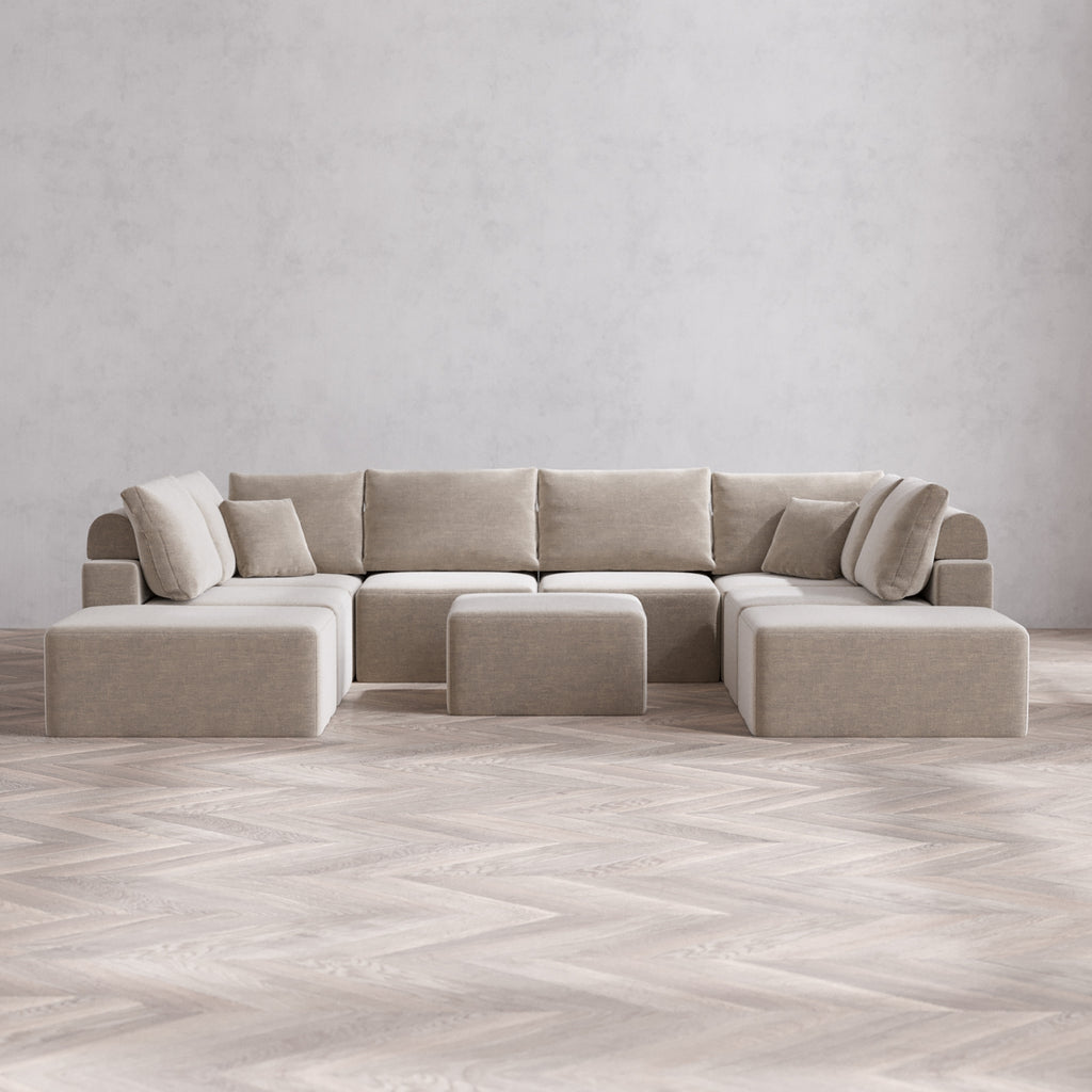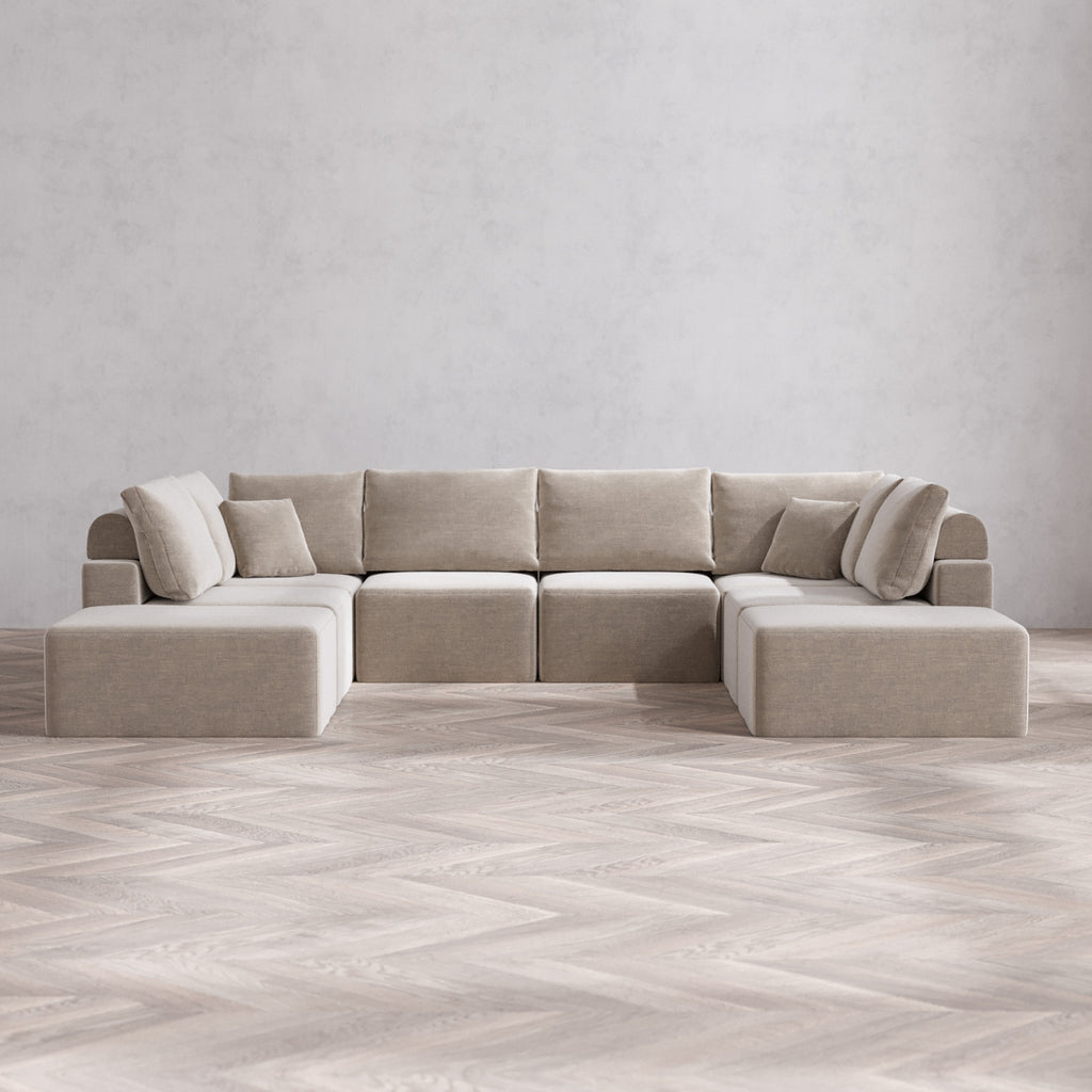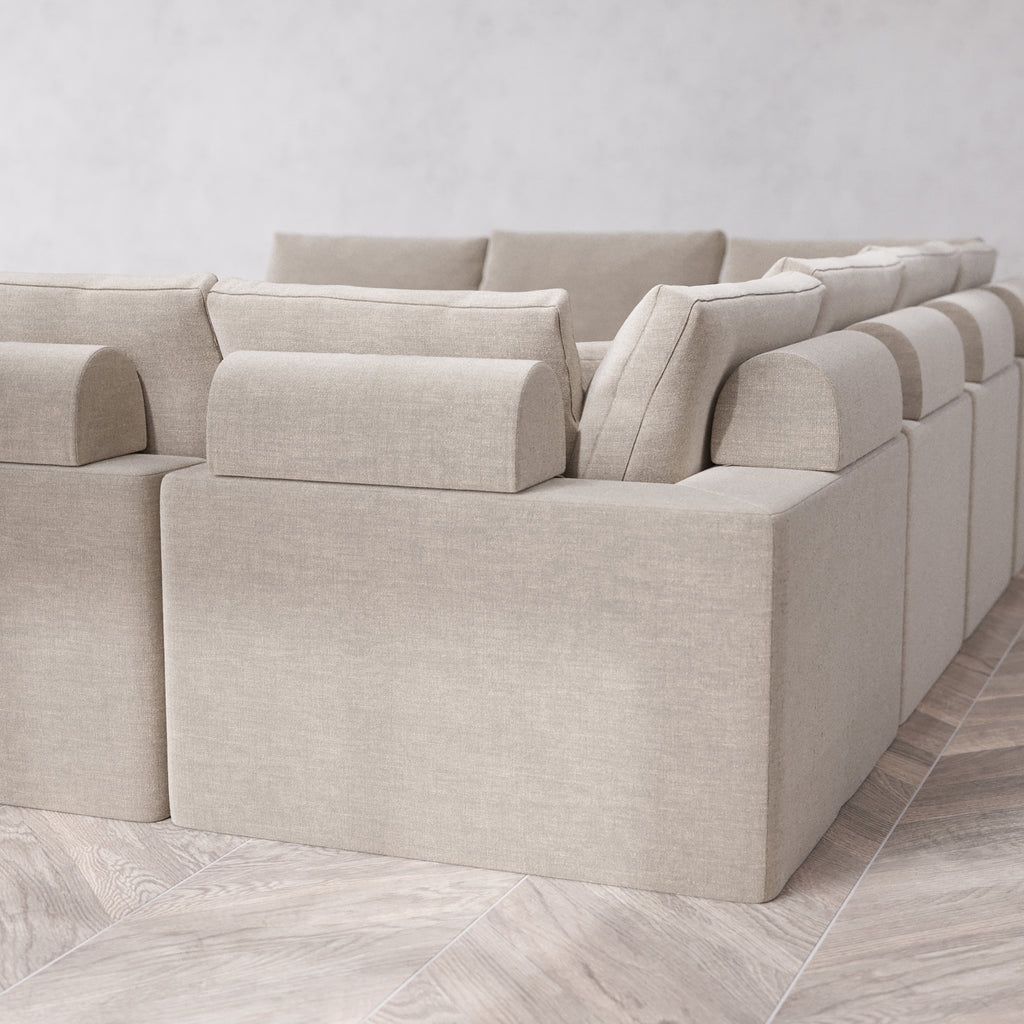Modular Washable 8-Seater U Sectional Cloud + Bolster Sofa | Satin Velvet in Caraway