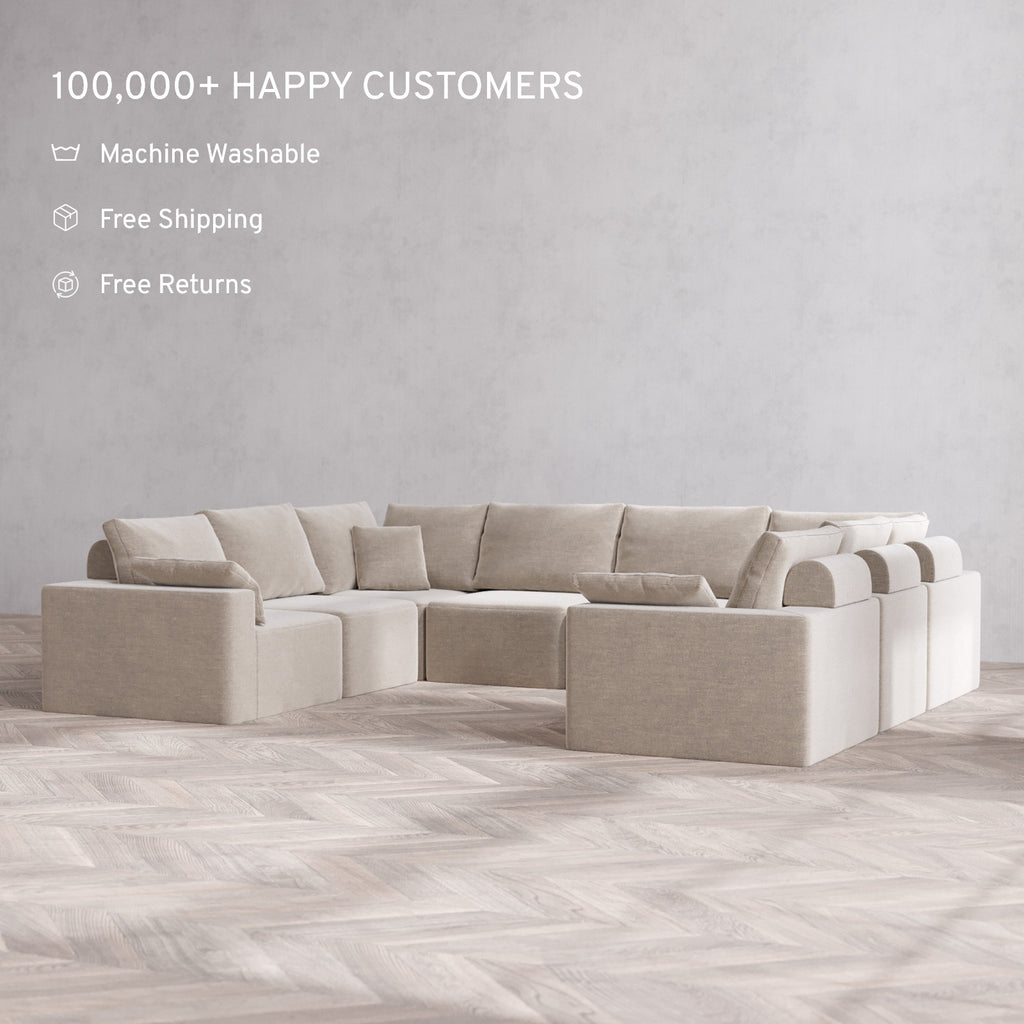 The Only Washable Cloud Sofa: With a waterproof frame and fabrics that resist pets, stains, and spills, this sofa is made to handle everyday messes. Our patent-pending covers are machine washable and fully interchangeable—buy extra sets to change up your look anytime.