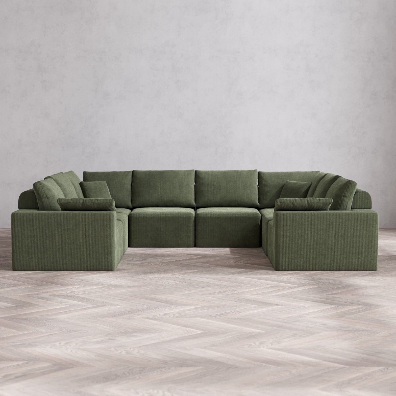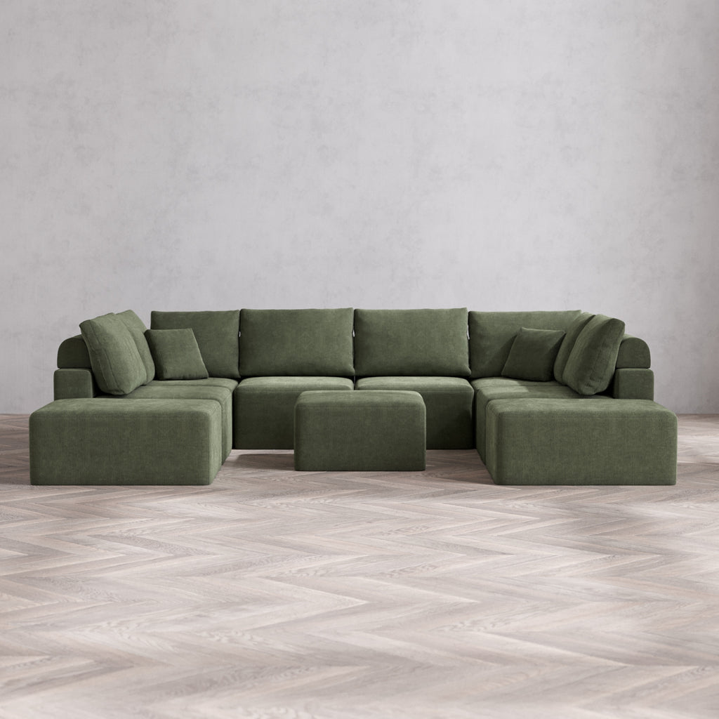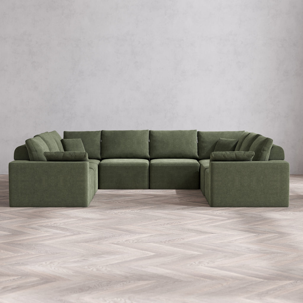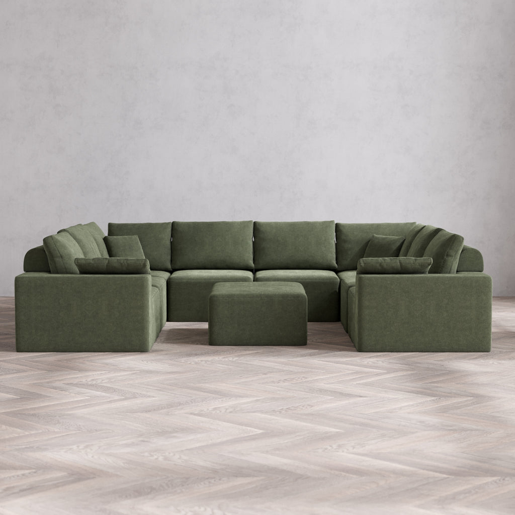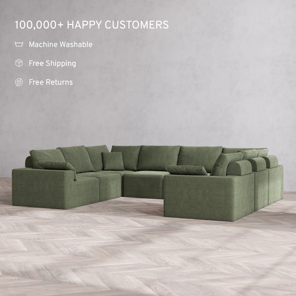 Modular Washable 8-Seater U Sectional Cloud + Bolster Sofa | Luxe Corduroy in Juniper
