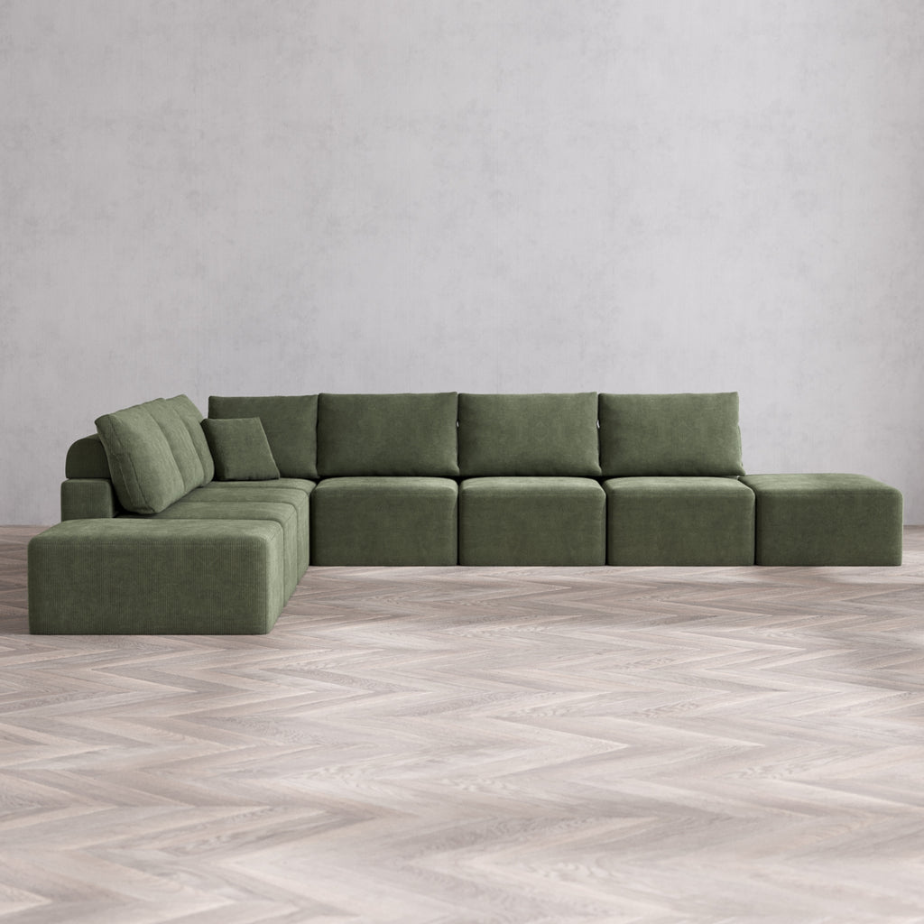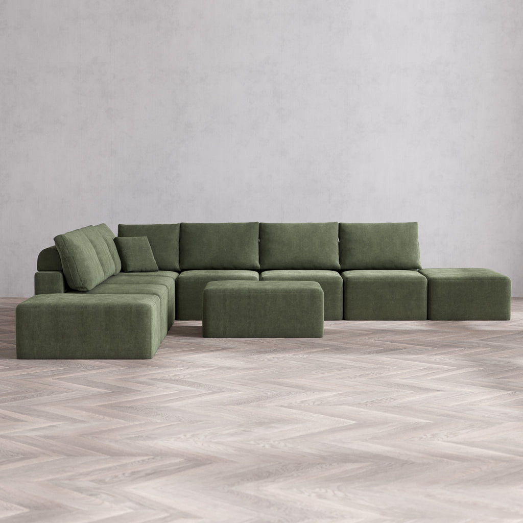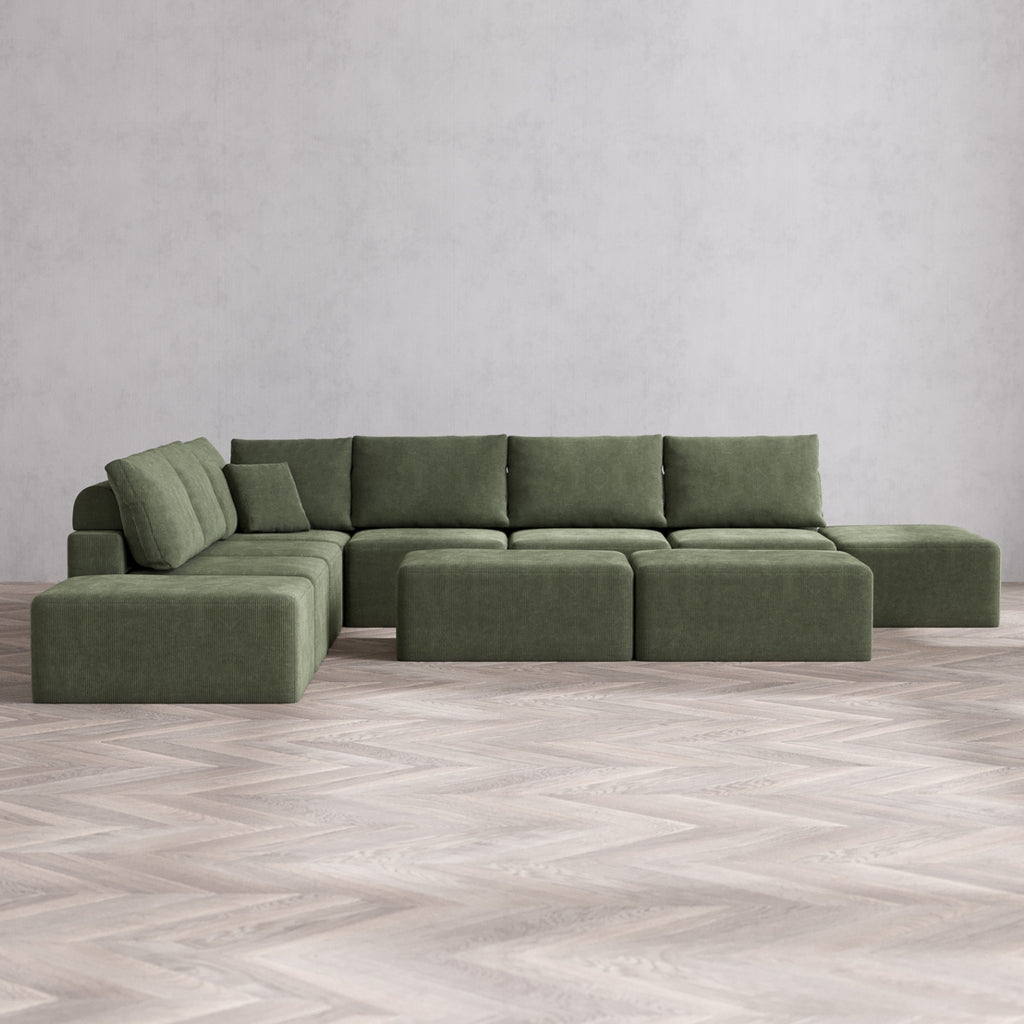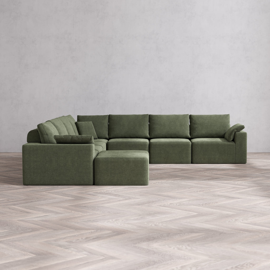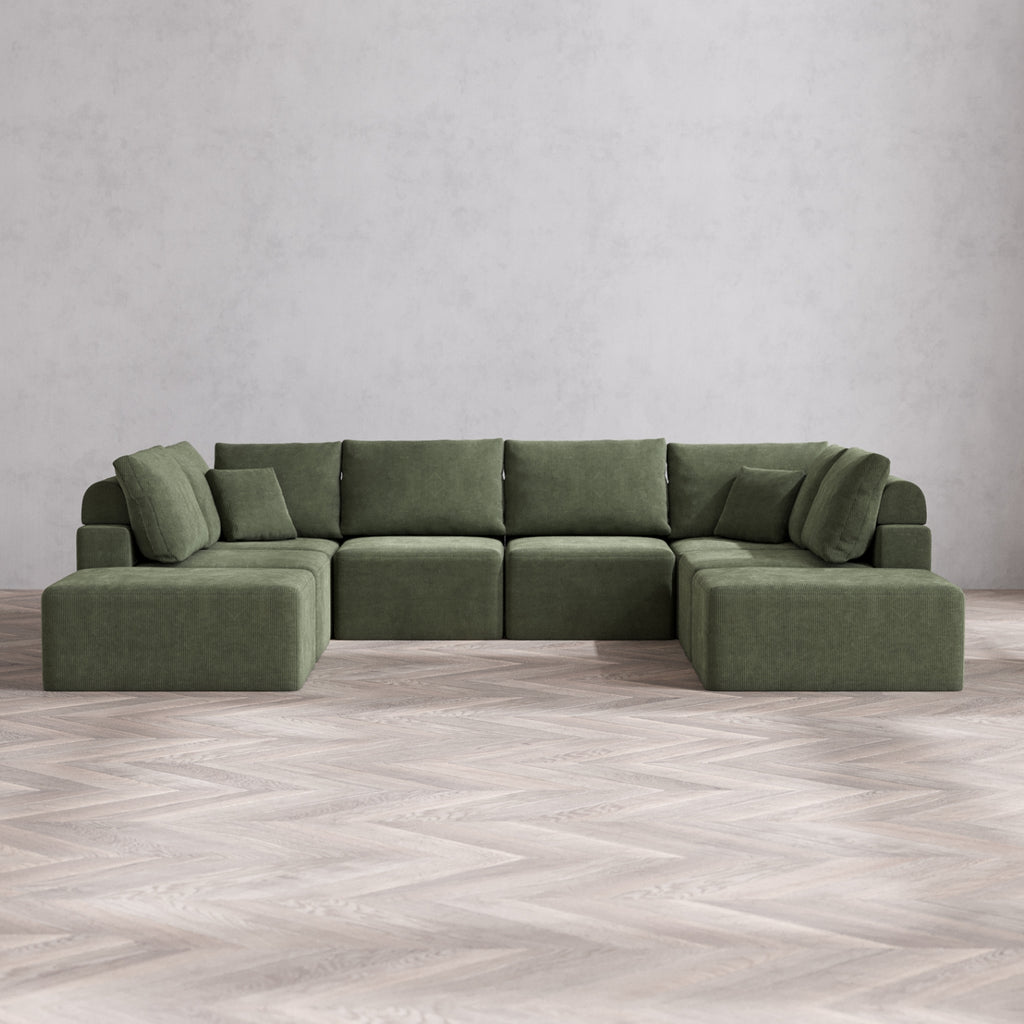 Modular Washable 8-Seater U Sectional Cloud + Bolster Sofa | Luxe Corduroy in Juniper