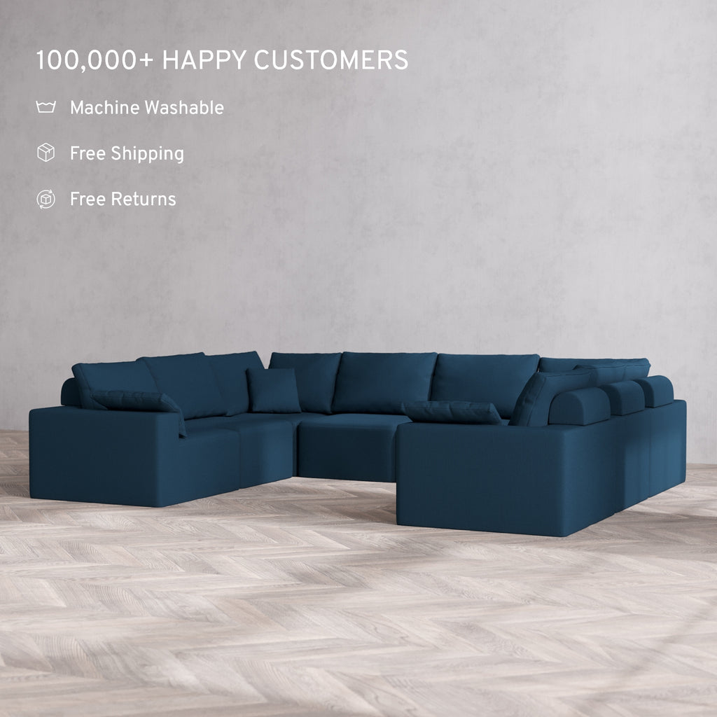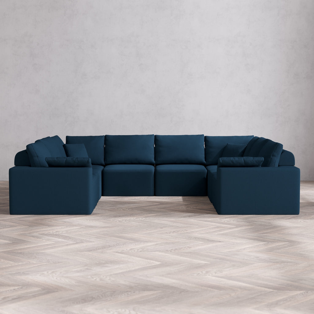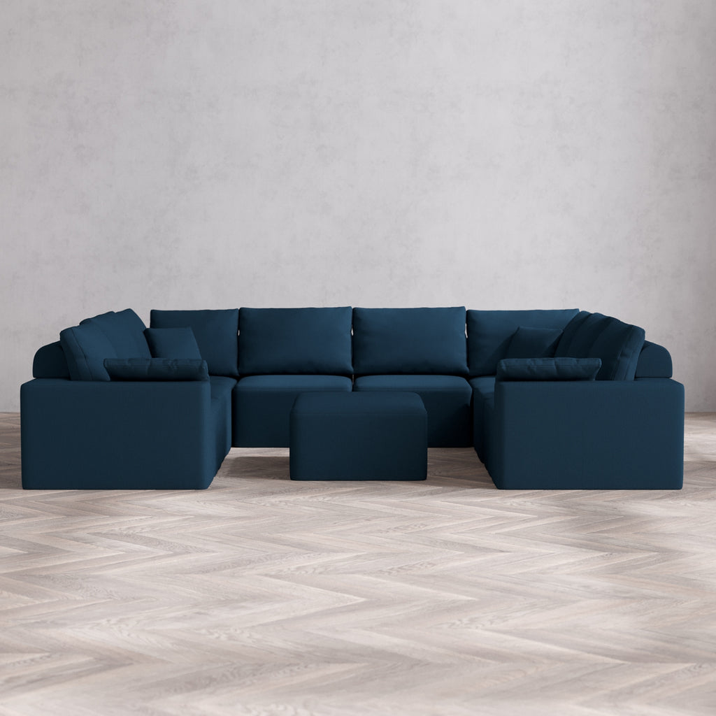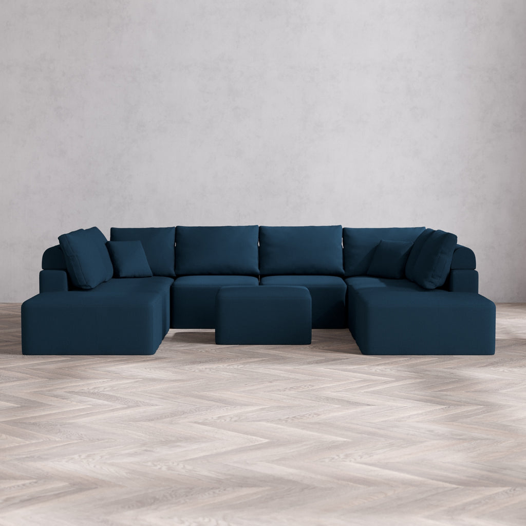 Modular Washable 8-Seater U Sectional Cloud + Bolster Sofa | Arden Weave in Lazuli
