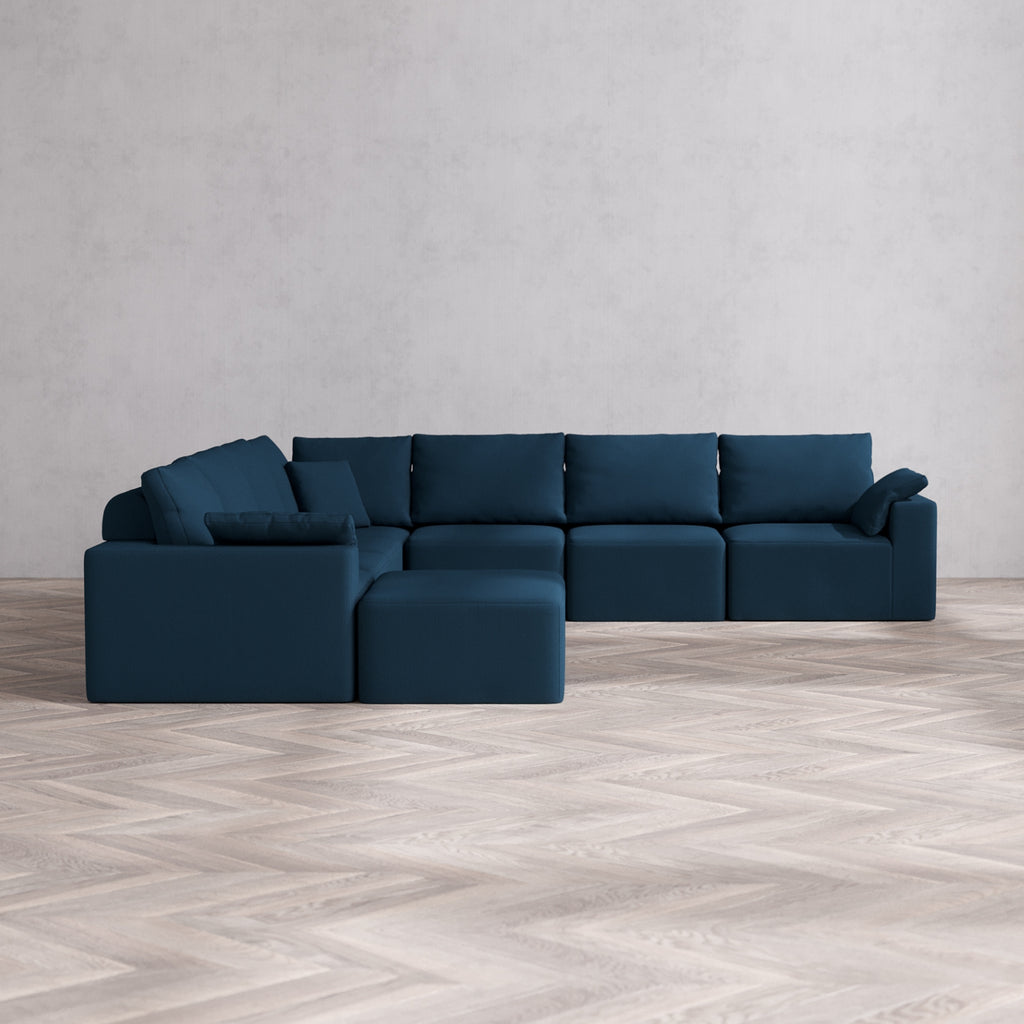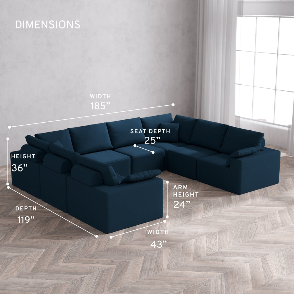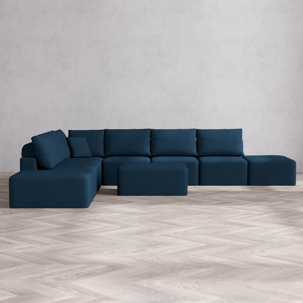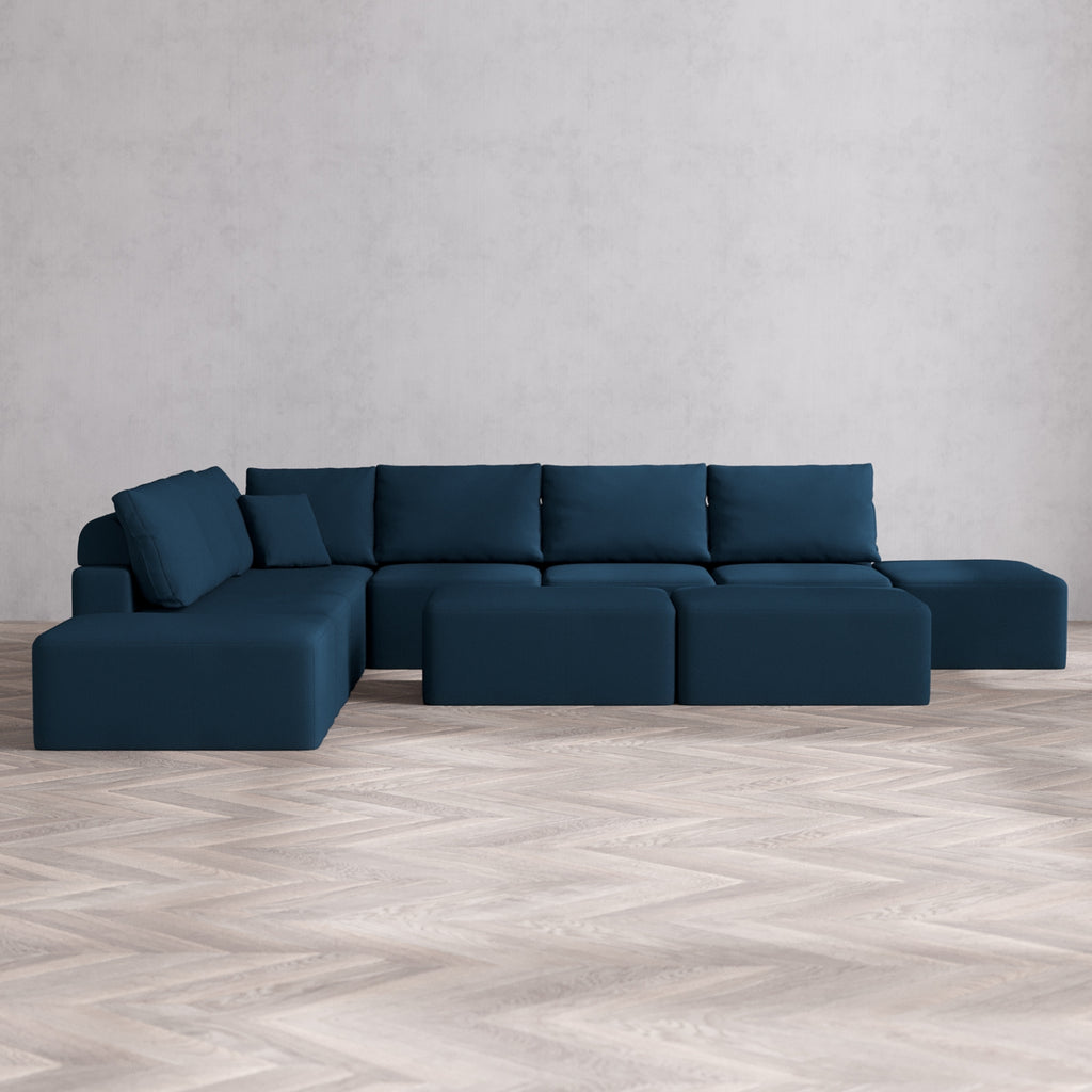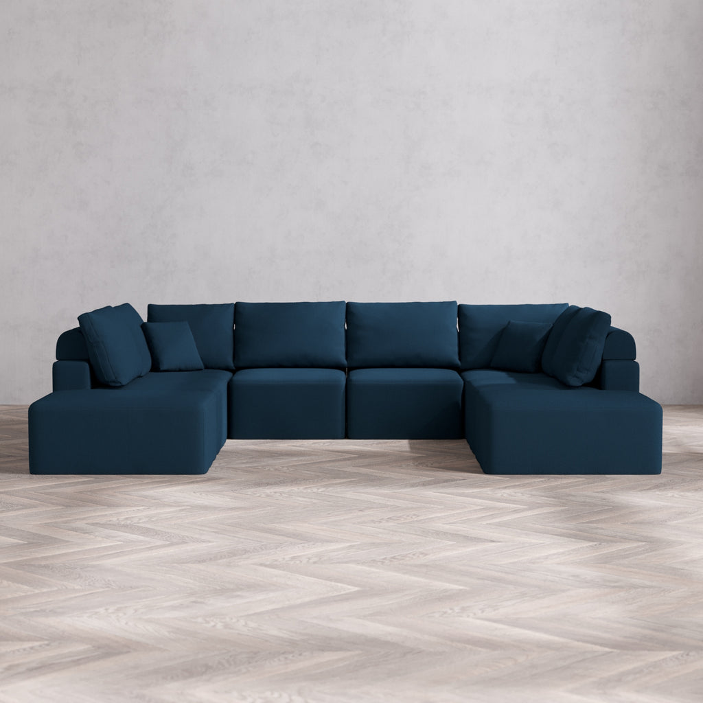 Modular Washable 8-Seater U Sectional Cloud + Bolster Sofa | Arden Weave in Lazuli
