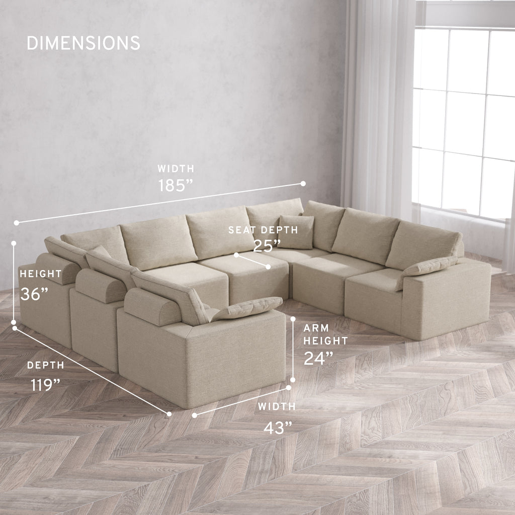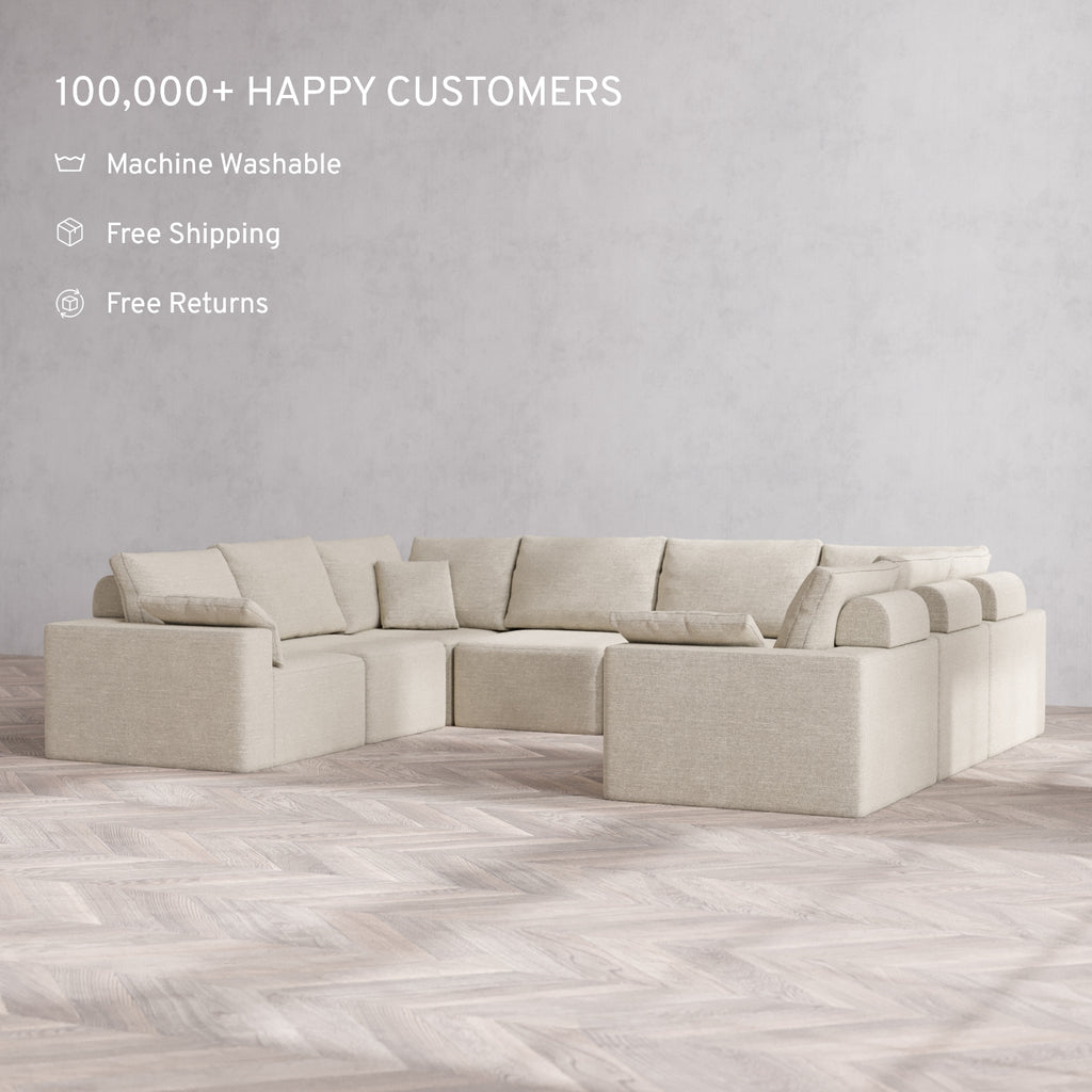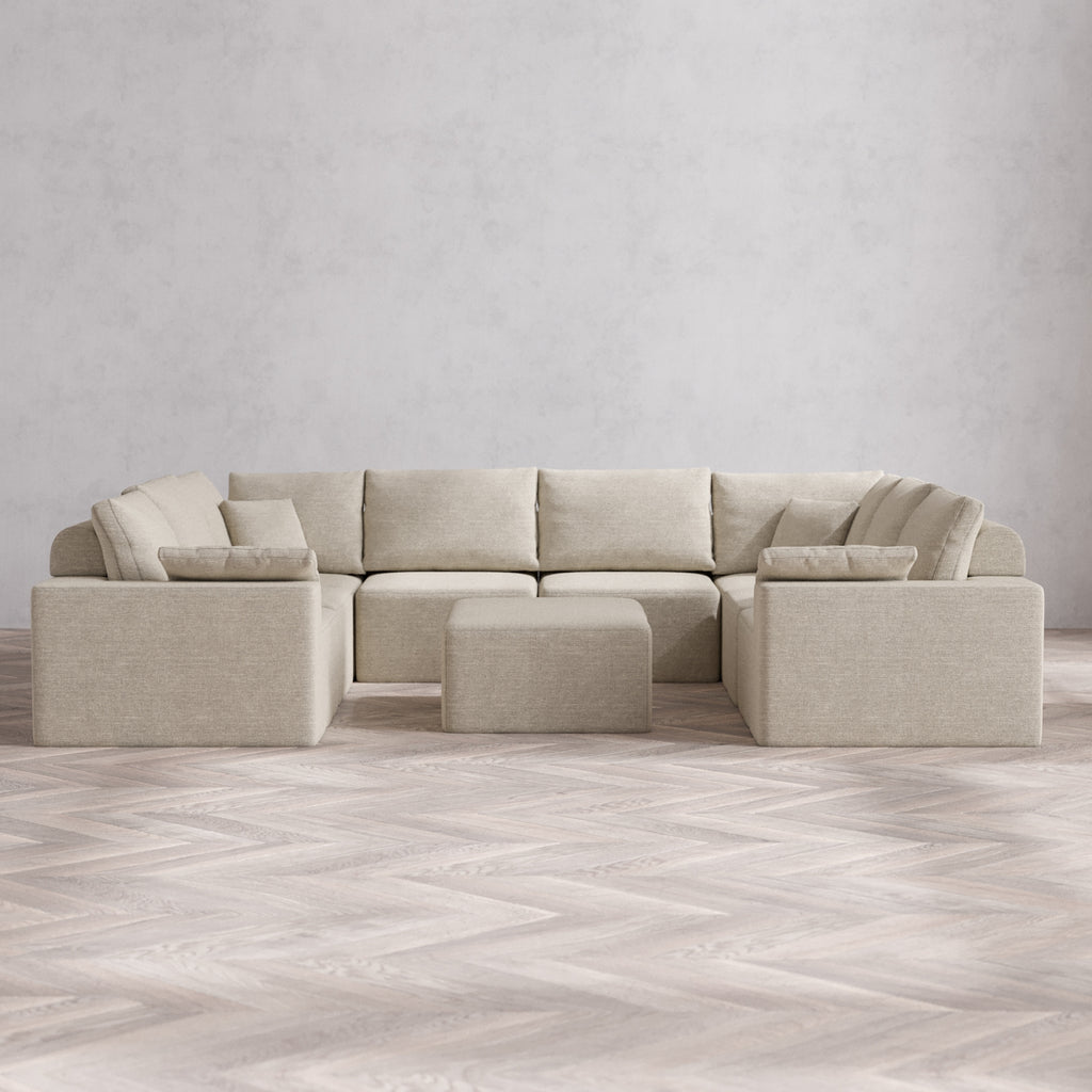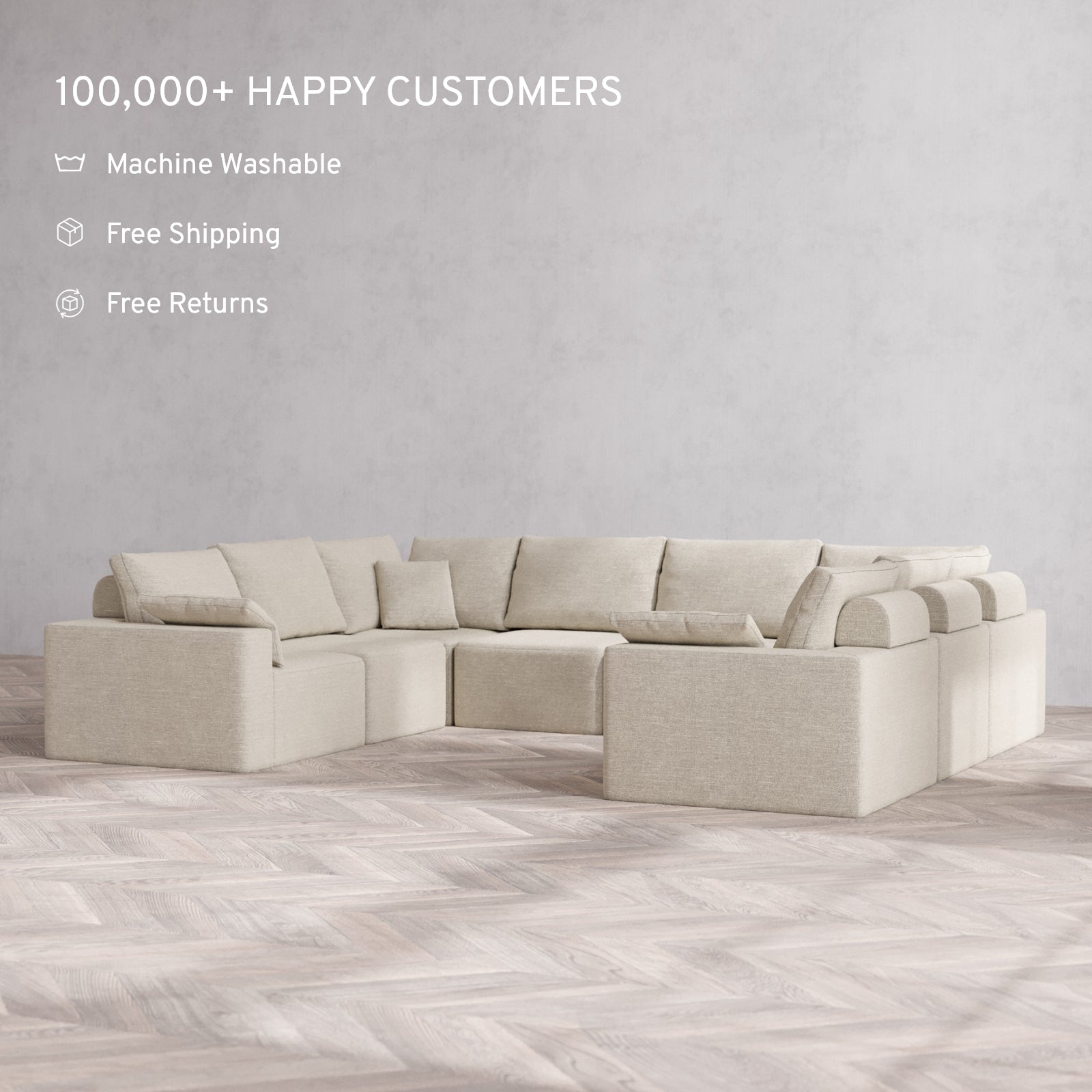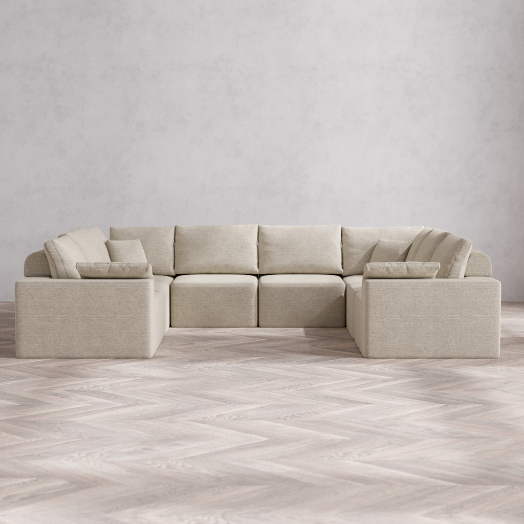 Modular Washable 8-Seater U Sectional Cloud + Bolster Sofa | Plush Twill in Sandstone