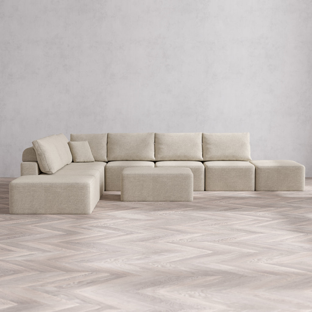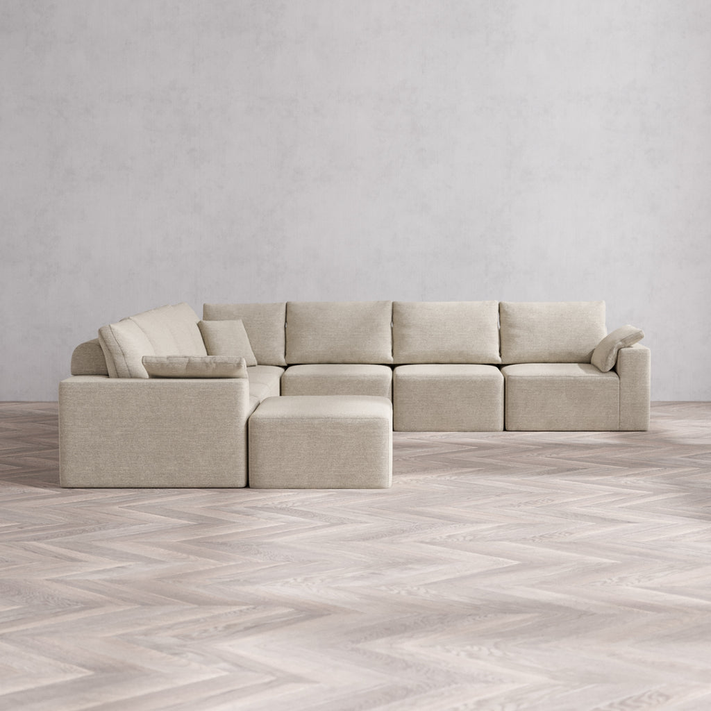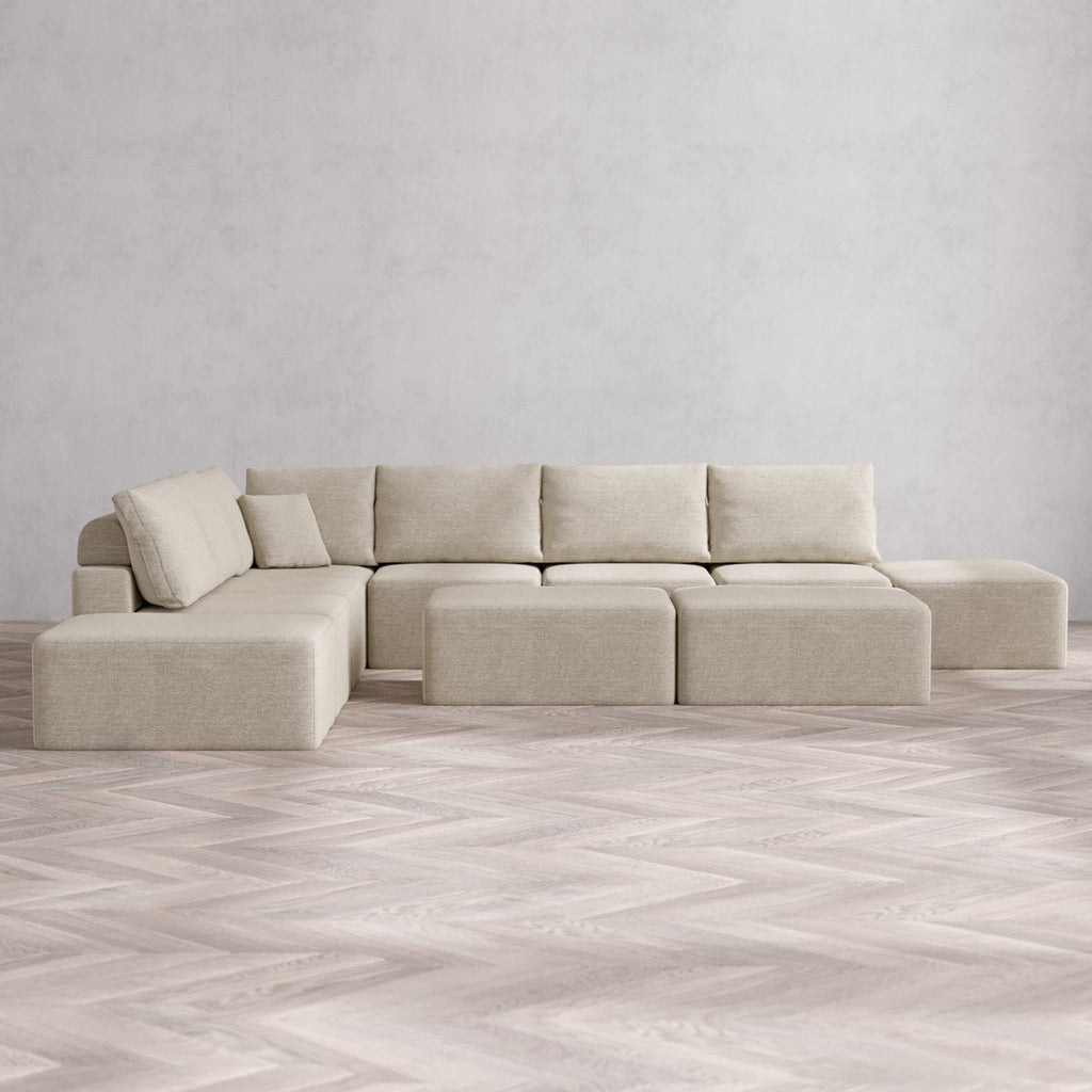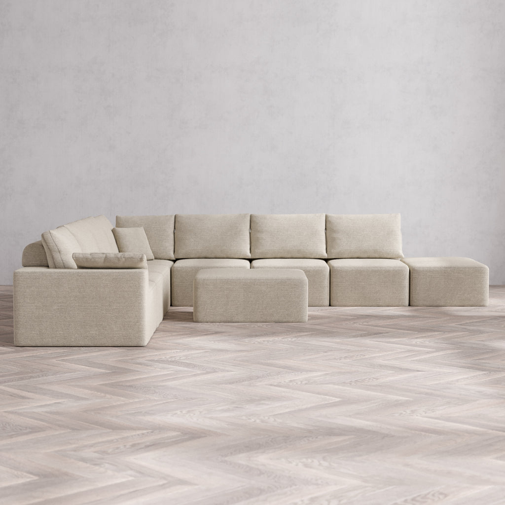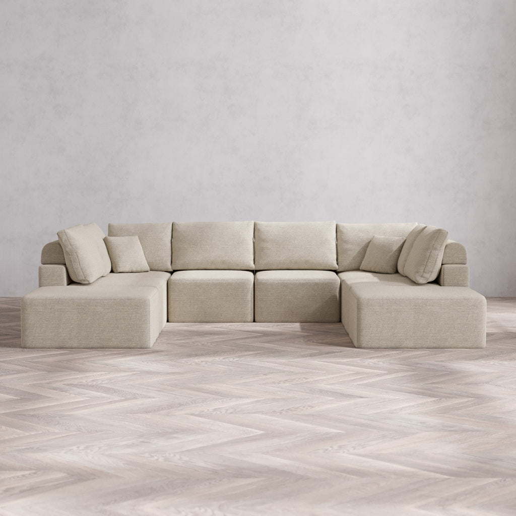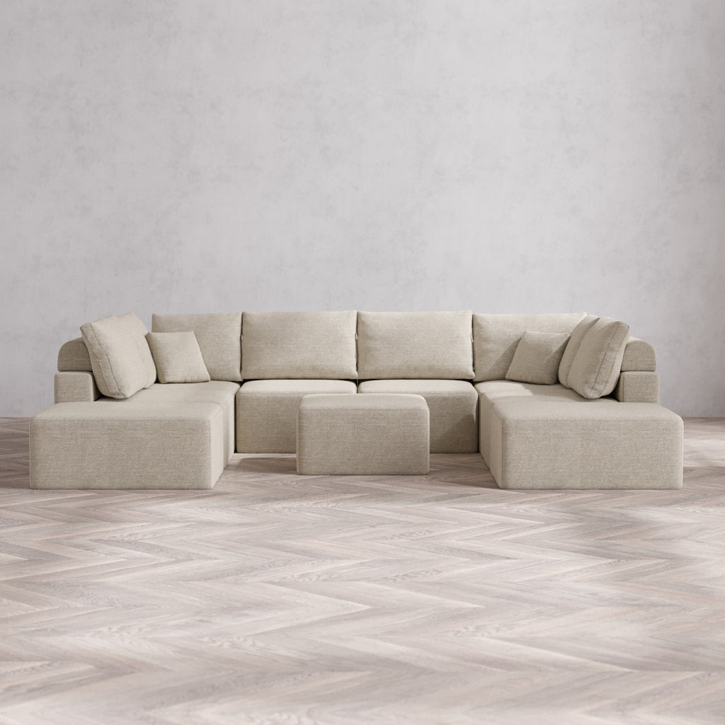 Modular Washable 8-Seater U Sectional Cloud + Bolster Sofa | Plush Twill in Sandstone
