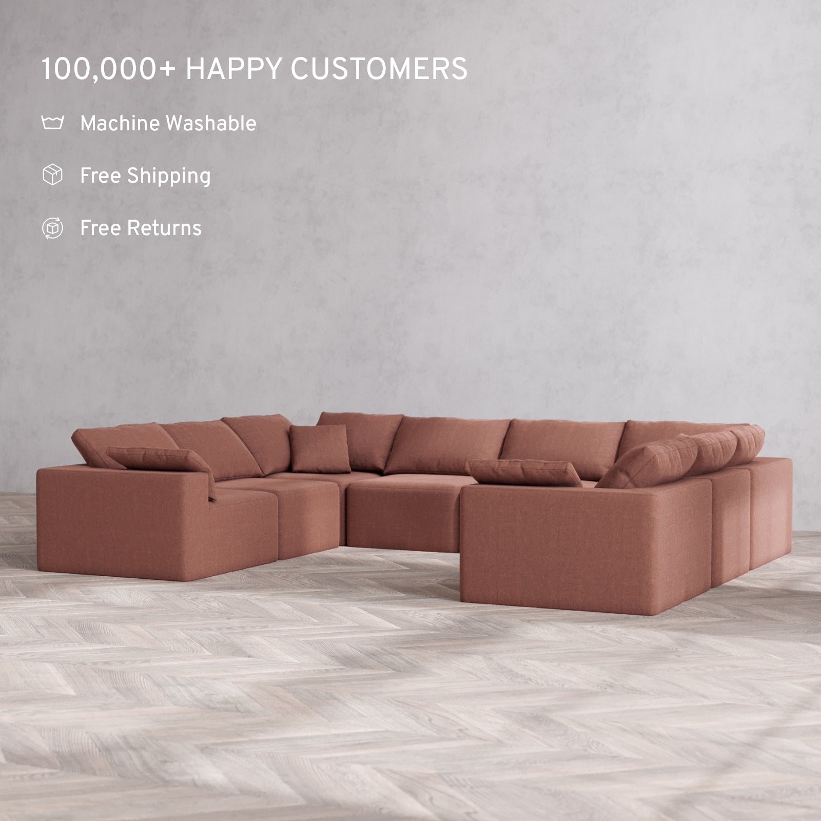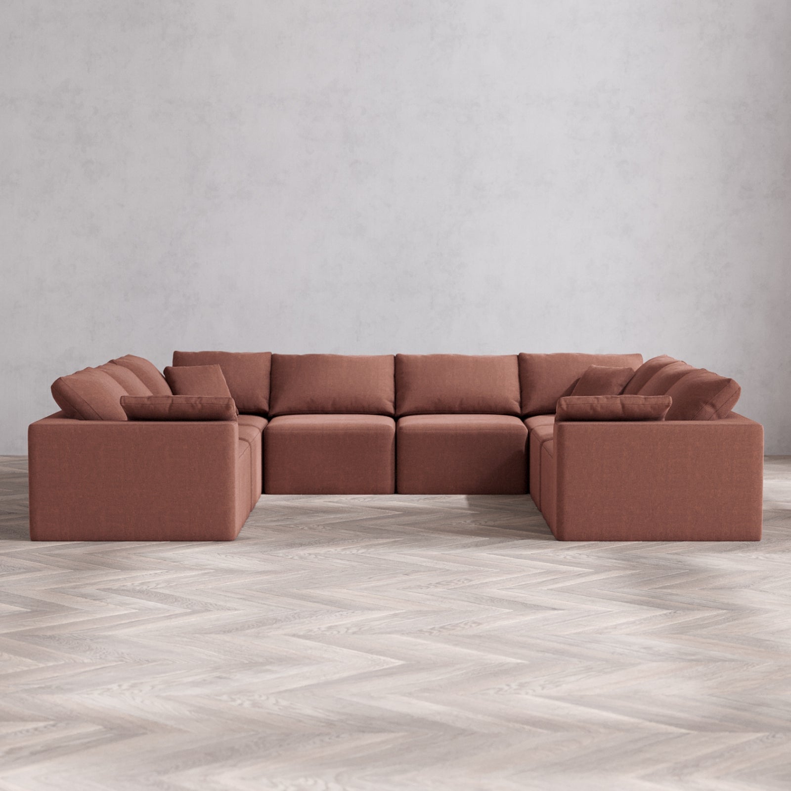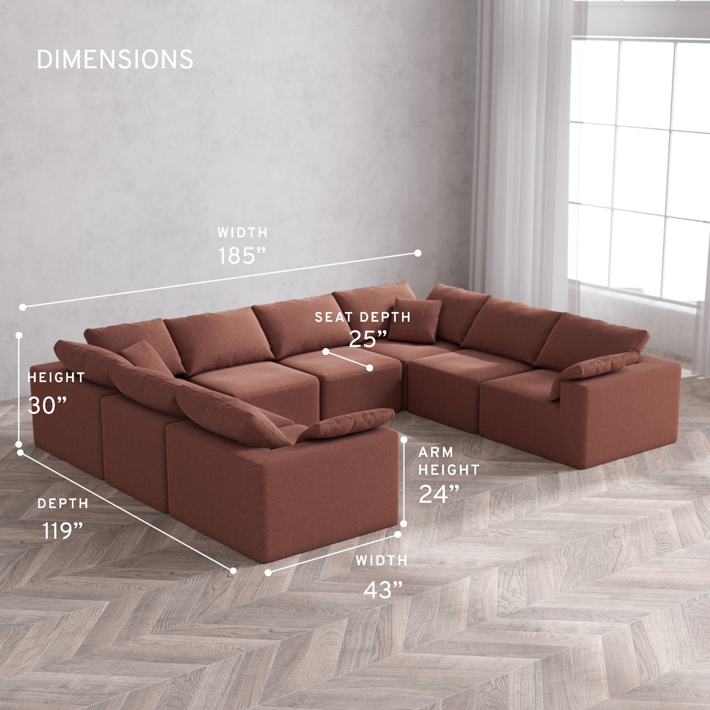 Modular Washable 8-Seater U Sectional Cloud Sofa | Heirloom Velvet in Sumac