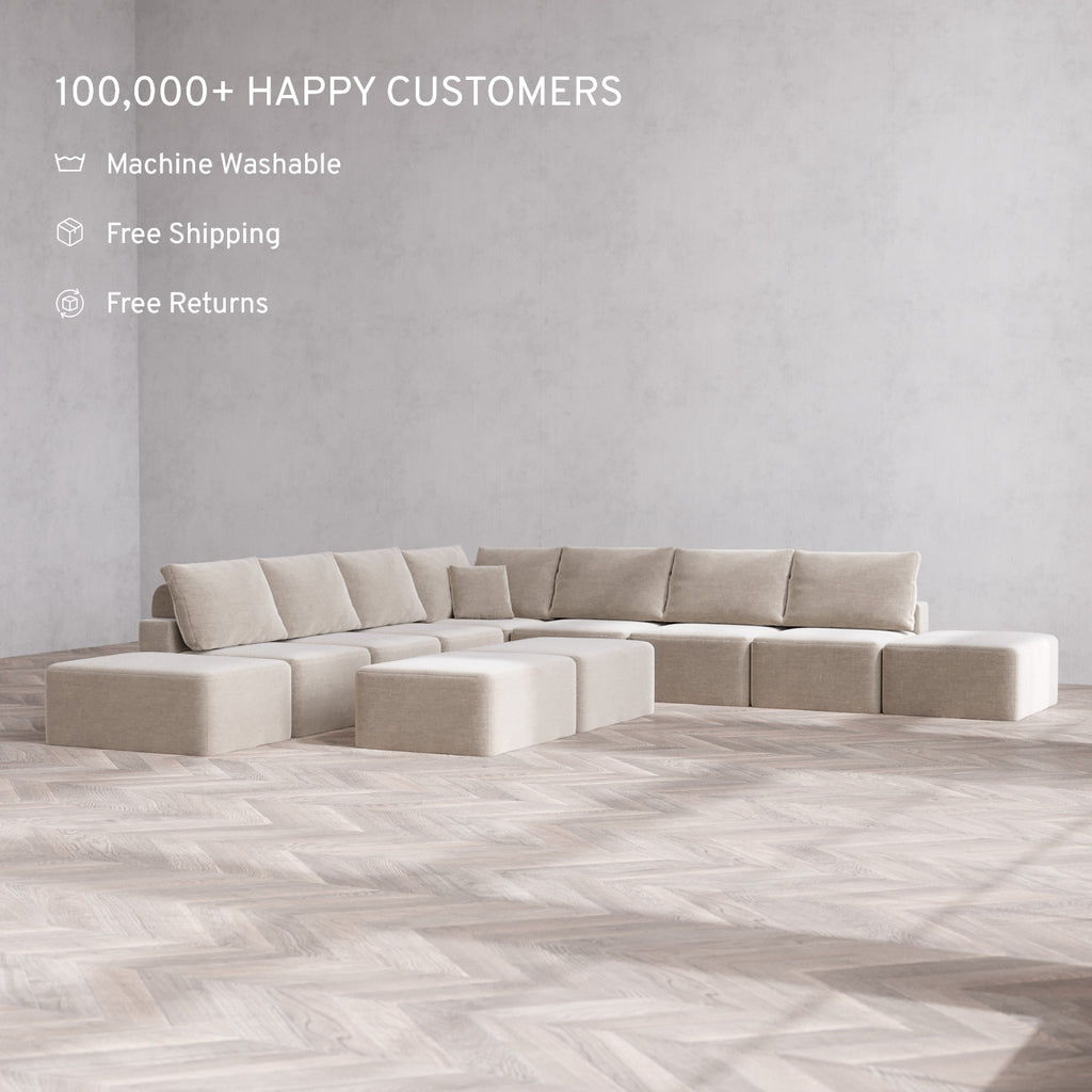 The Only Washable Cloud Sofa: With a waterproof frame and fabrics that resist pets, stains, and spills, this sofa is made to handle everyday messes. Our patent-pending covers are machine washable and fully interchangeable—buy extra sets to change up your look anytime.