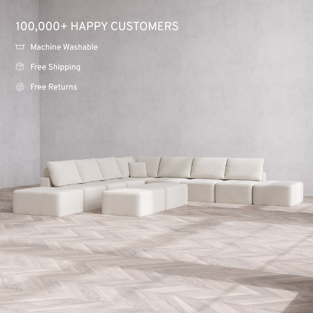 Machine Washable: Every piece of fabric—including the internal quilted duvet—is fully removable and machine washable. It’s the only Cloud-style sofa you can truly deep clean, effortlessly.