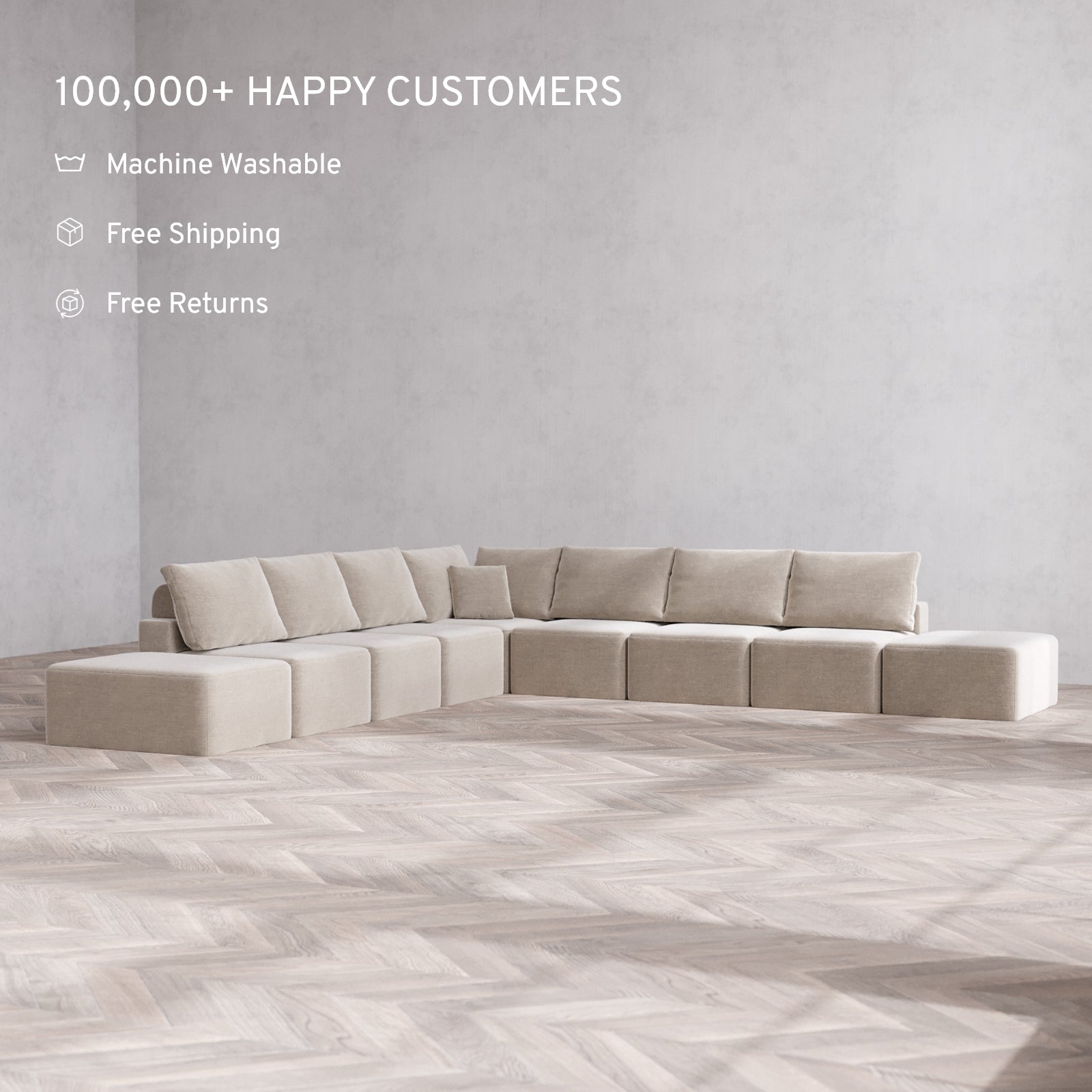 Machine Washable: Every piece of fabric—including the internal quilted duvet—is fully removable and machine washable. It’s the only Cloud-style sofa you can truly deep clean, effortlessly.