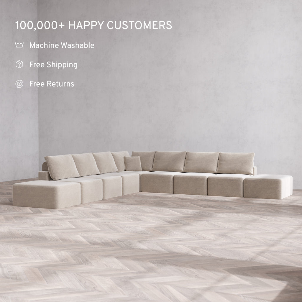 The Only Washable Cloud Sofa: With a waterproof frame and fabrics that resist pets, stains, and spills, this sofa is made to handle everyday messes. Our patent-pending covers are machine washable and fully interchangeable—buy extra sets to change up your look anytime.