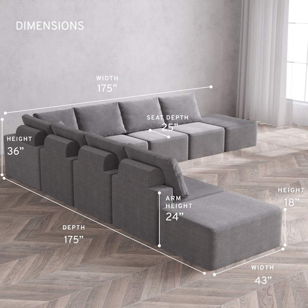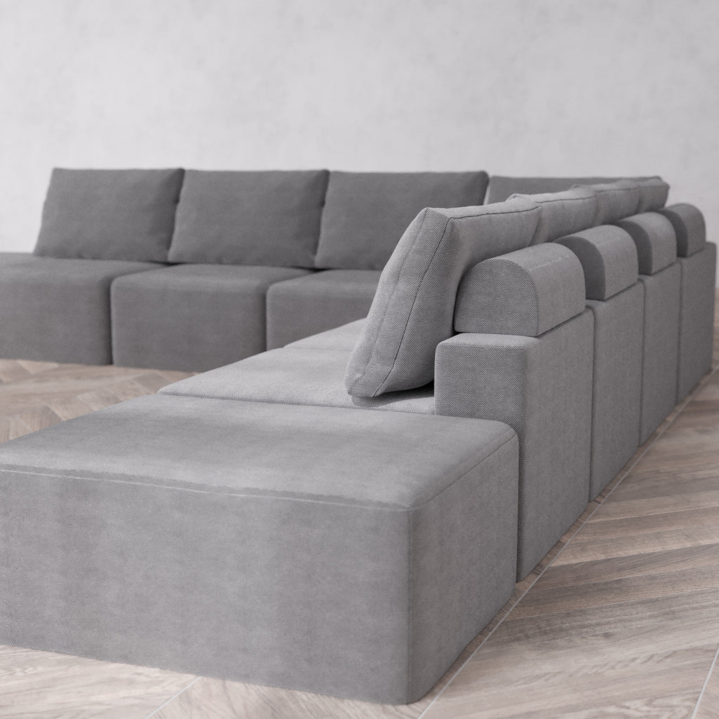 Modular Washable 9-Seater Open-Ends Corner Sectional Cloud + Bolster Sofa | Lux Weave in Slate