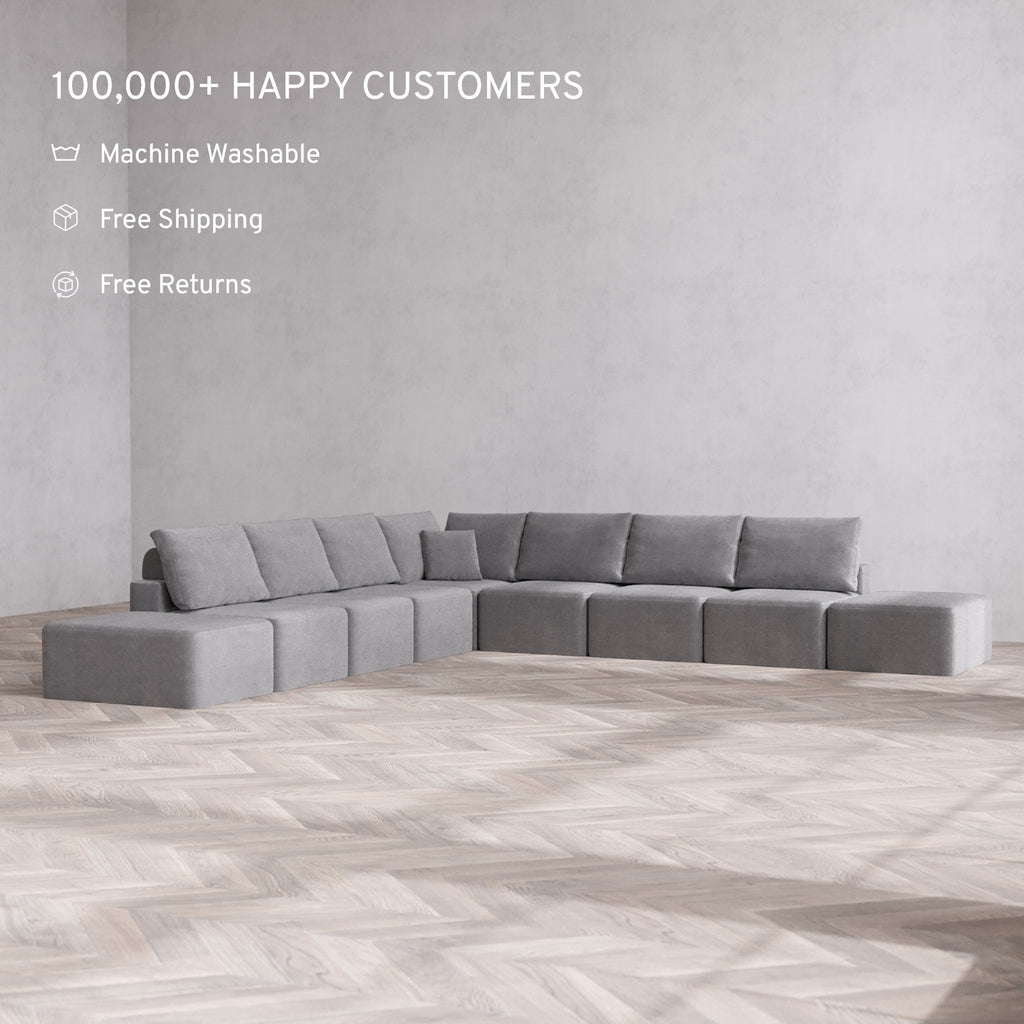 The Only Washable Cloud Sofa: With a waterproof frame and fabrics that resist pets, stains, and spills, this sofa is made to handle everyday messes. Our patent-pending covers are machine washable and fully interchangeable—buy extra sets to change up your look anytime.