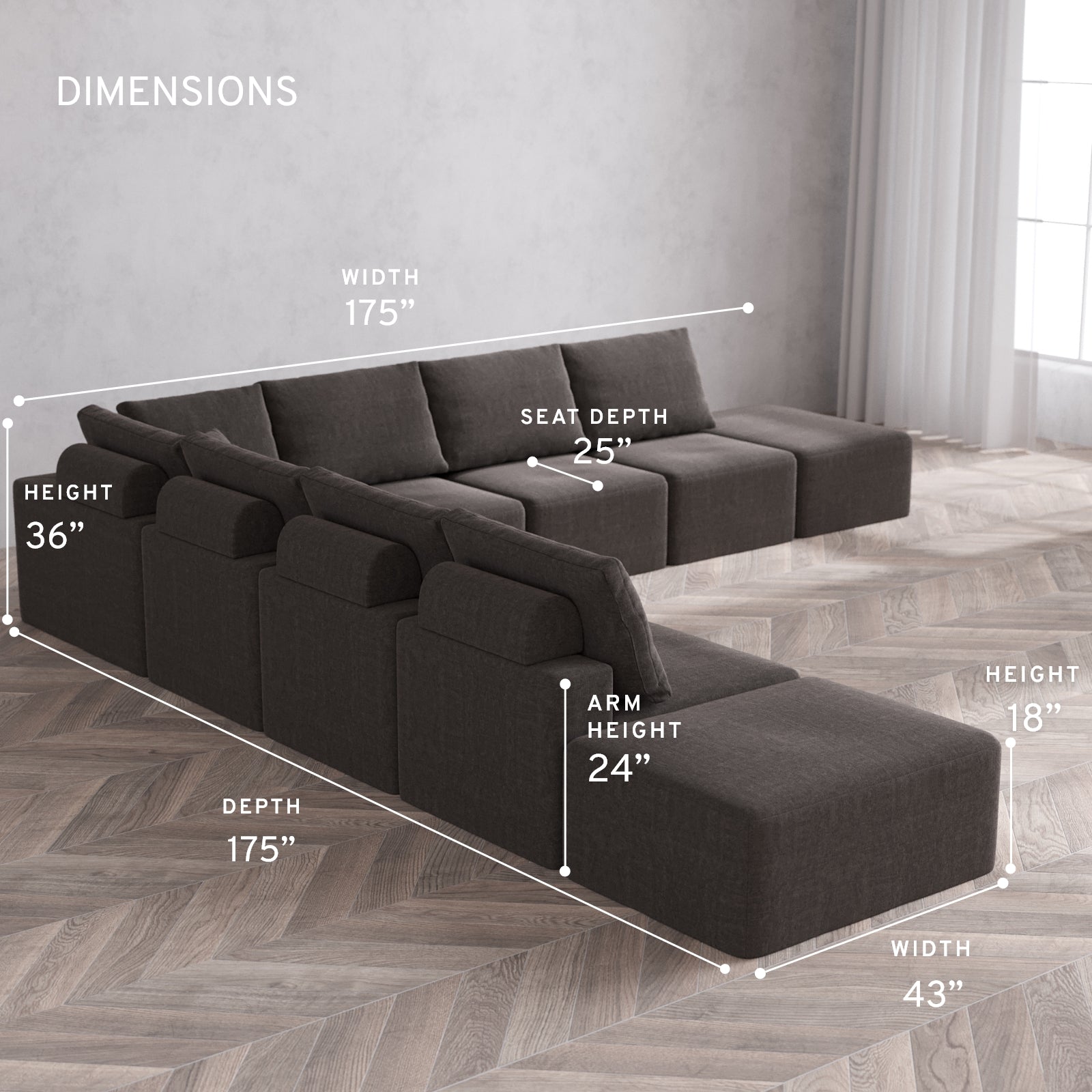 Extra-deep seats for the ultimate lounge session. Oversized arms give you room to sit, perch, or place your essentials within reach. Wide, open proportions that invite you to stretch out, curl up, or pile on with family and friends. It’s a statement in comfort—and your new favorite place to land.