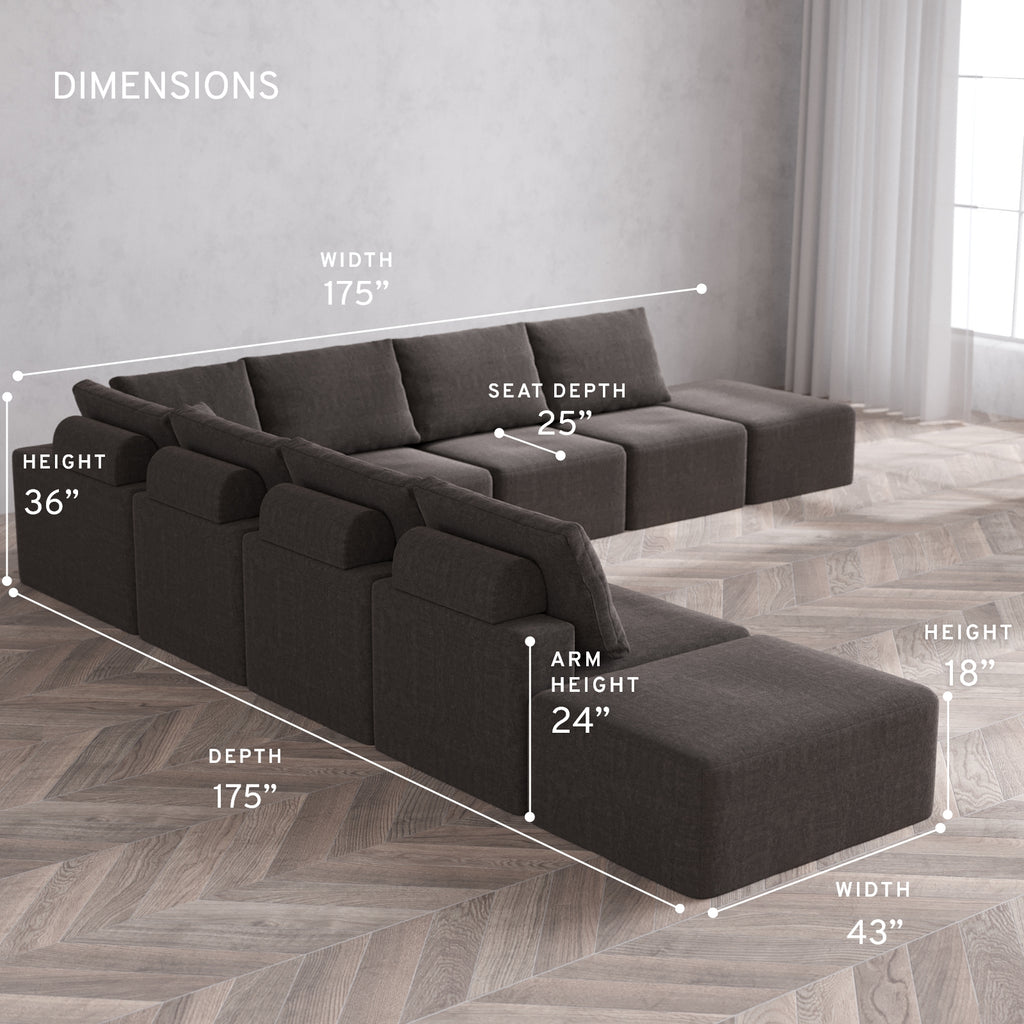 Custom Cloud Comfort: Our extra-deep, extra-wide, patent-pending frame is enveloped in premium waterproof, CertiPUR-US® certified foam and topped with our signature Cloud PearlPure down-like fill for lasting, cloud-like comfort. It strikes the perfect balance of softness and structure. Add the Cloud+ Bolster for extra lift and back support, or skip it to melt into that ultra-relaxed lounge. This cloud sofa is designed to be enjoyed by all shapes and sizes.